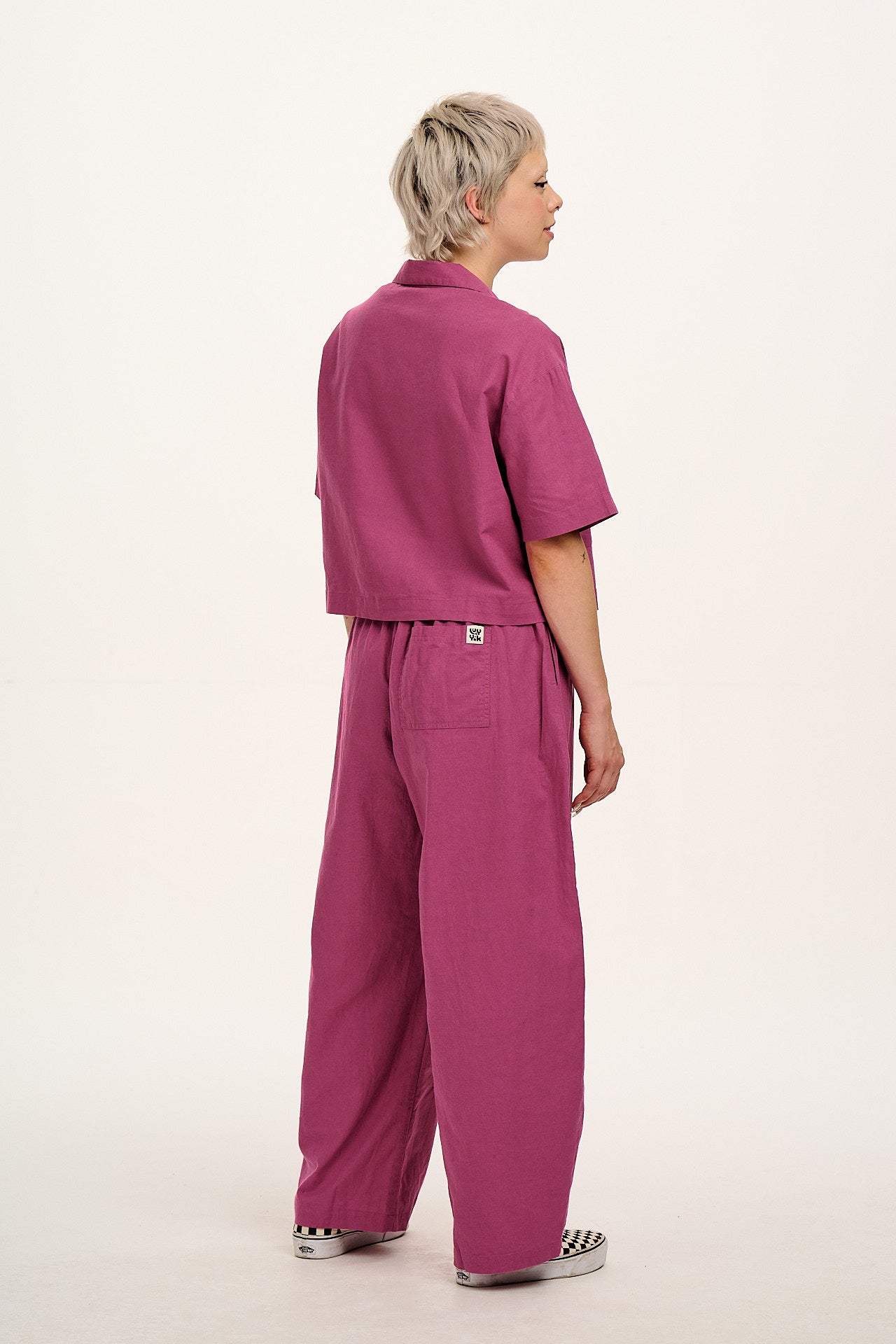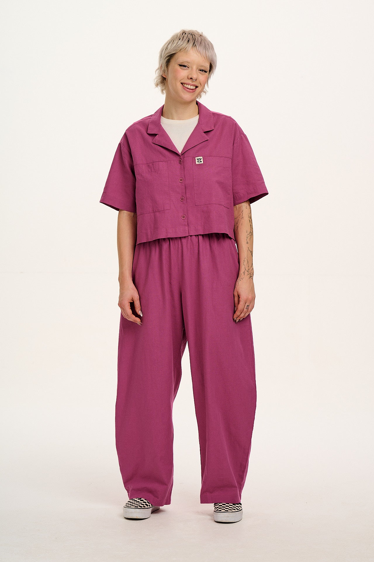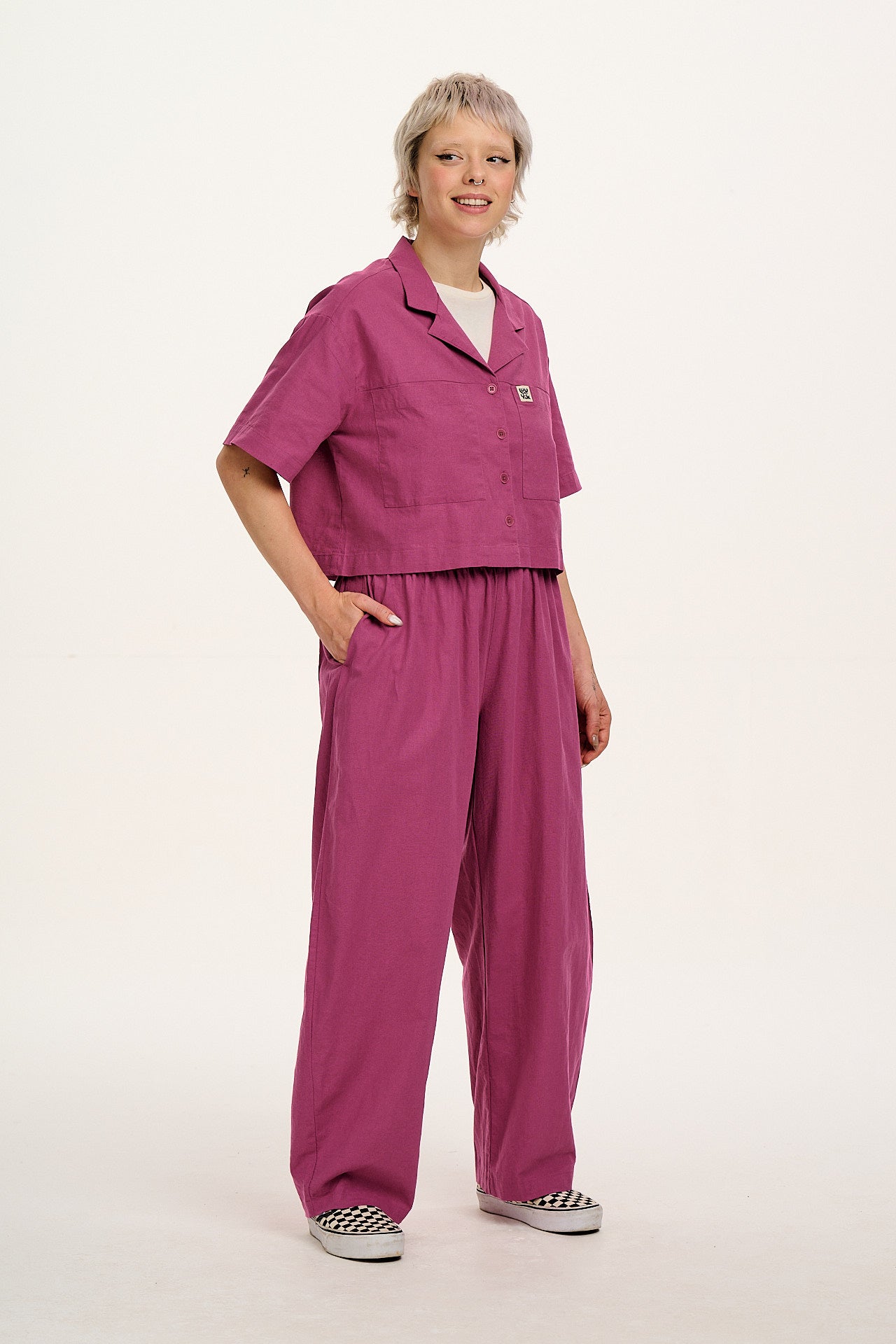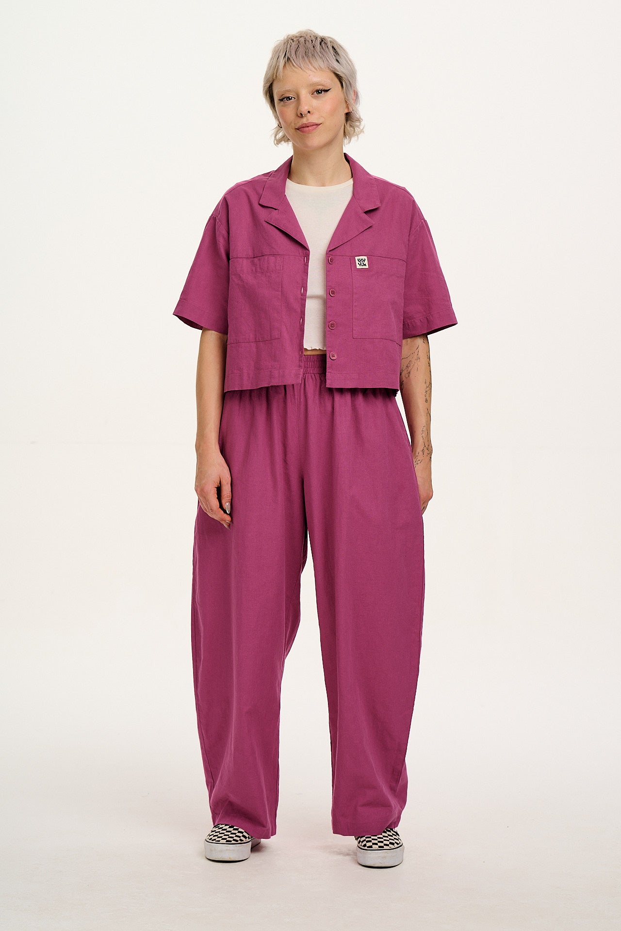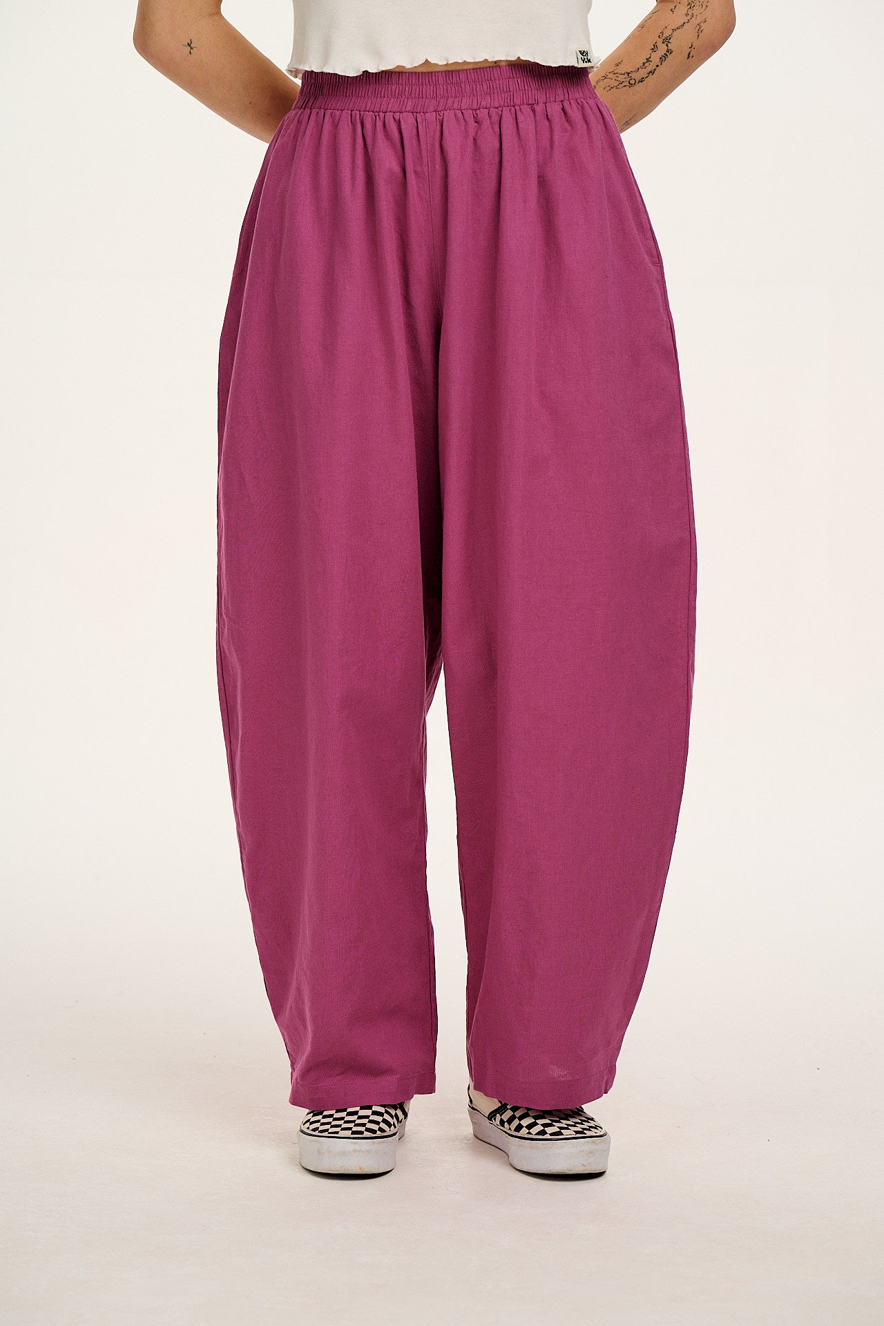 Freddie - Barrel Leg Cotton & Linen Trousers in Dahlia Pink