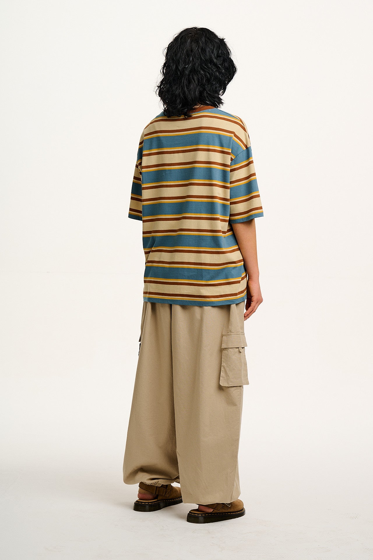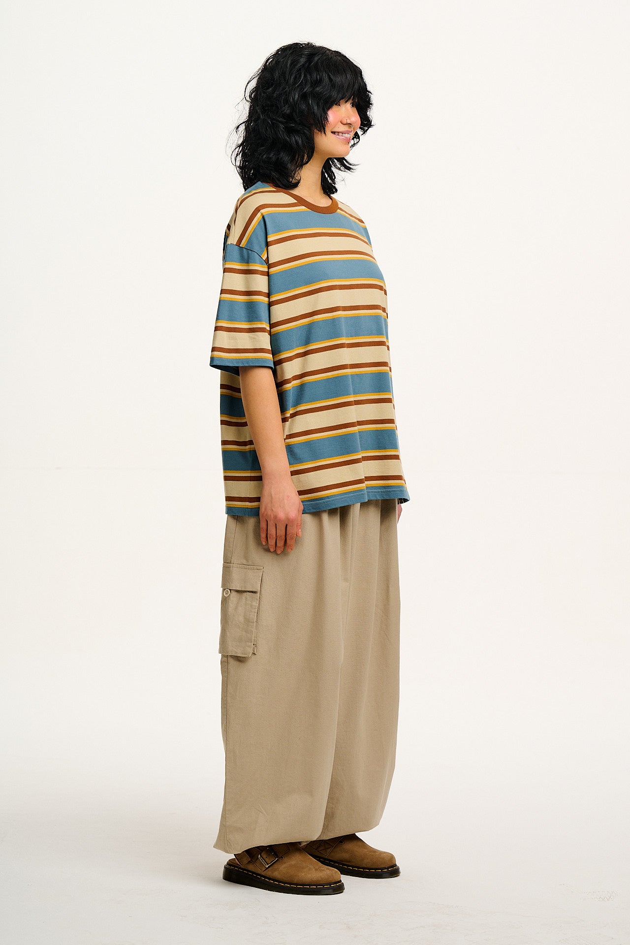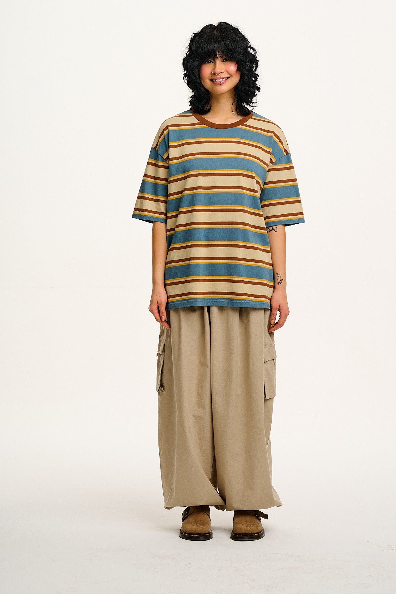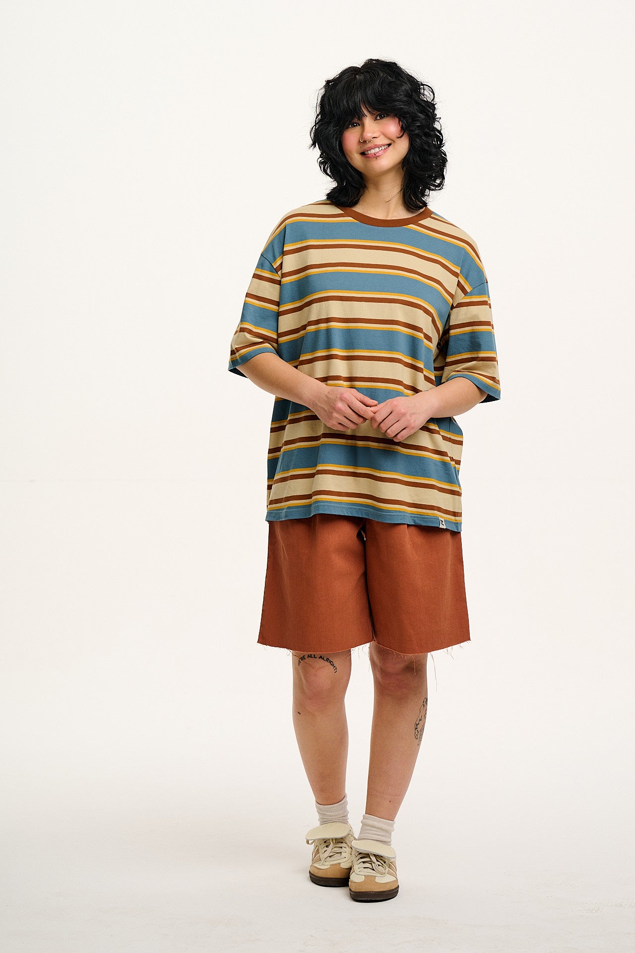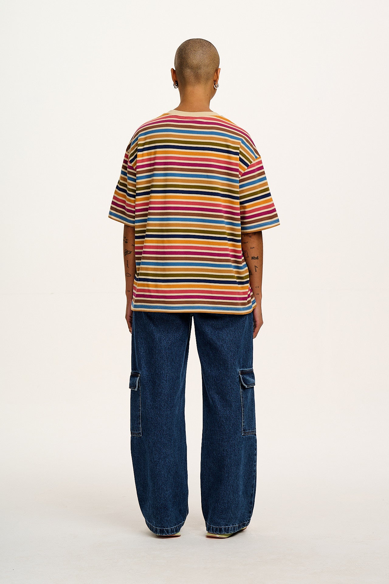 Benny - Oversized Cotton Tee in Rainbow & Ecru Stripe