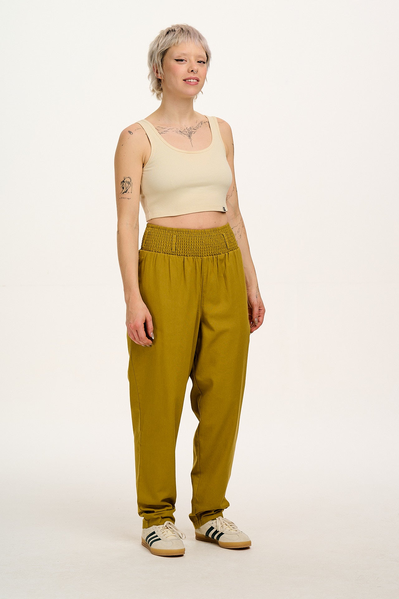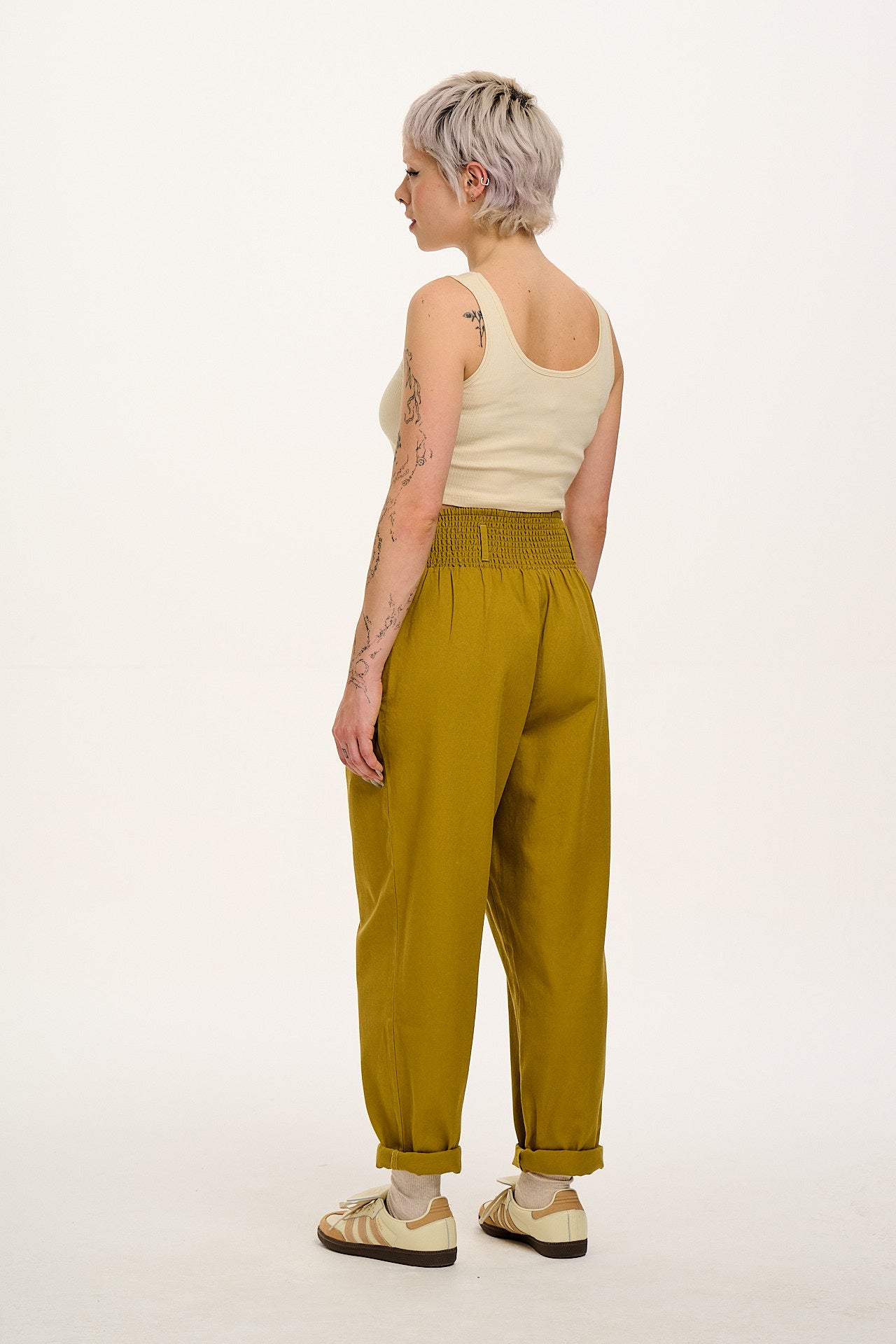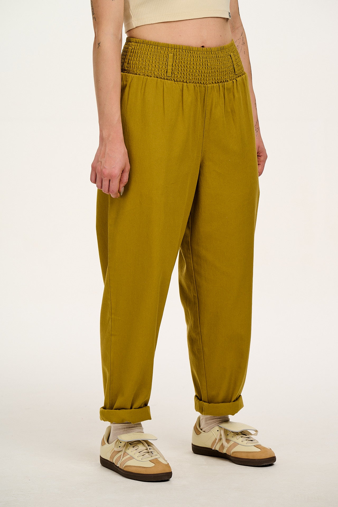 Alexa - Cotton Trousers in Posy Green