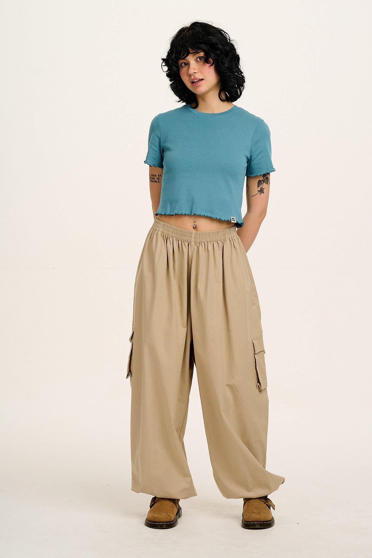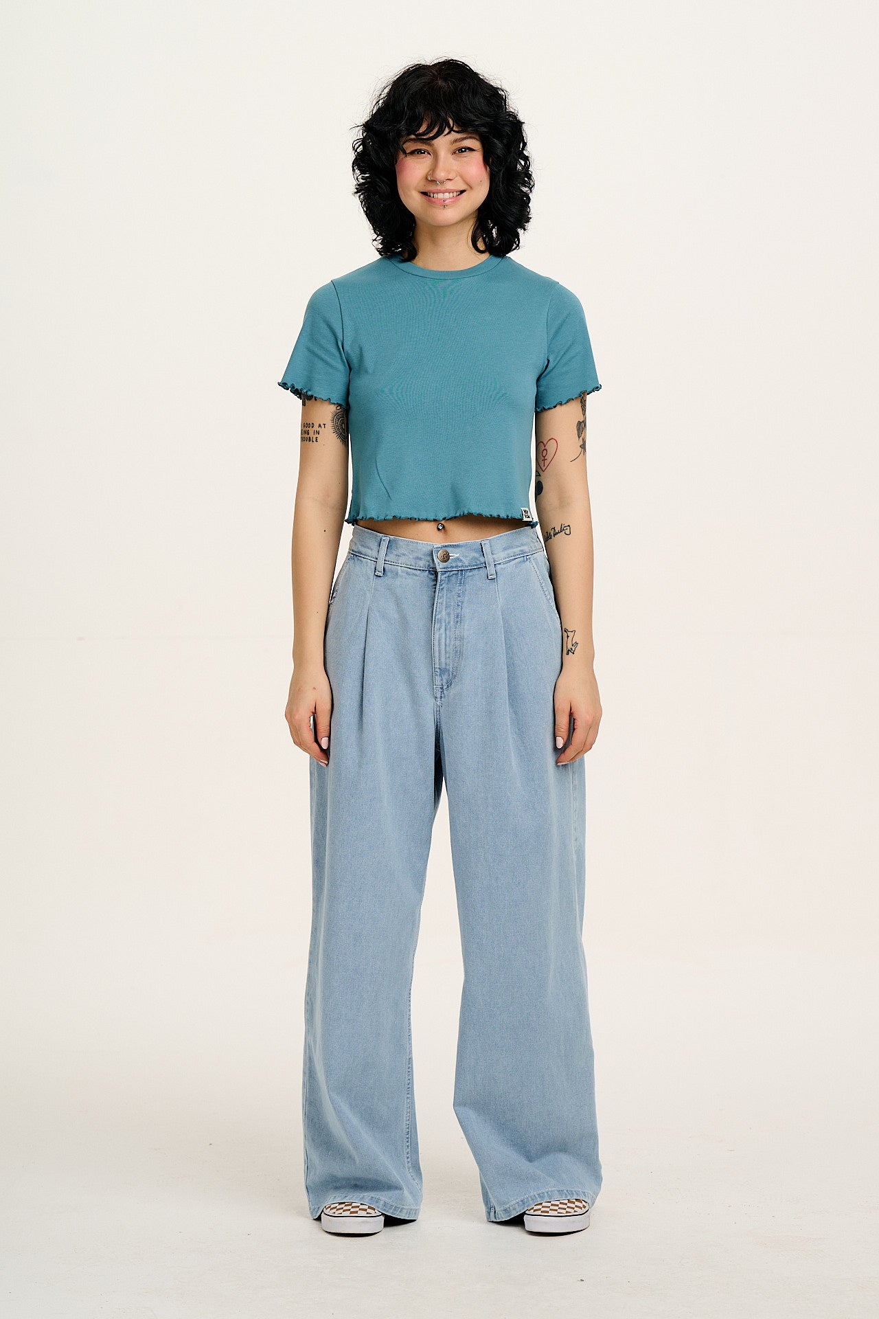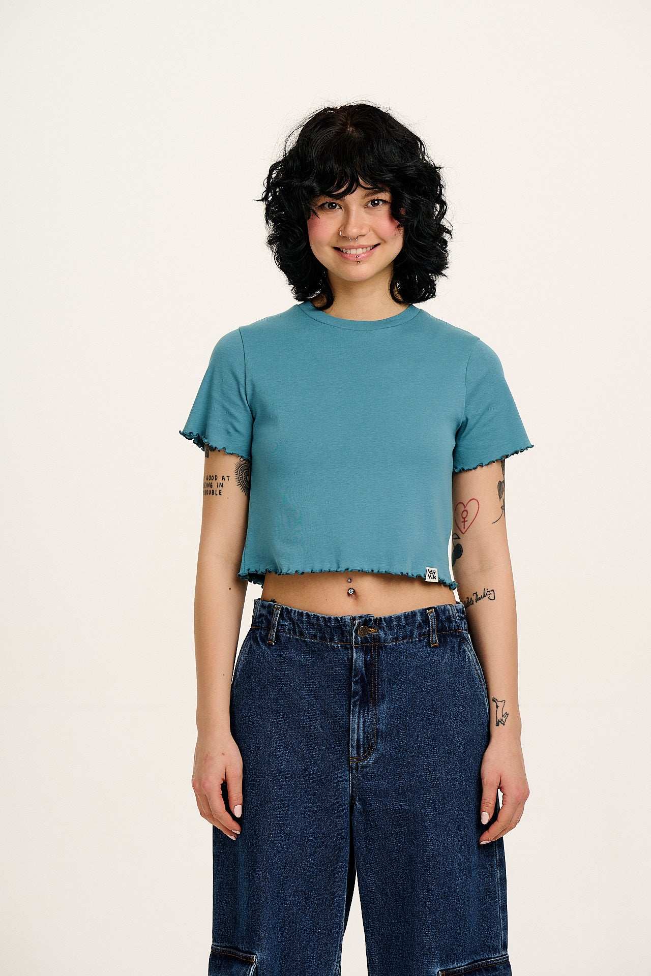Greta - Cropped Cotton Top in Blue