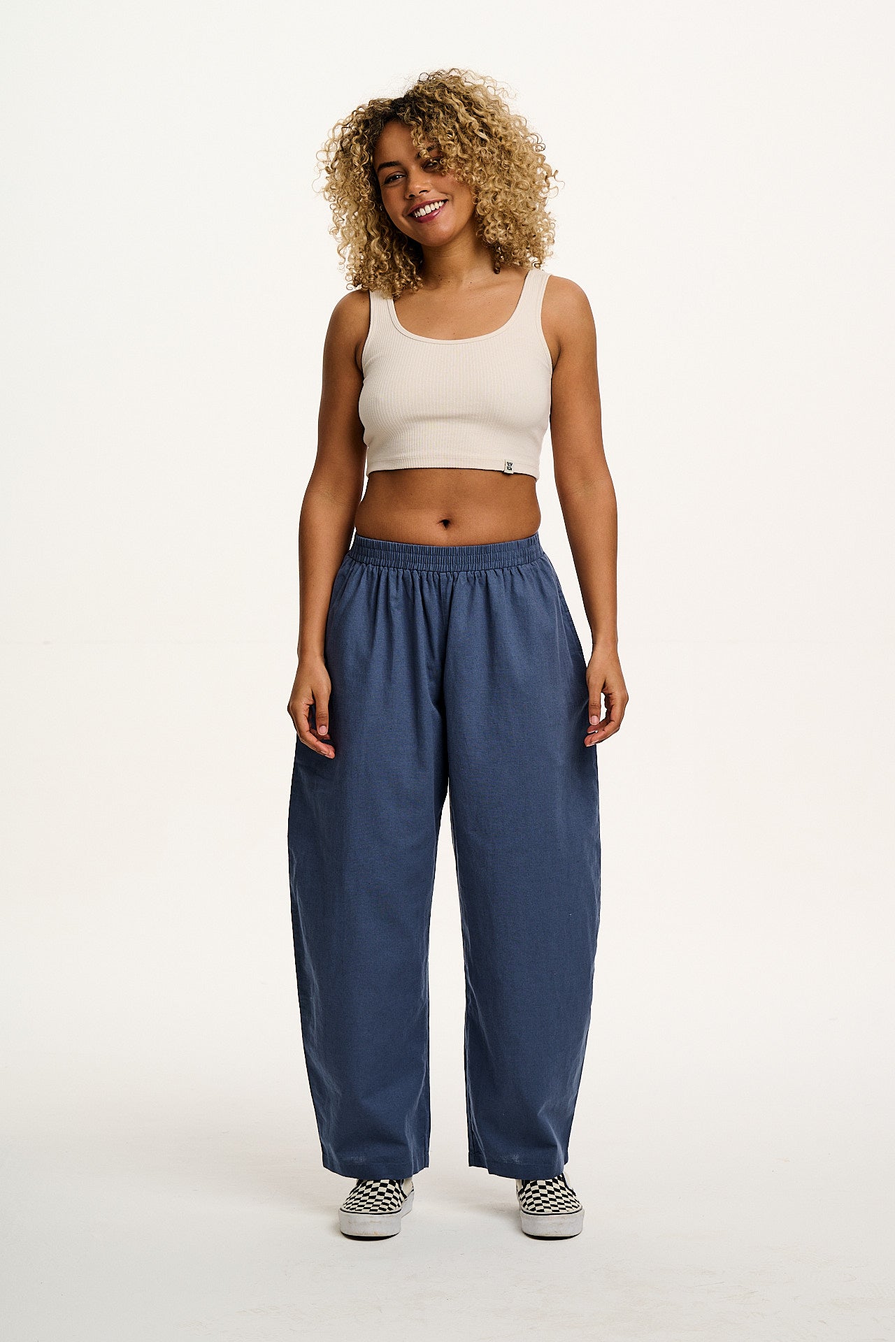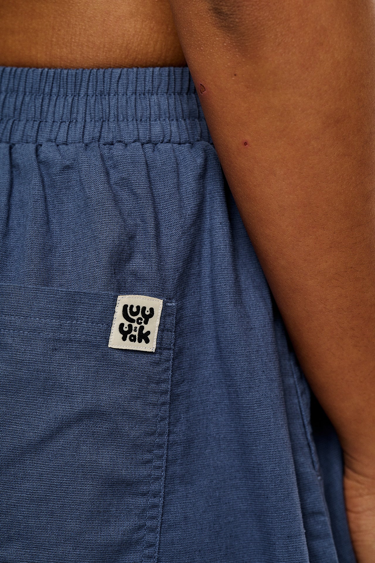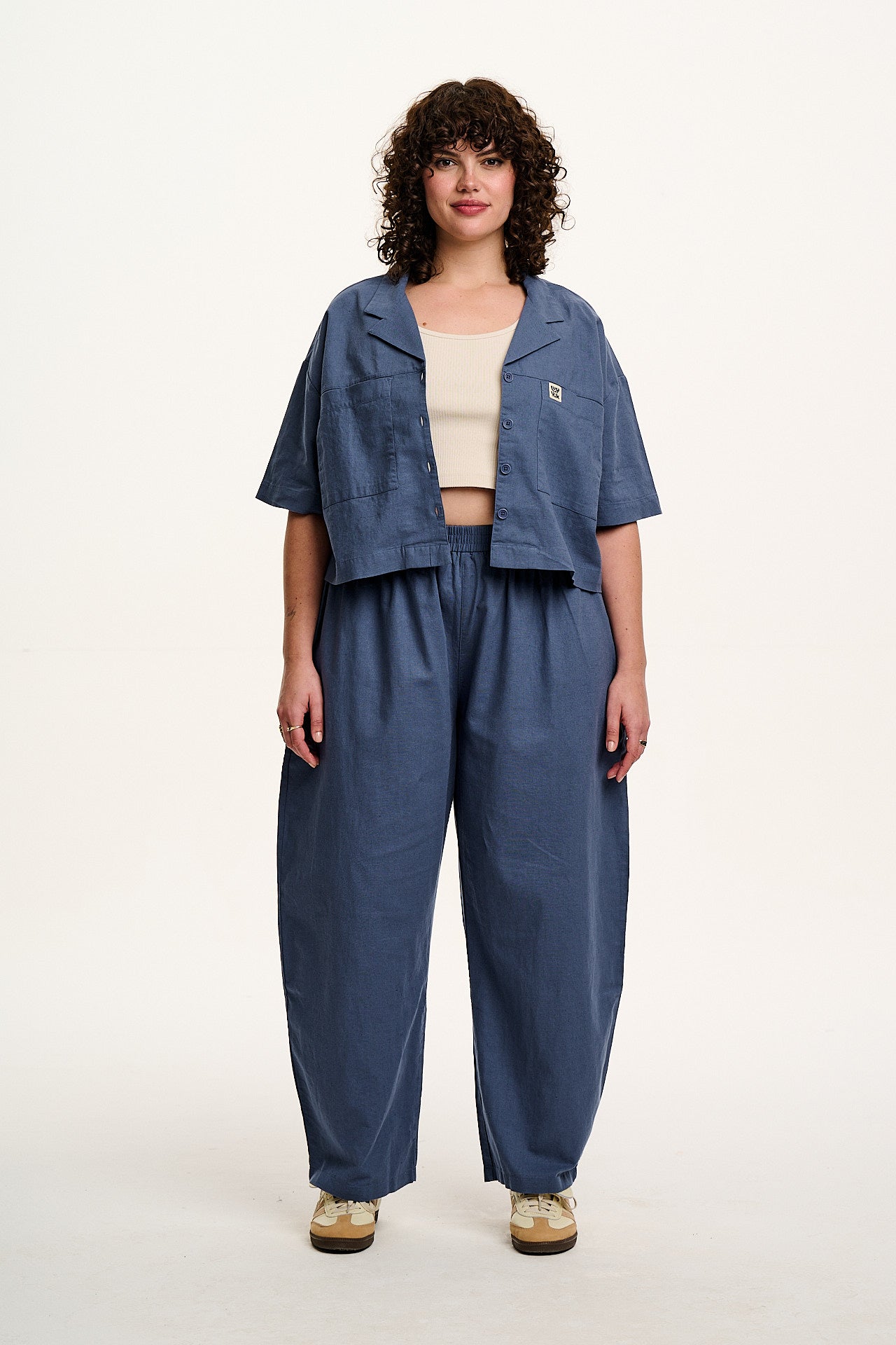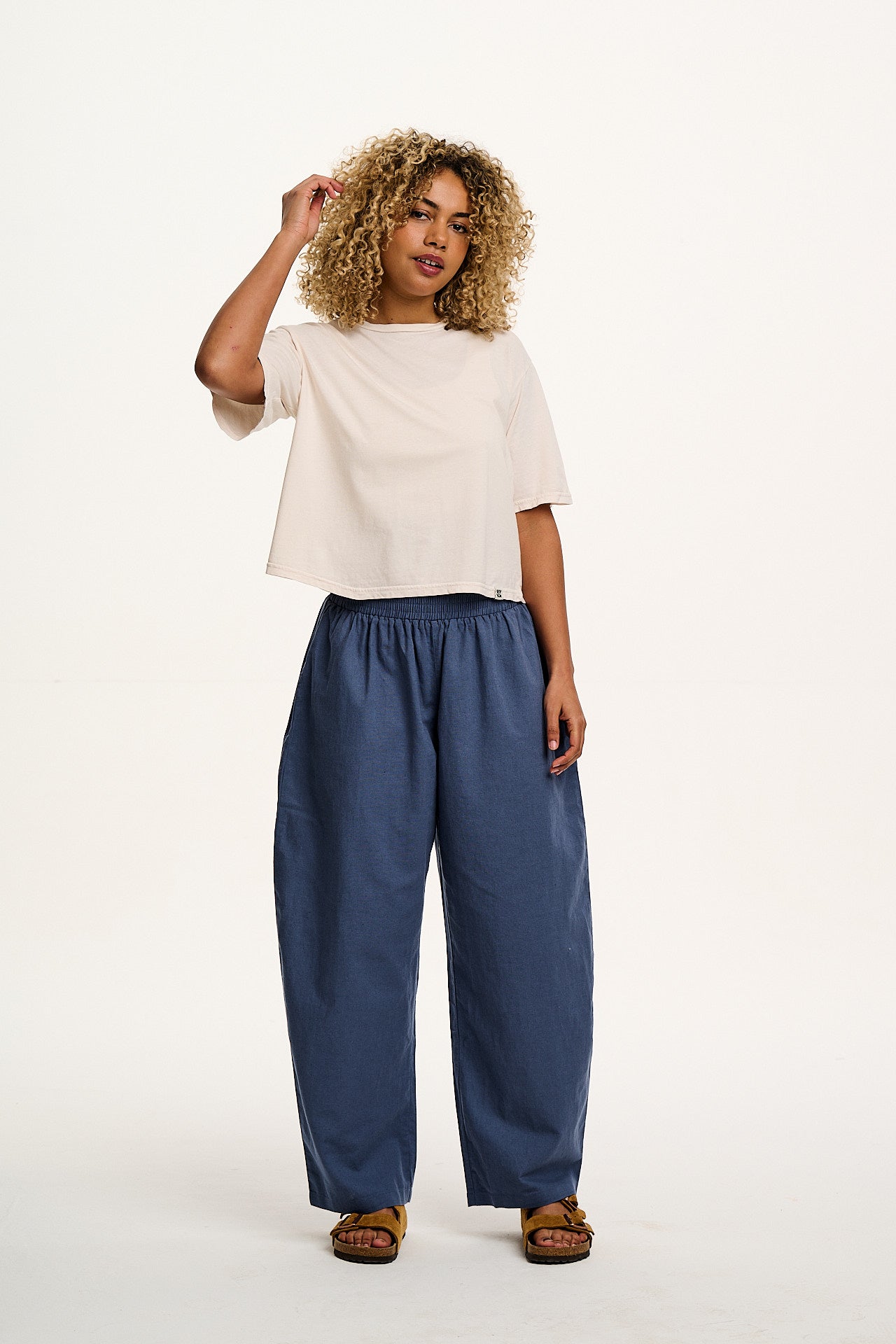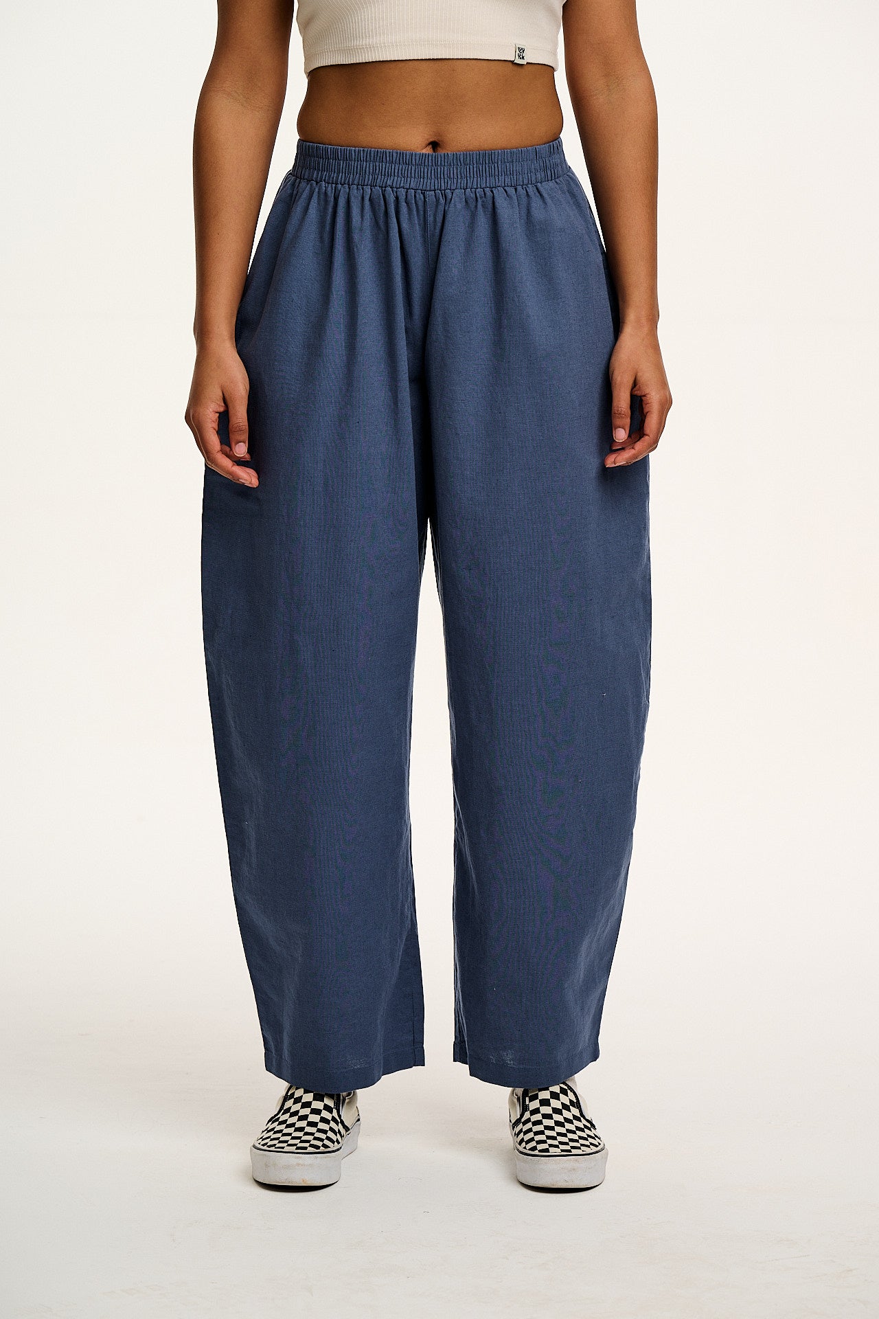 Freddie - Barrel Leg Cotton & Linen Trousers in Vintage Indigo