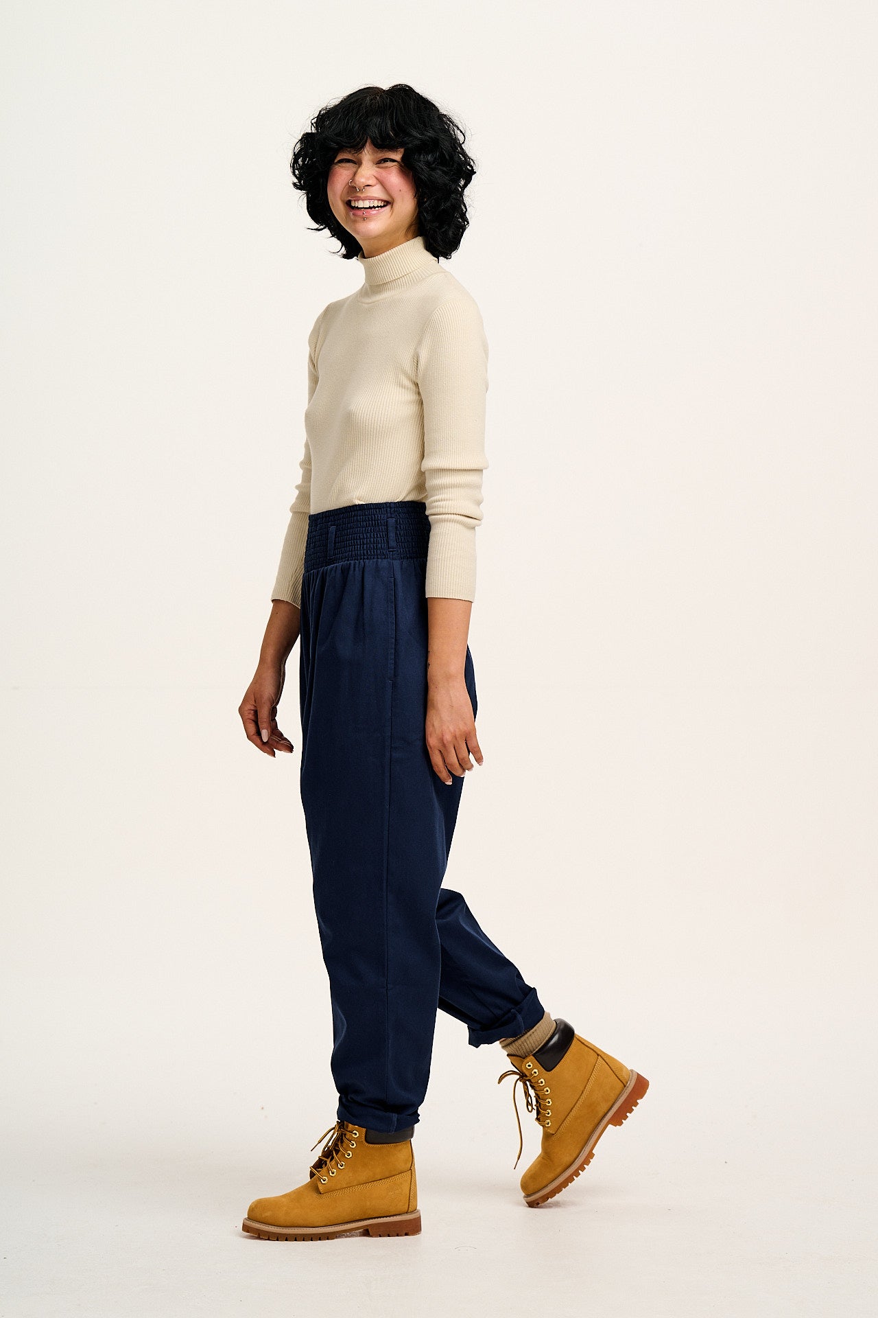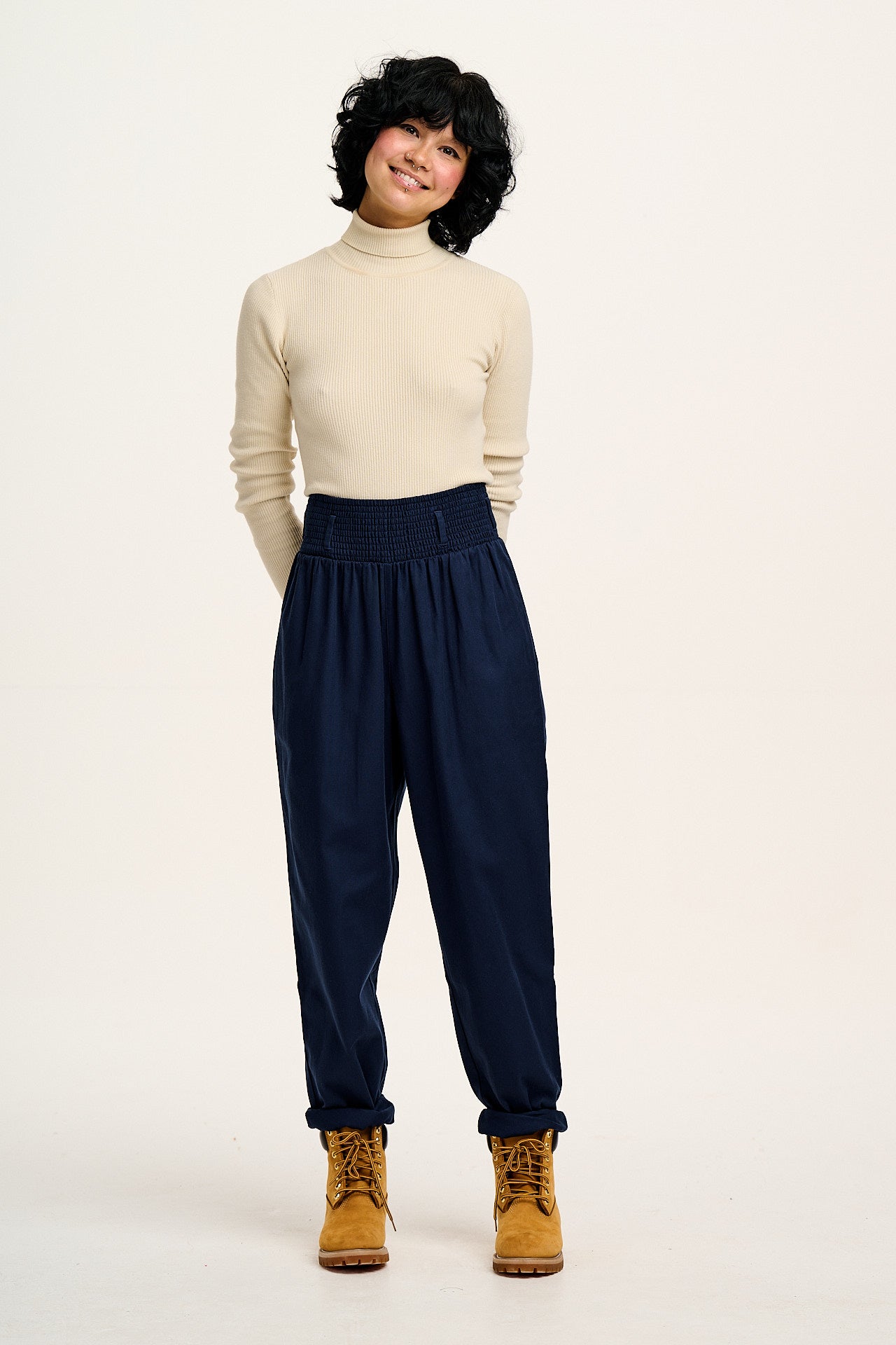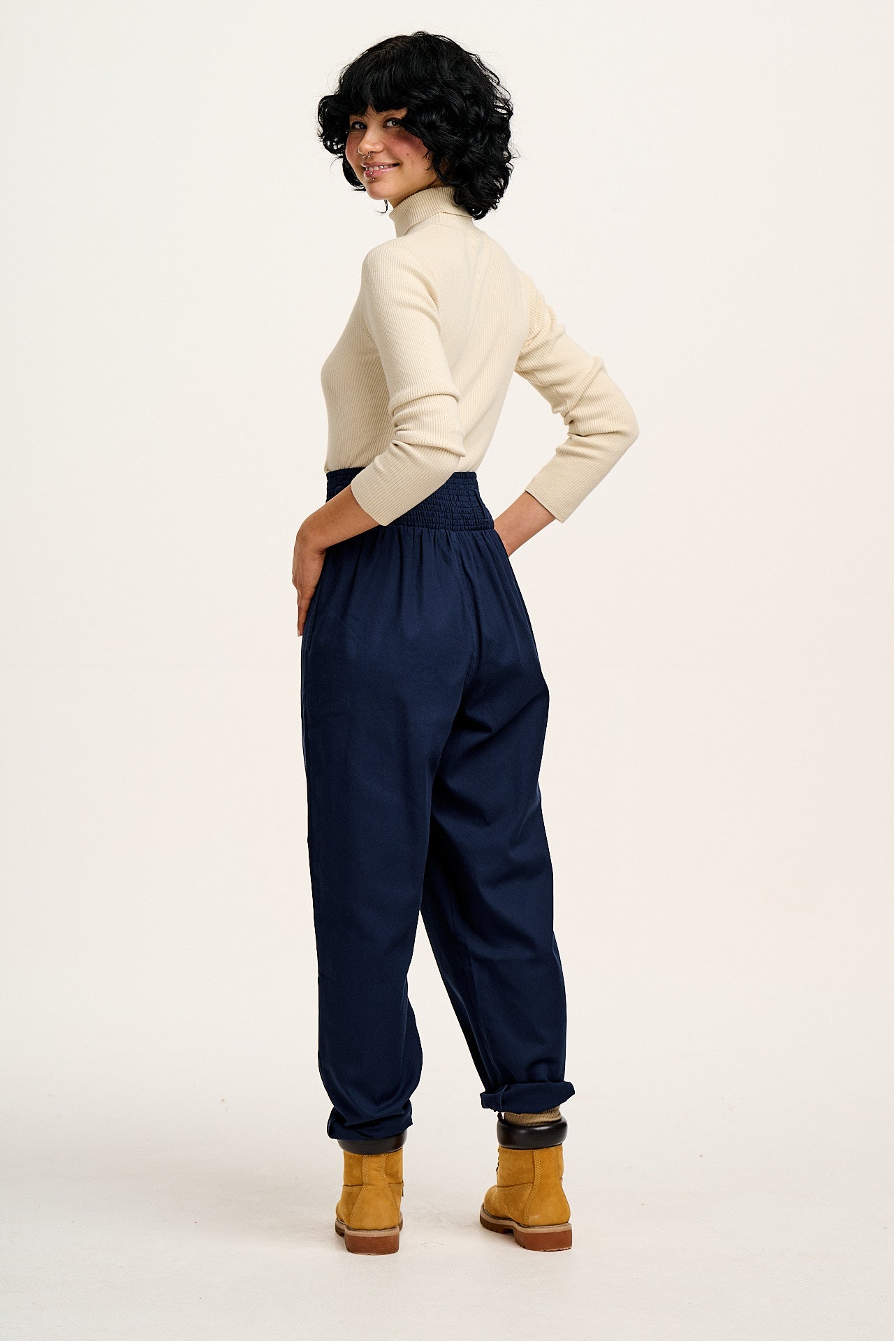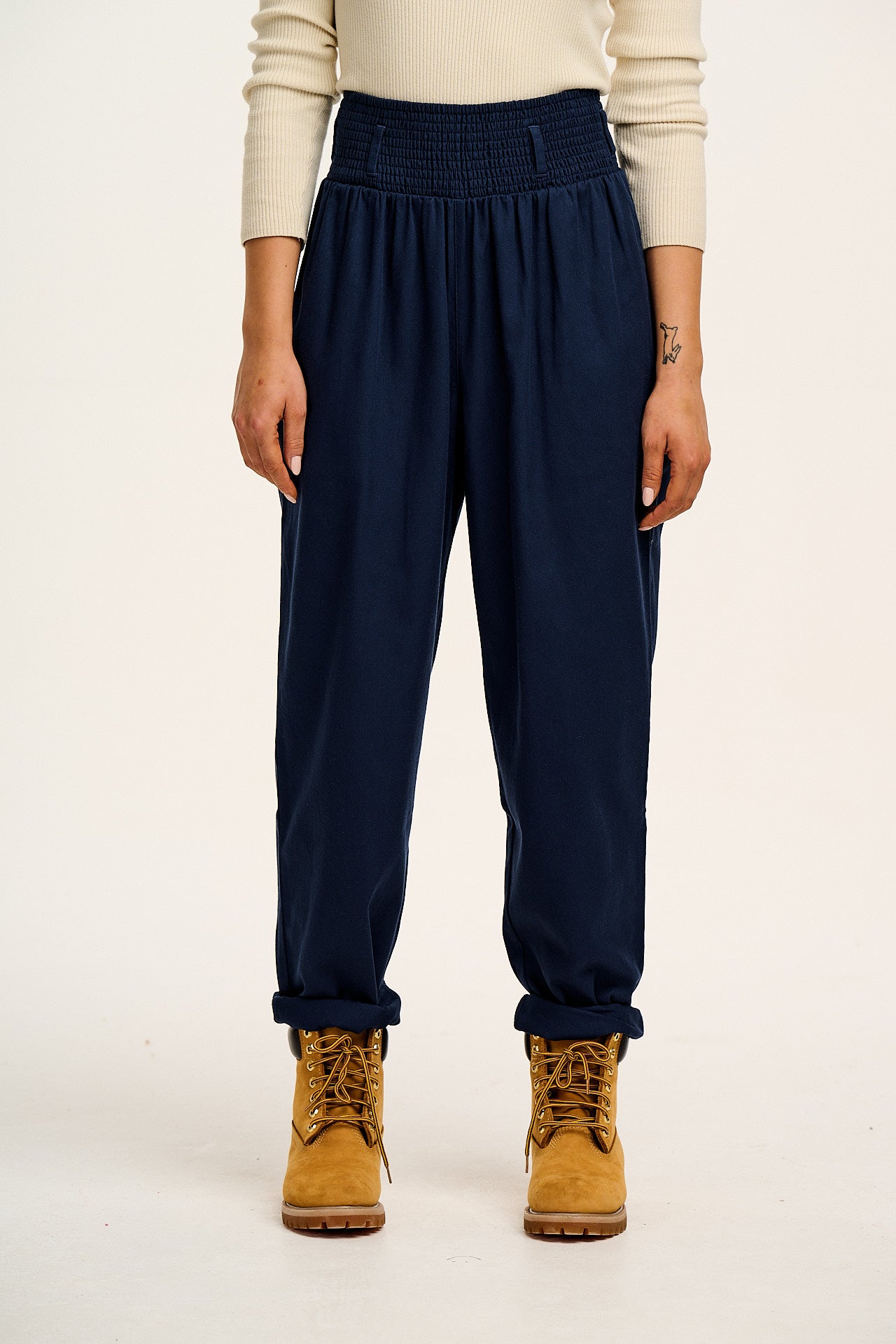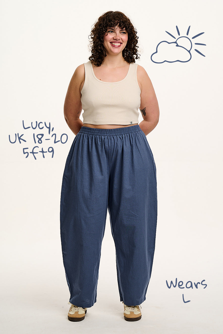 Freddie - Barrel Leg Cotton & Linen Trousers in Vintage Indigo