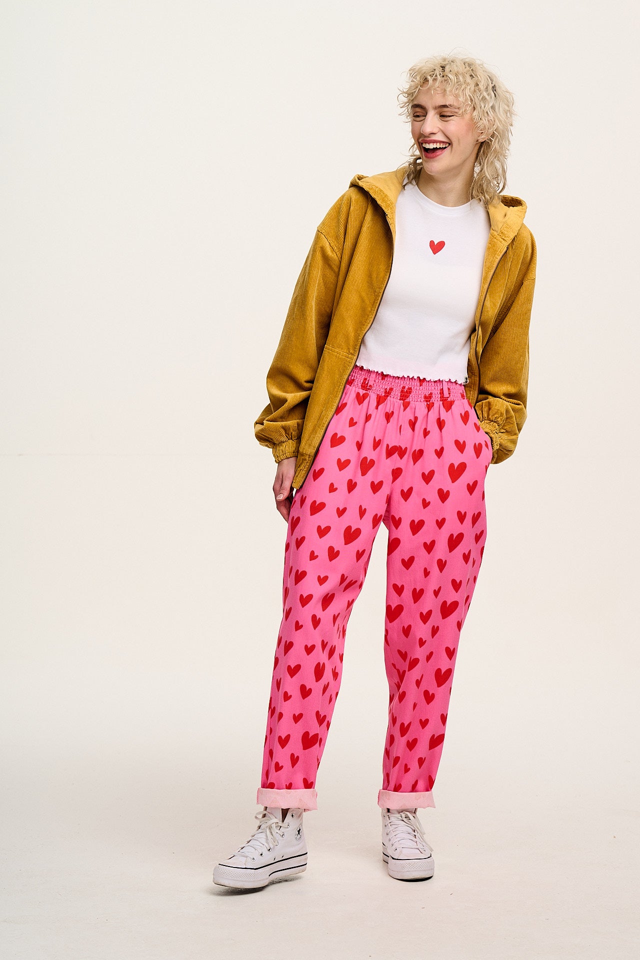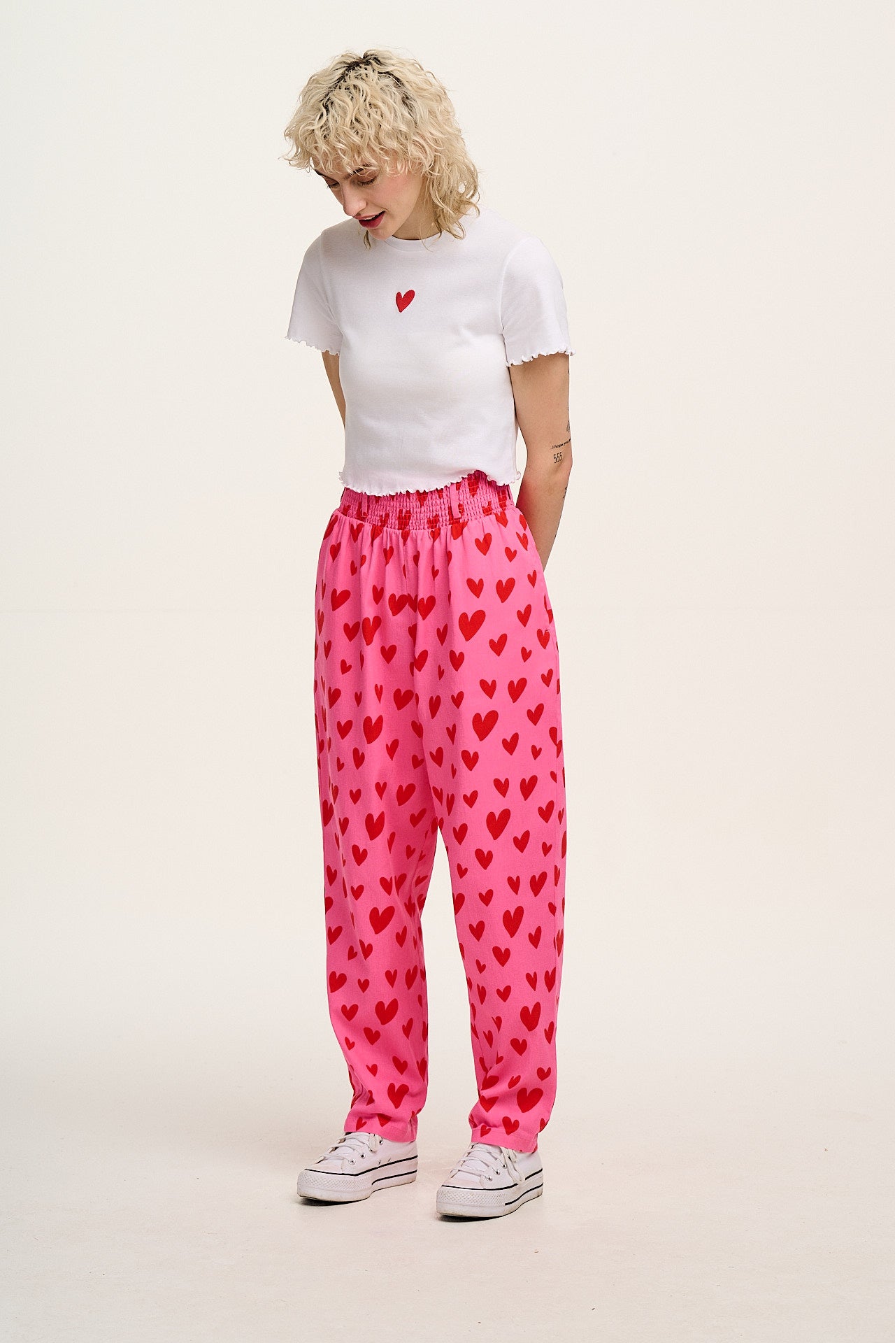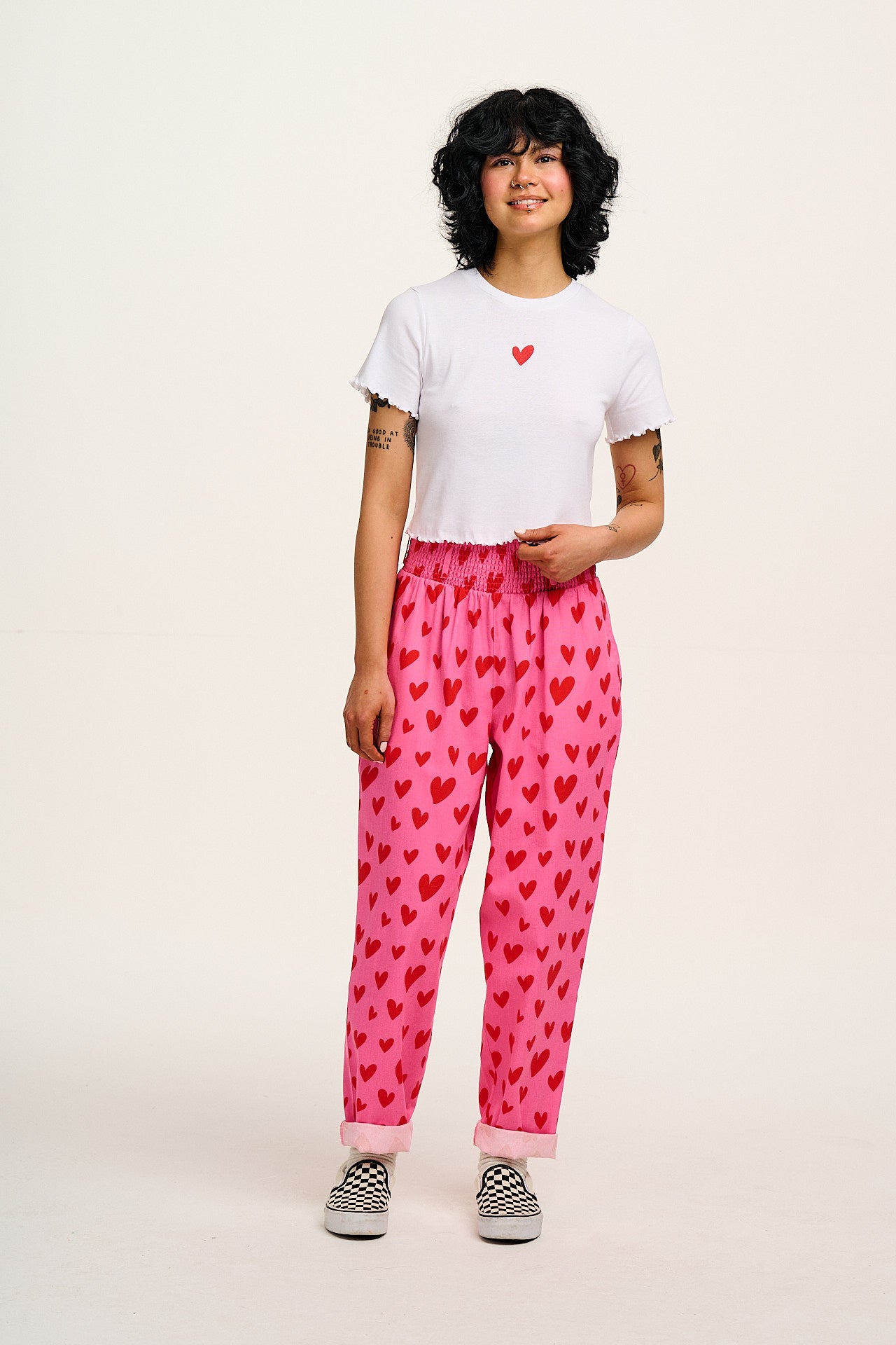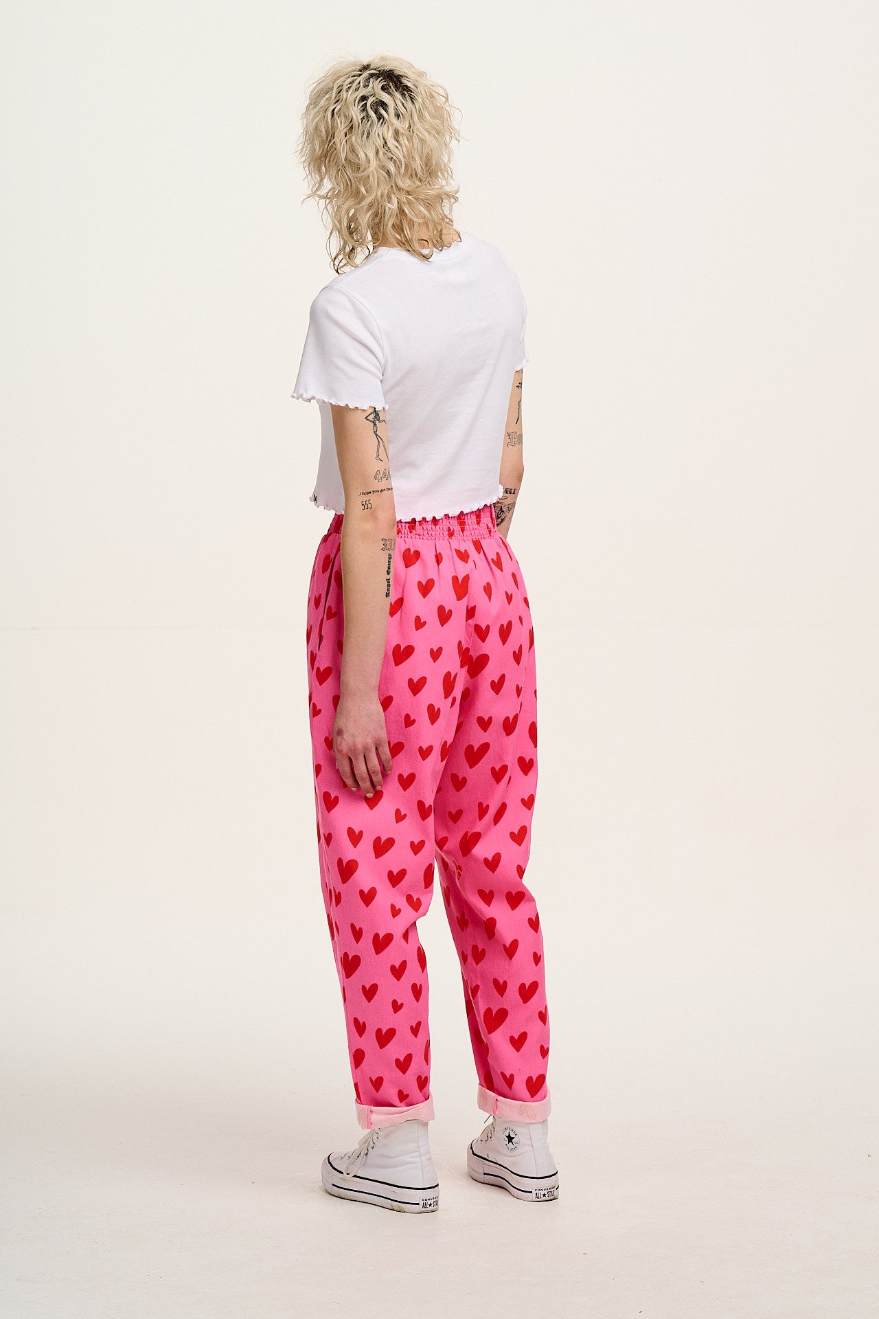 Alexa - Cotton Trousers in Pink Heart Cupid Print
