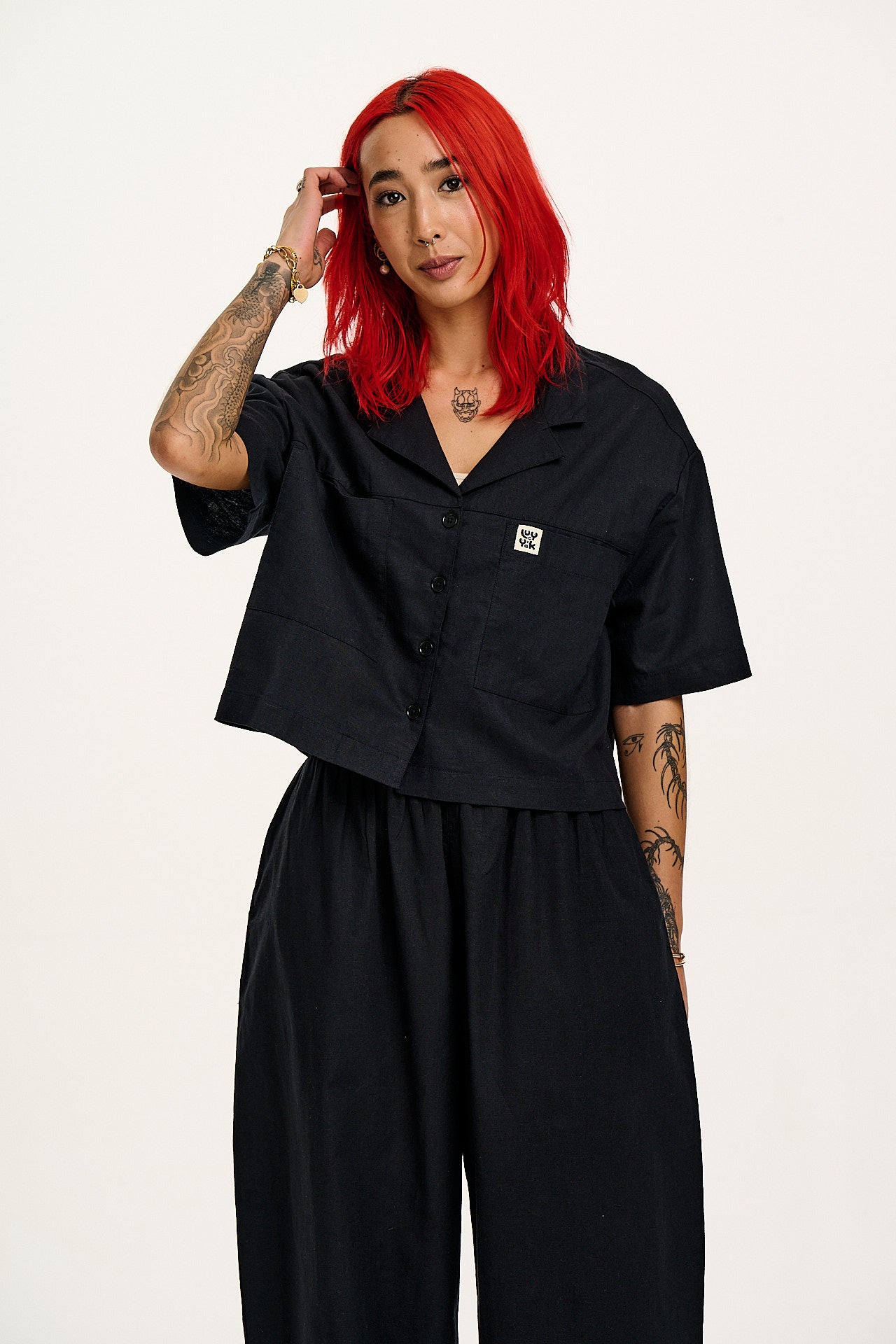 Greta - Cropped Cotton Top in Black