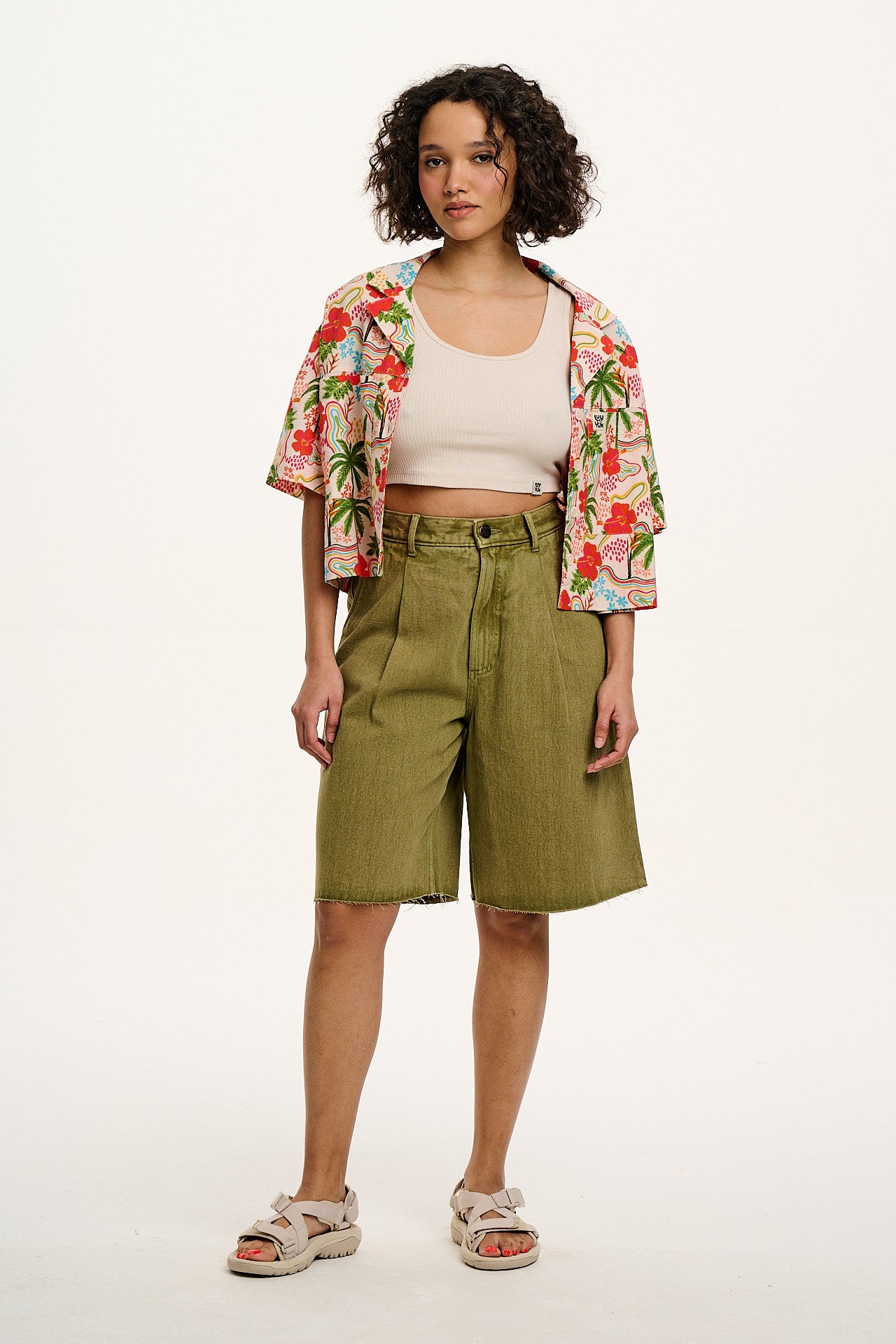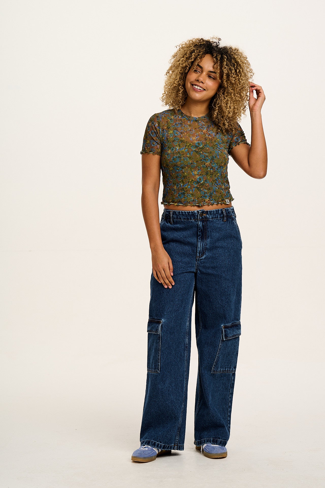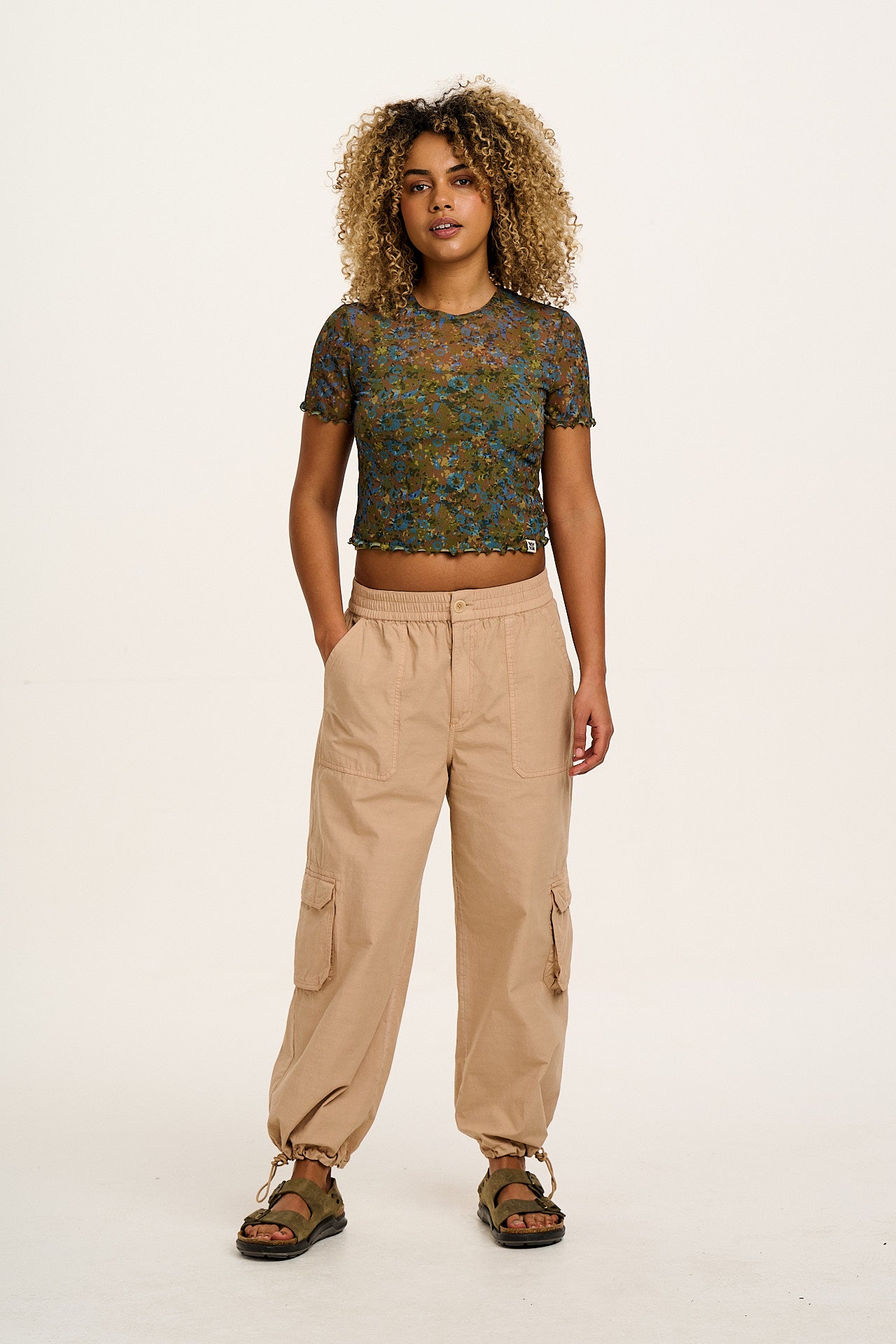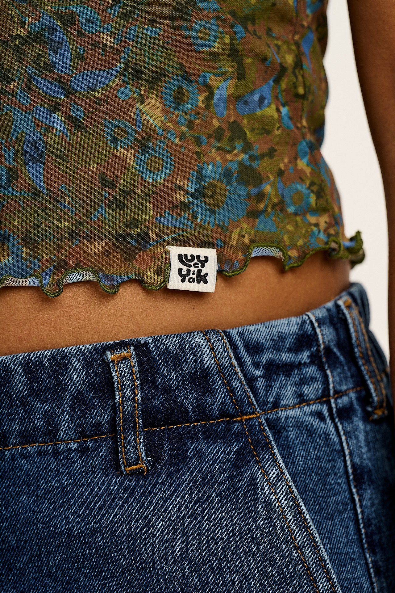 Greta - Cropped Mesh Top in Green Trix Floral Print