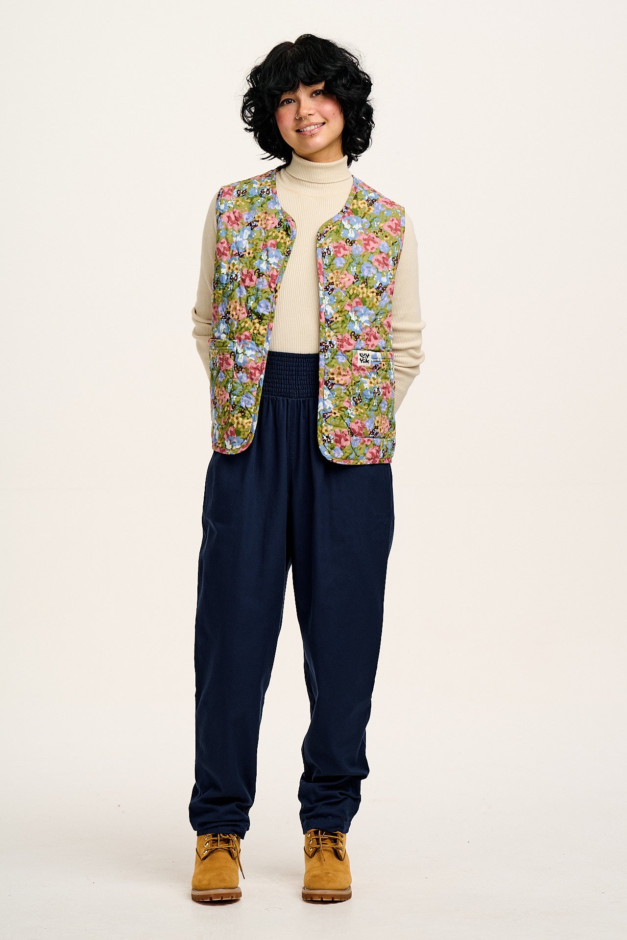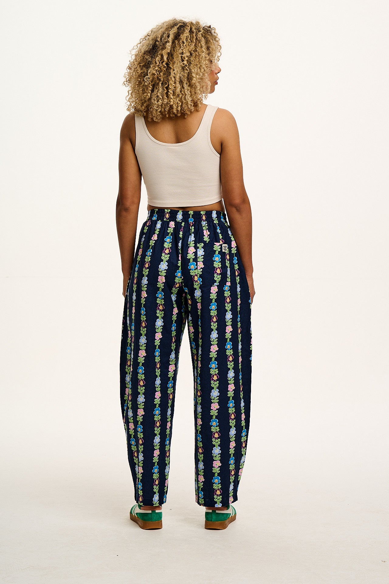 Freddie - Barrel Cotton & Linen Trousers in Navy Island Bloom Print