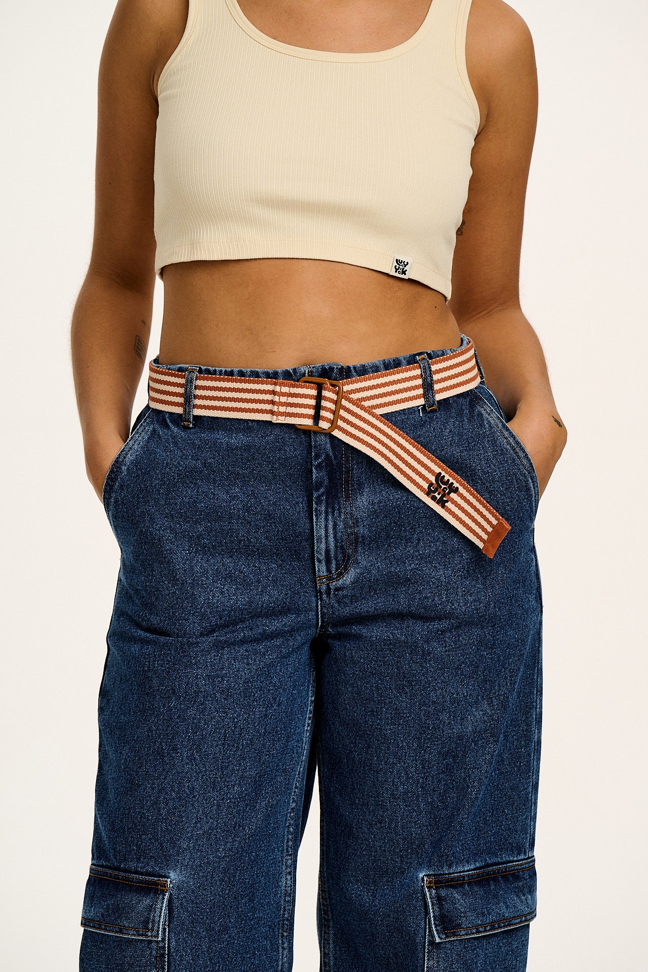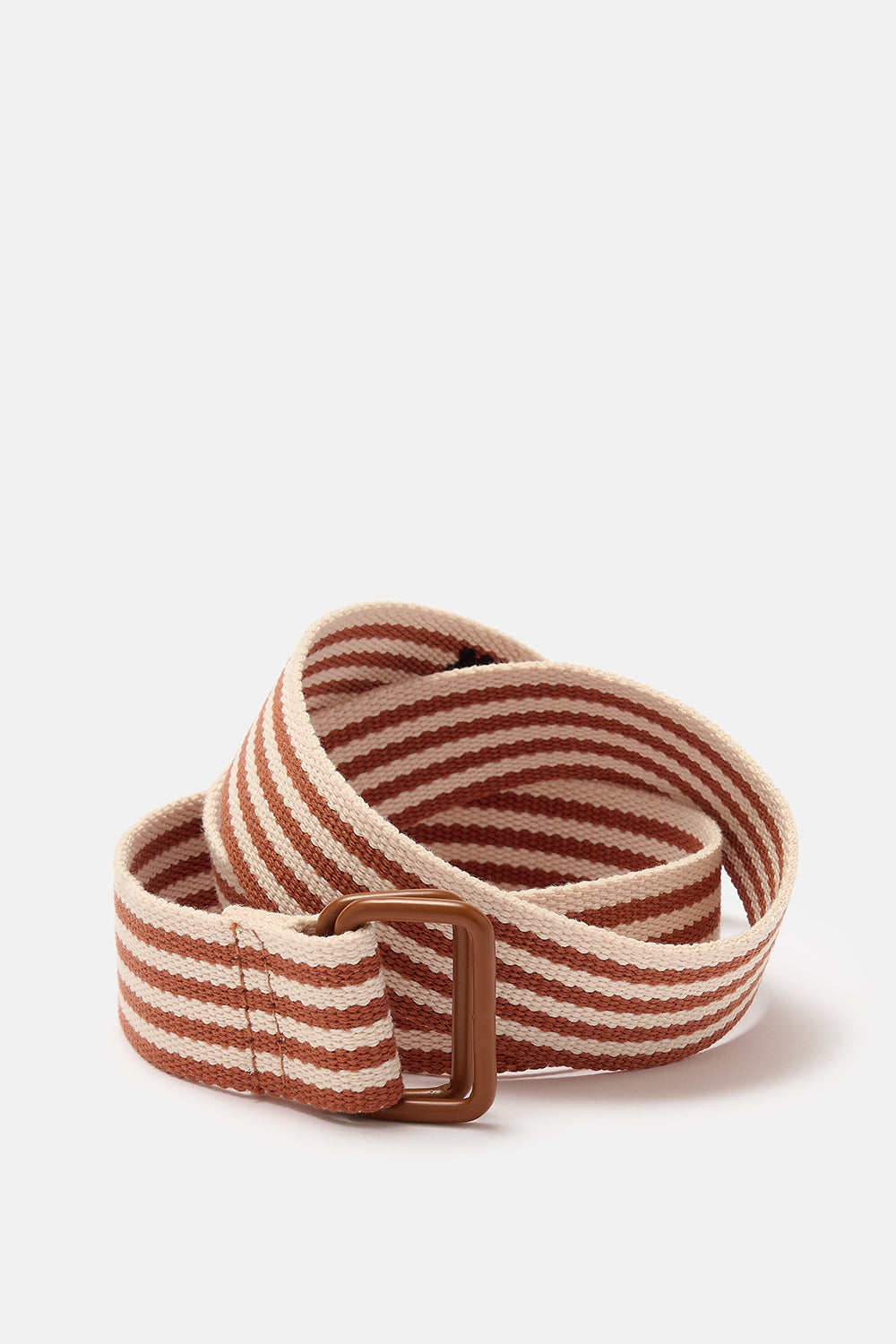 Flynn - D-Ring Cotton Belt in Amber & Ecru Stripe