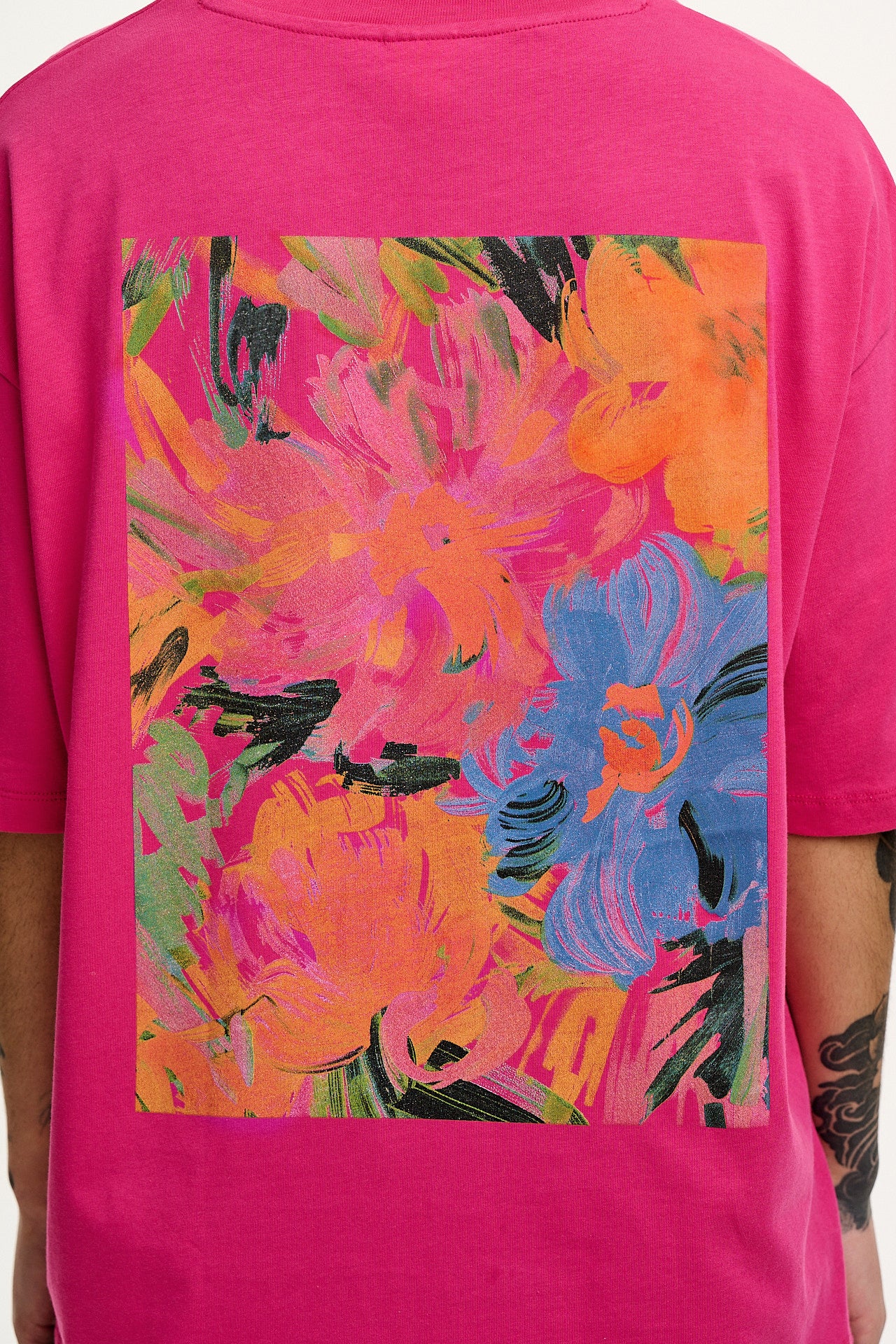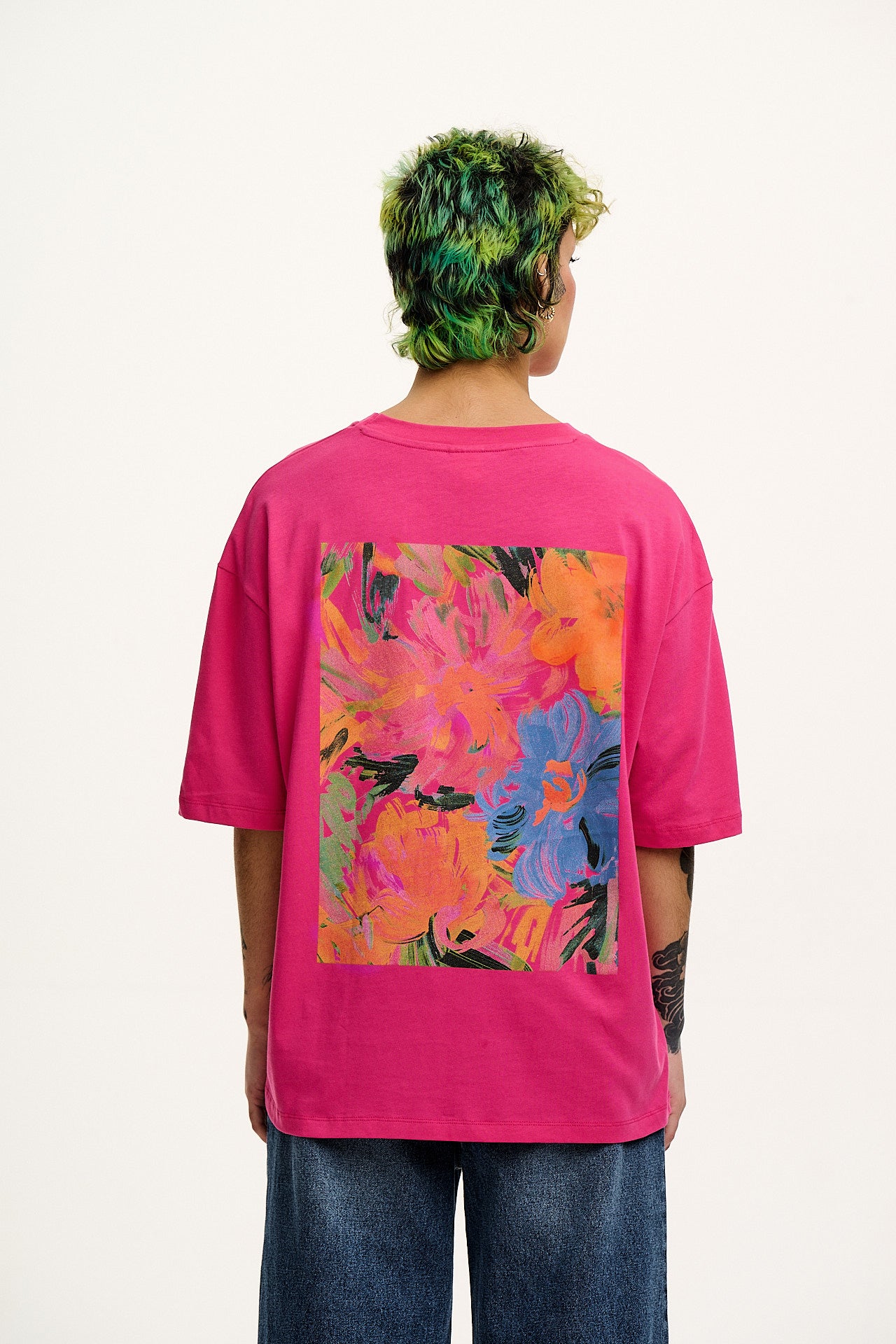 Benny - Oversized Cotton Tee in Pink Floral Print