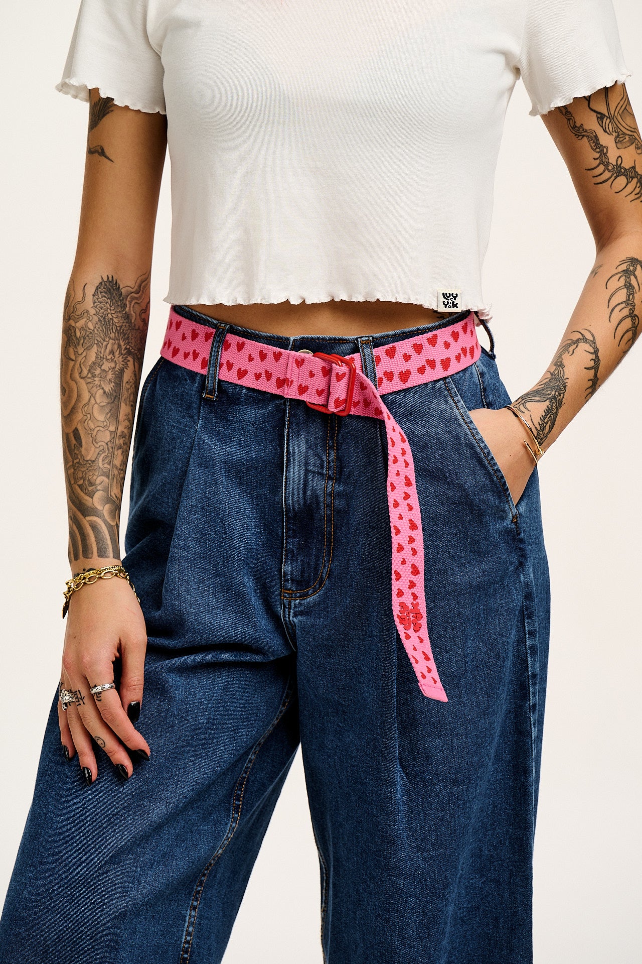 Flynn - D-Ring Cotton Belt in Pink Heart Cupid Print