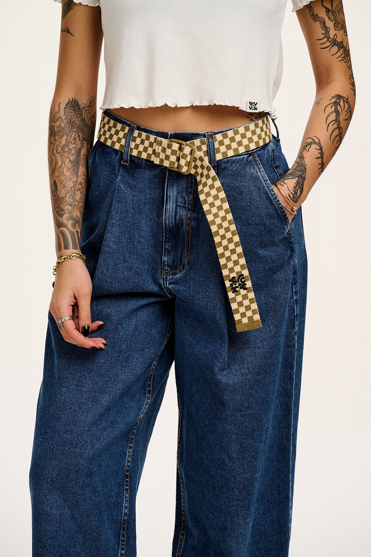 Flynn - D-Ring Cotton Belt in Green Checkerboard