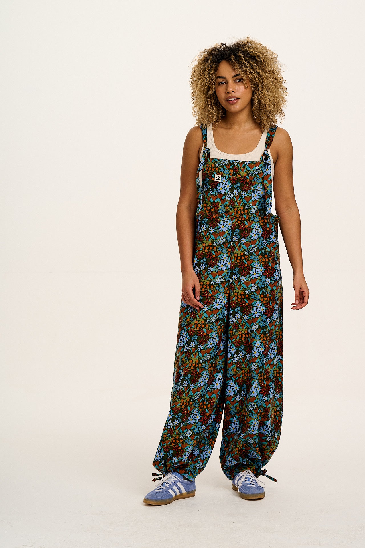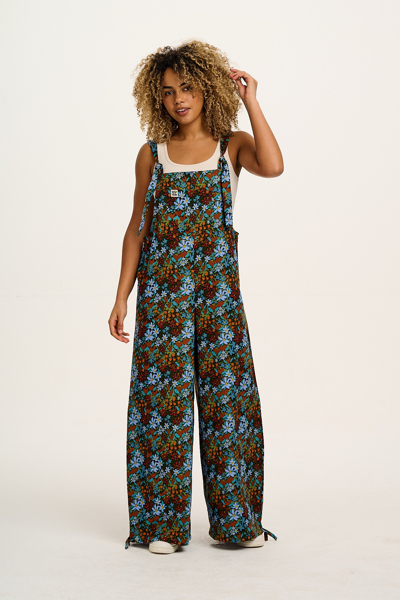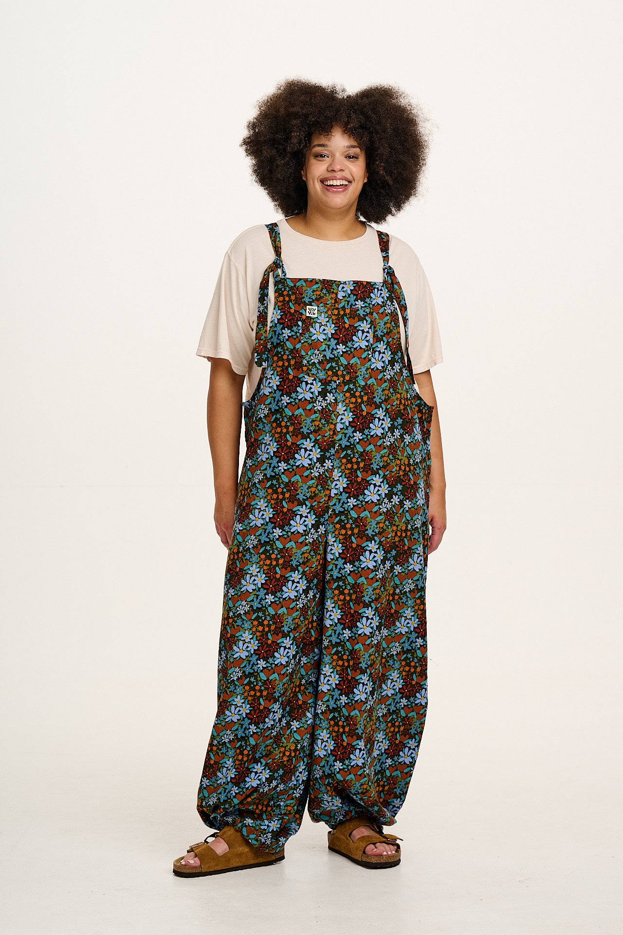 Ali - Wide Leg Cotton Dungarees Blue & Brown Mika Print