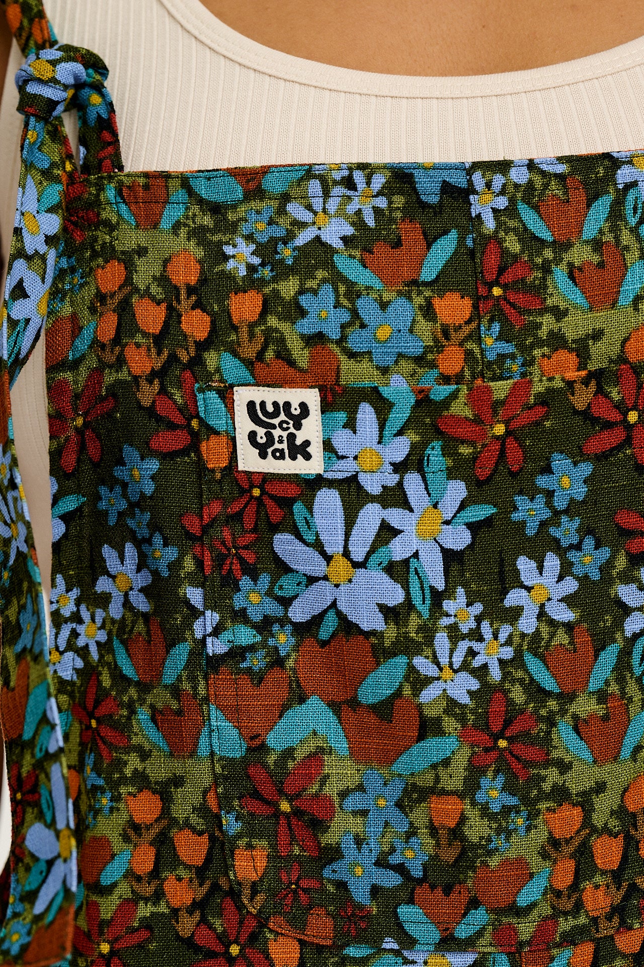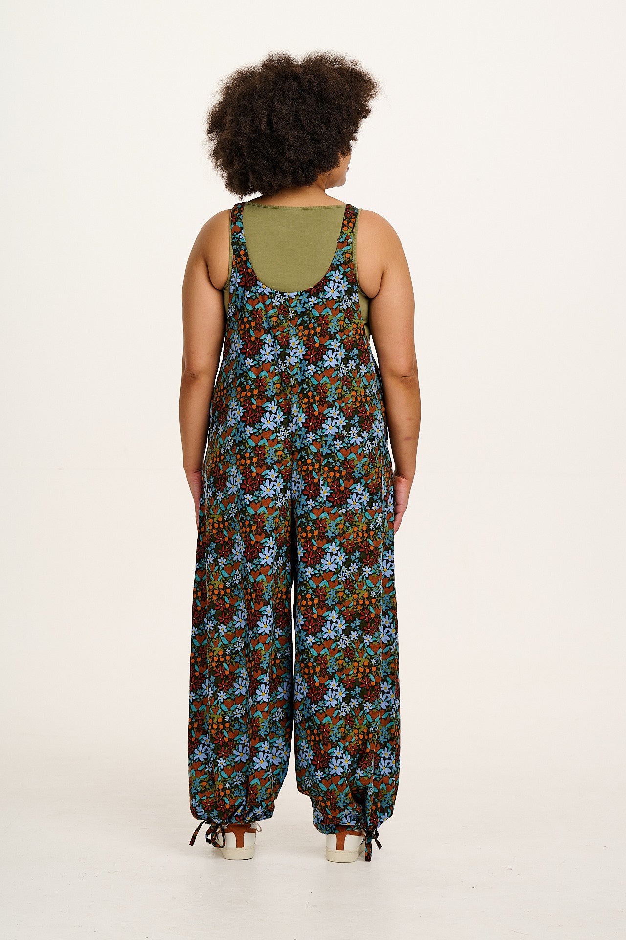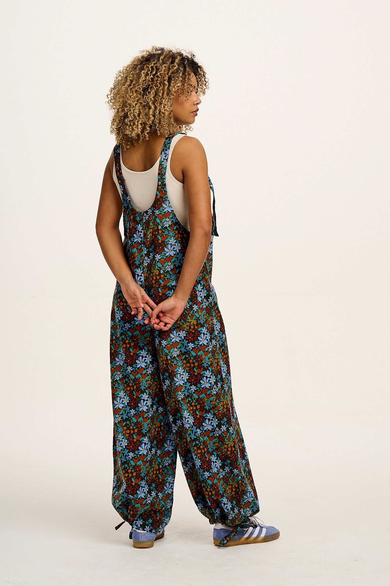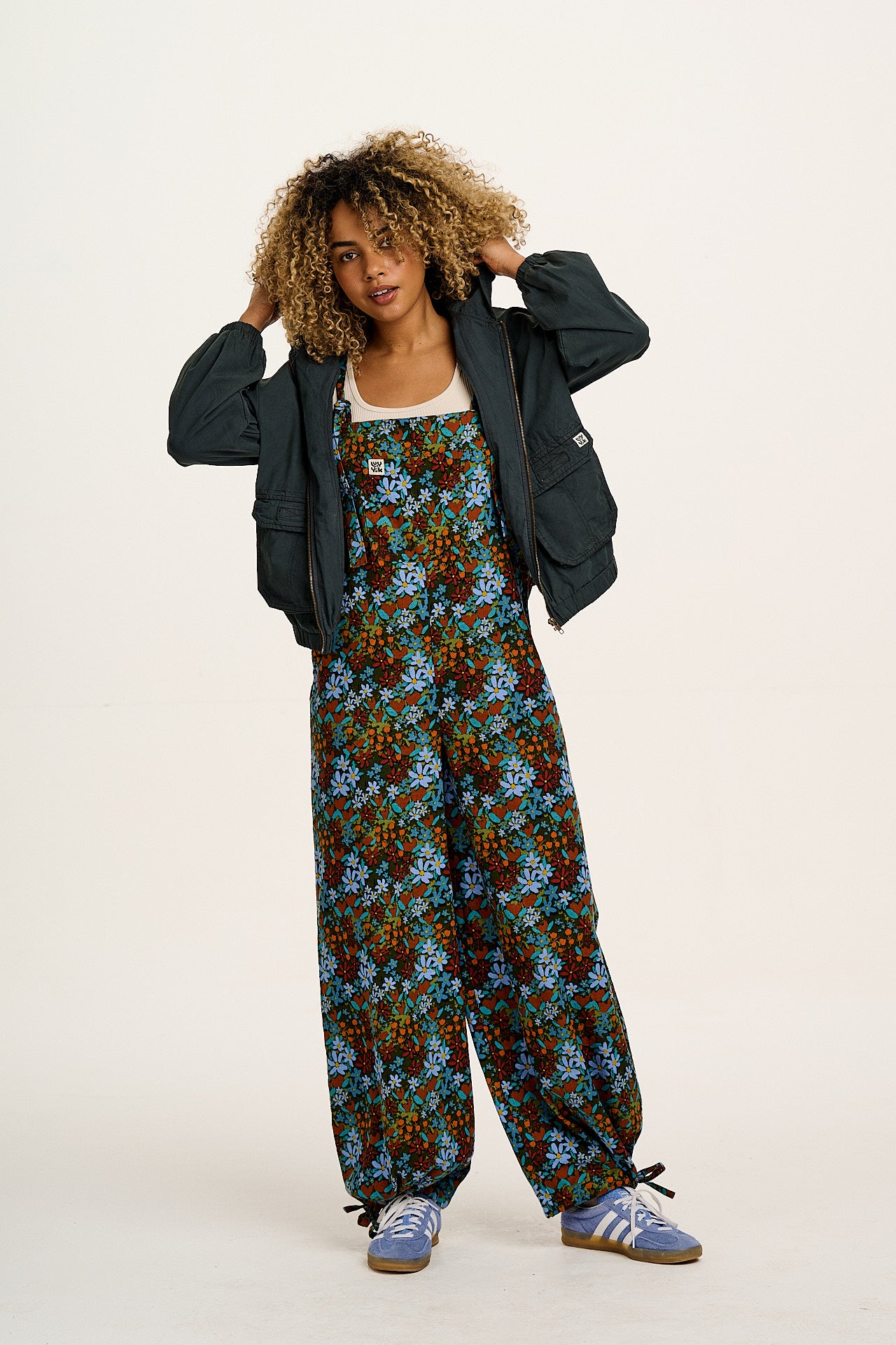 Ali - Wide Leg Cotton Dungarees Blue & Brown Mika Print