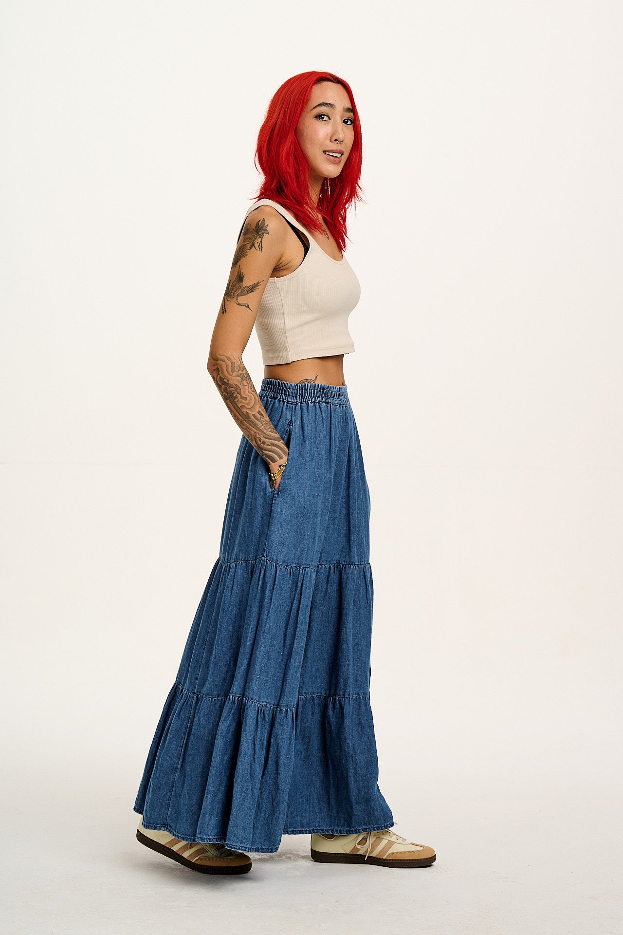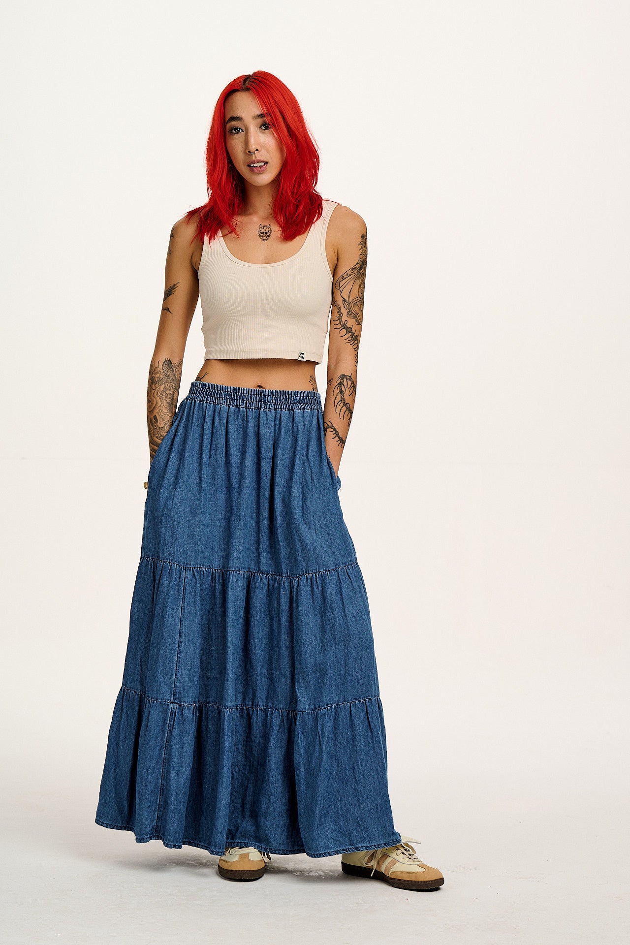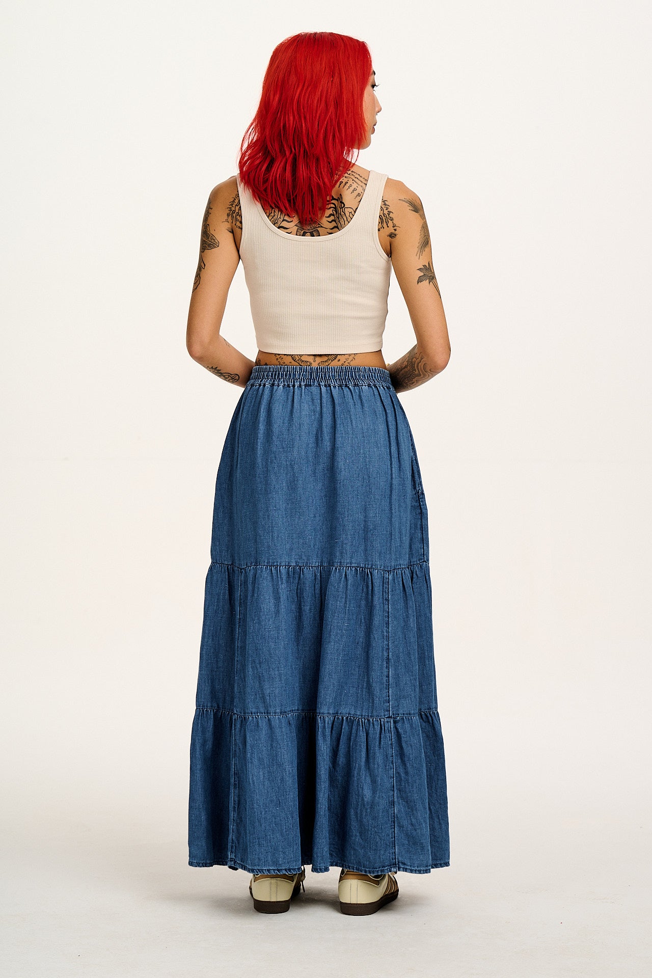 Brie - Maxi Cotton & Hemp Skirt in Mid Wash Blue