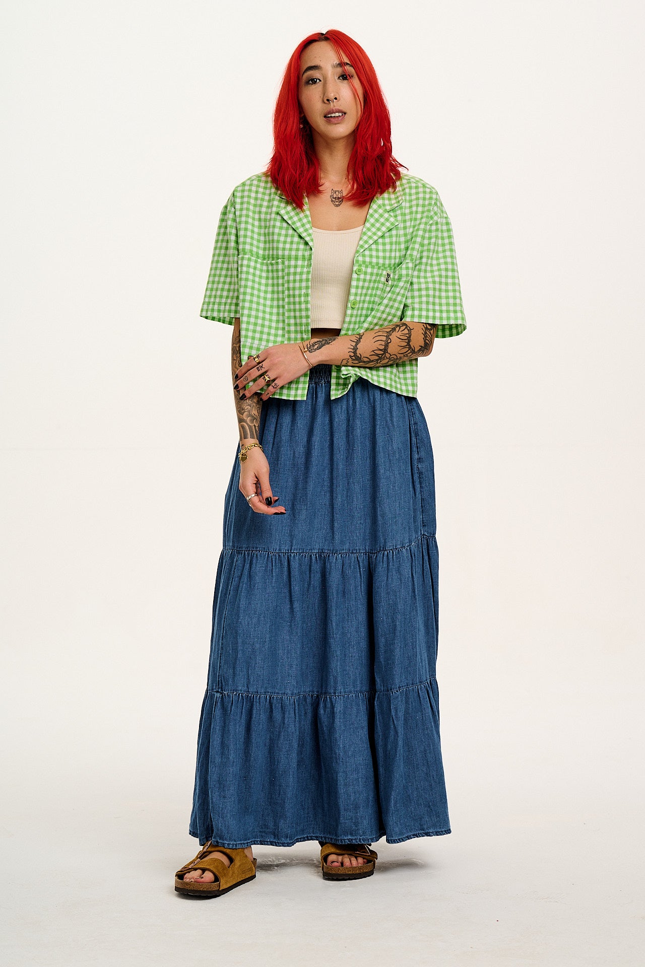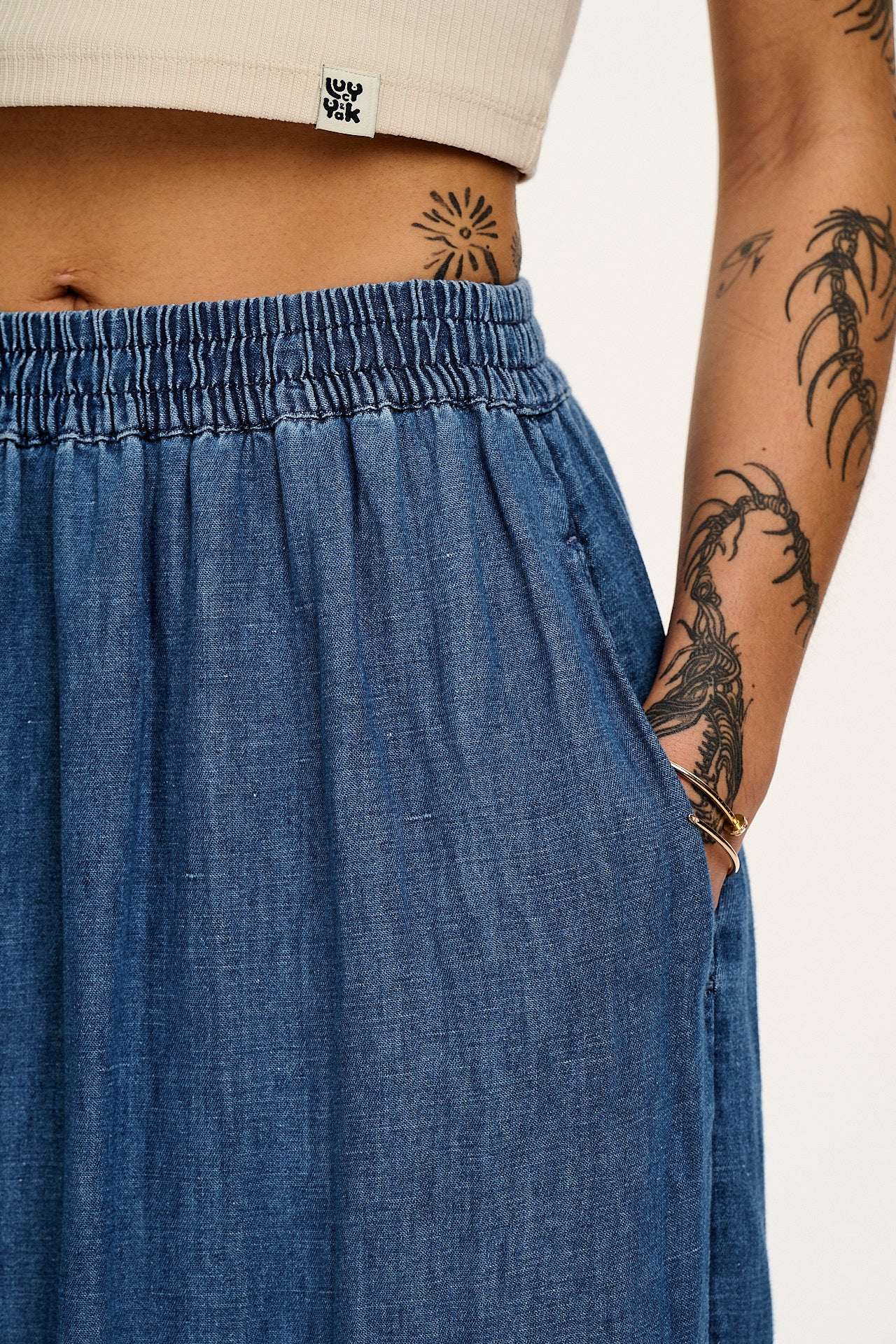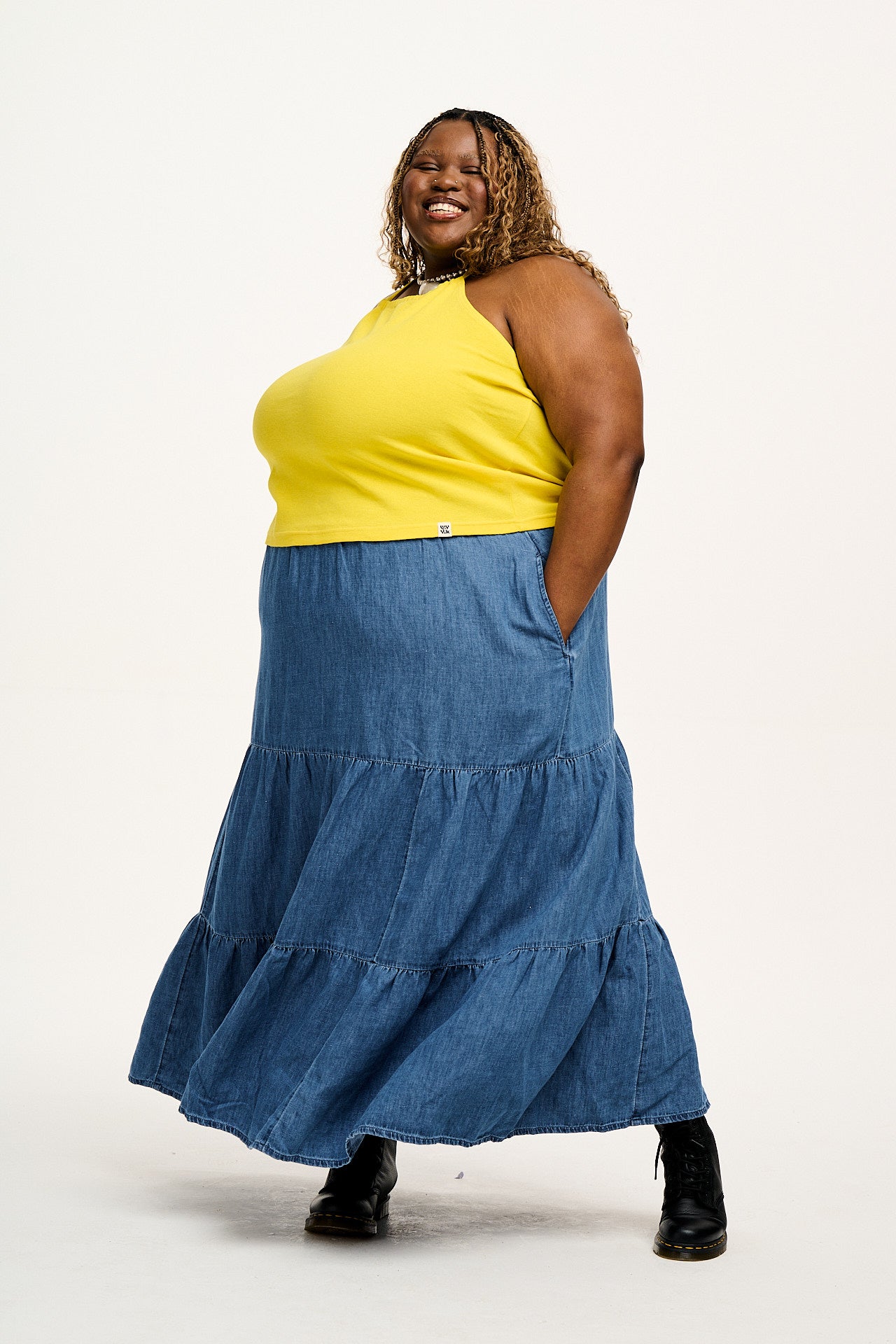 Brie - Maxi Cotton & Hemp Skirt in Mid Wash Blue