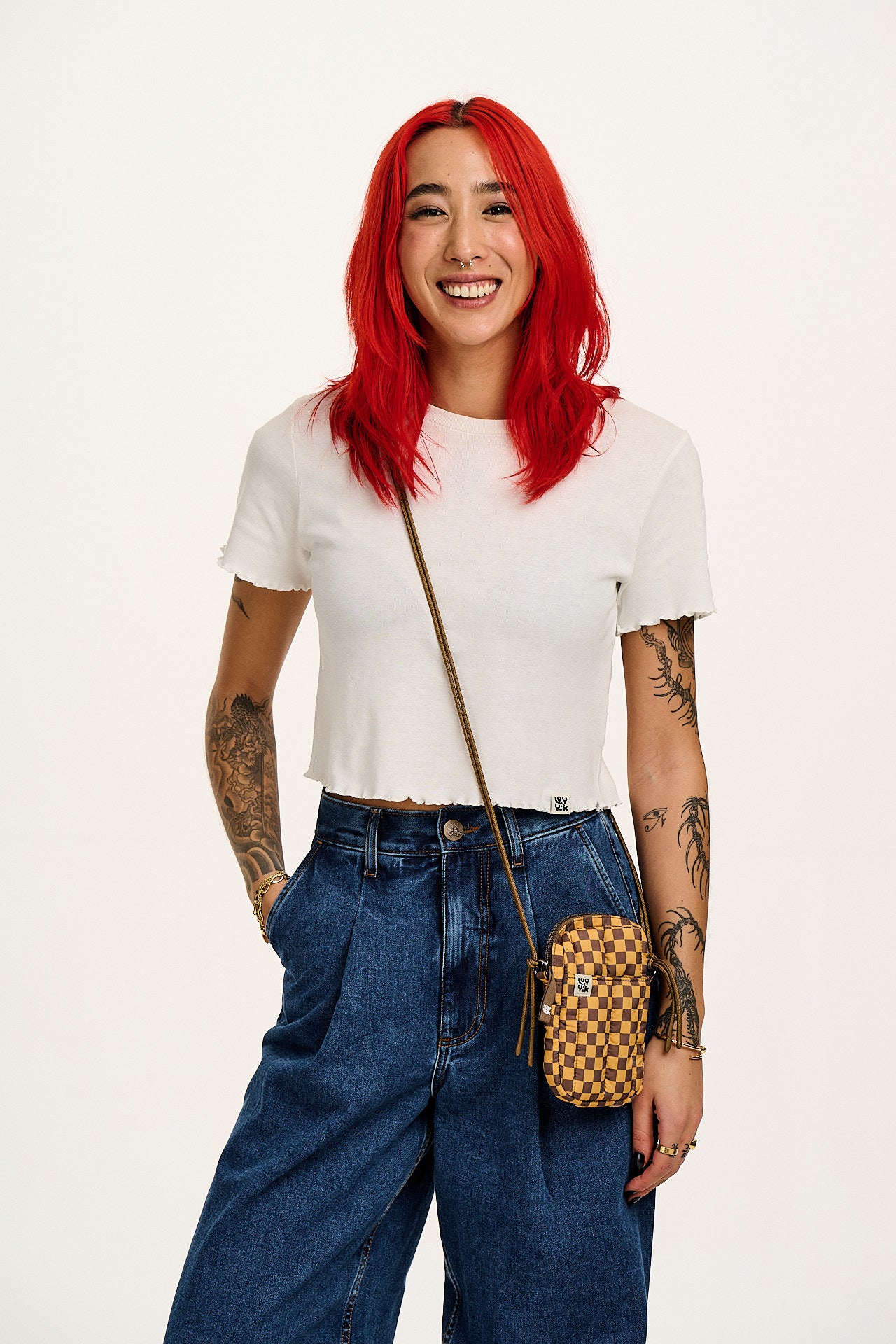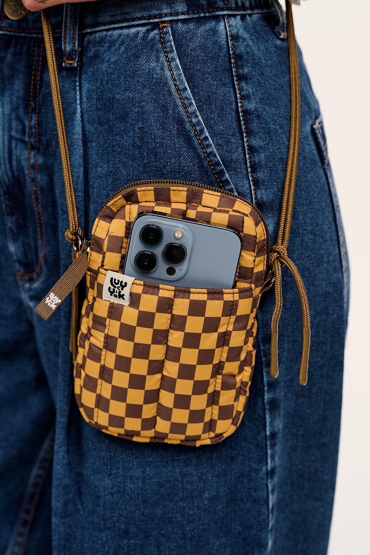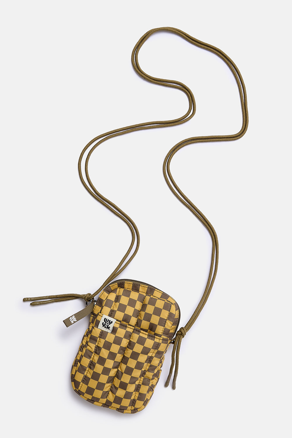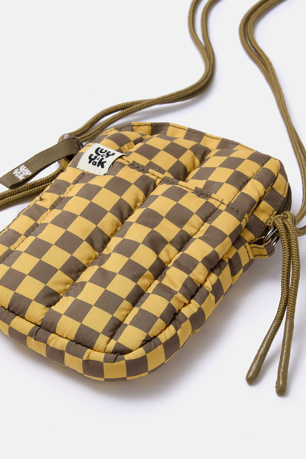Brock - Recycled Polyester Crossbody Bag in Yellow & Brown Checkerboard