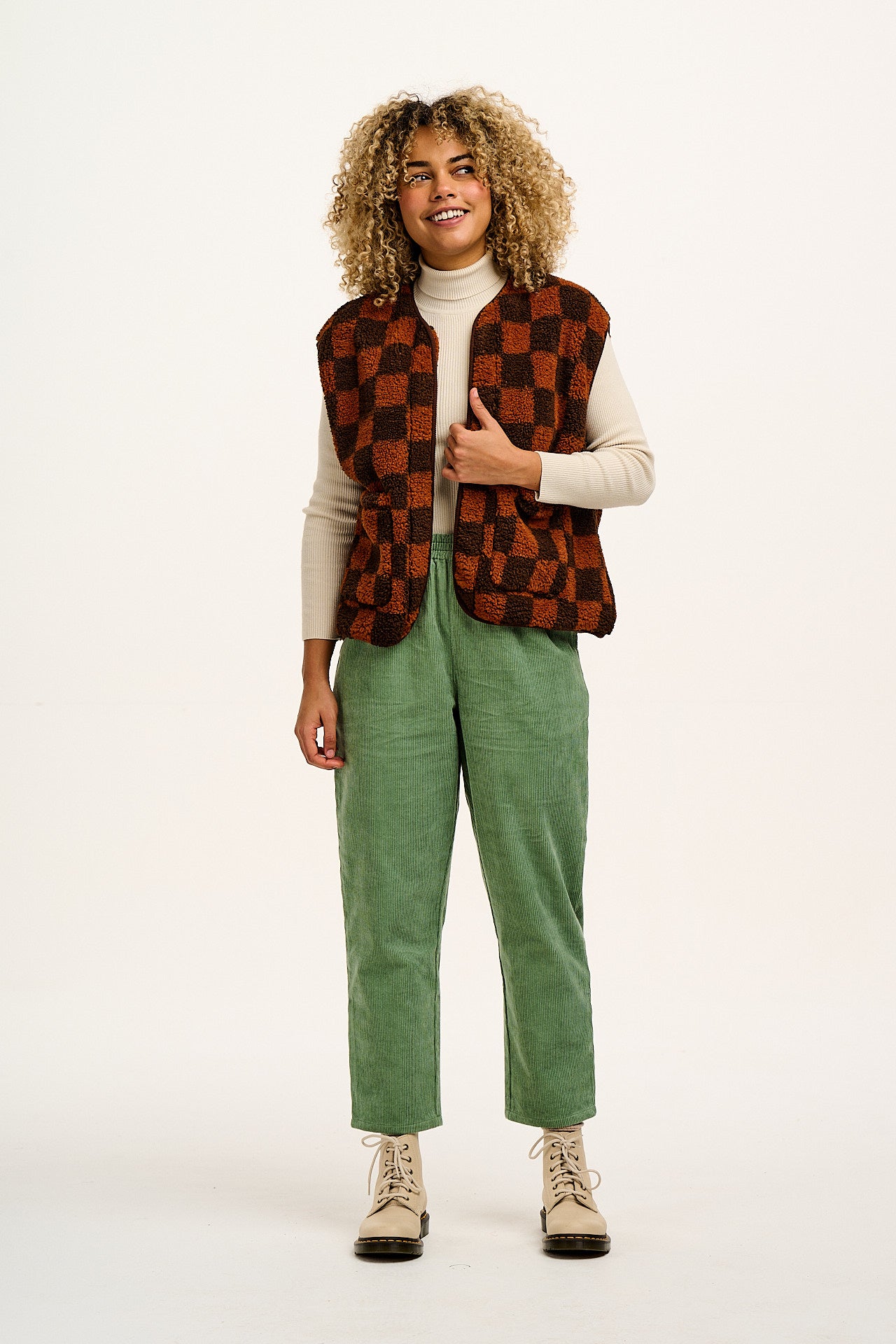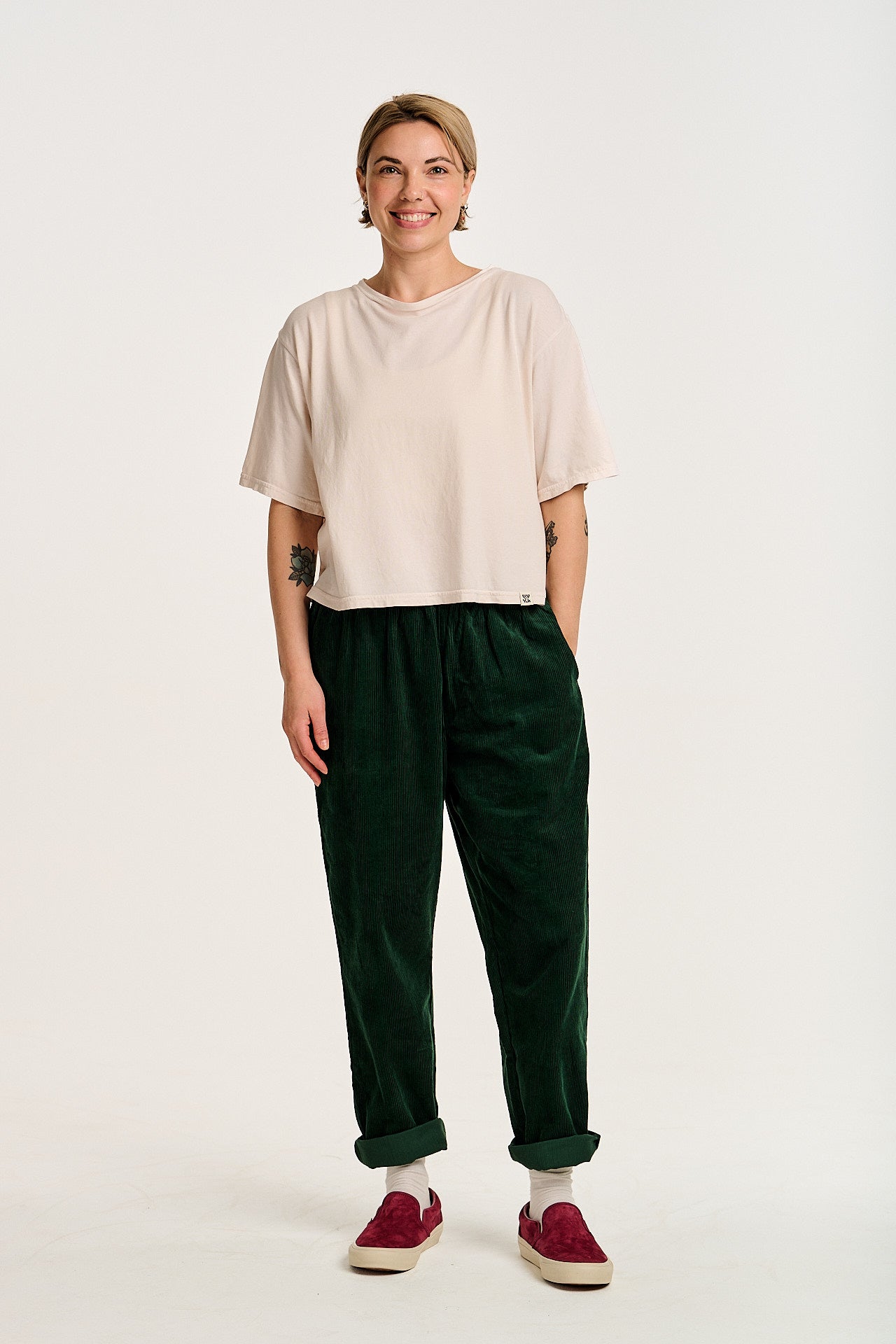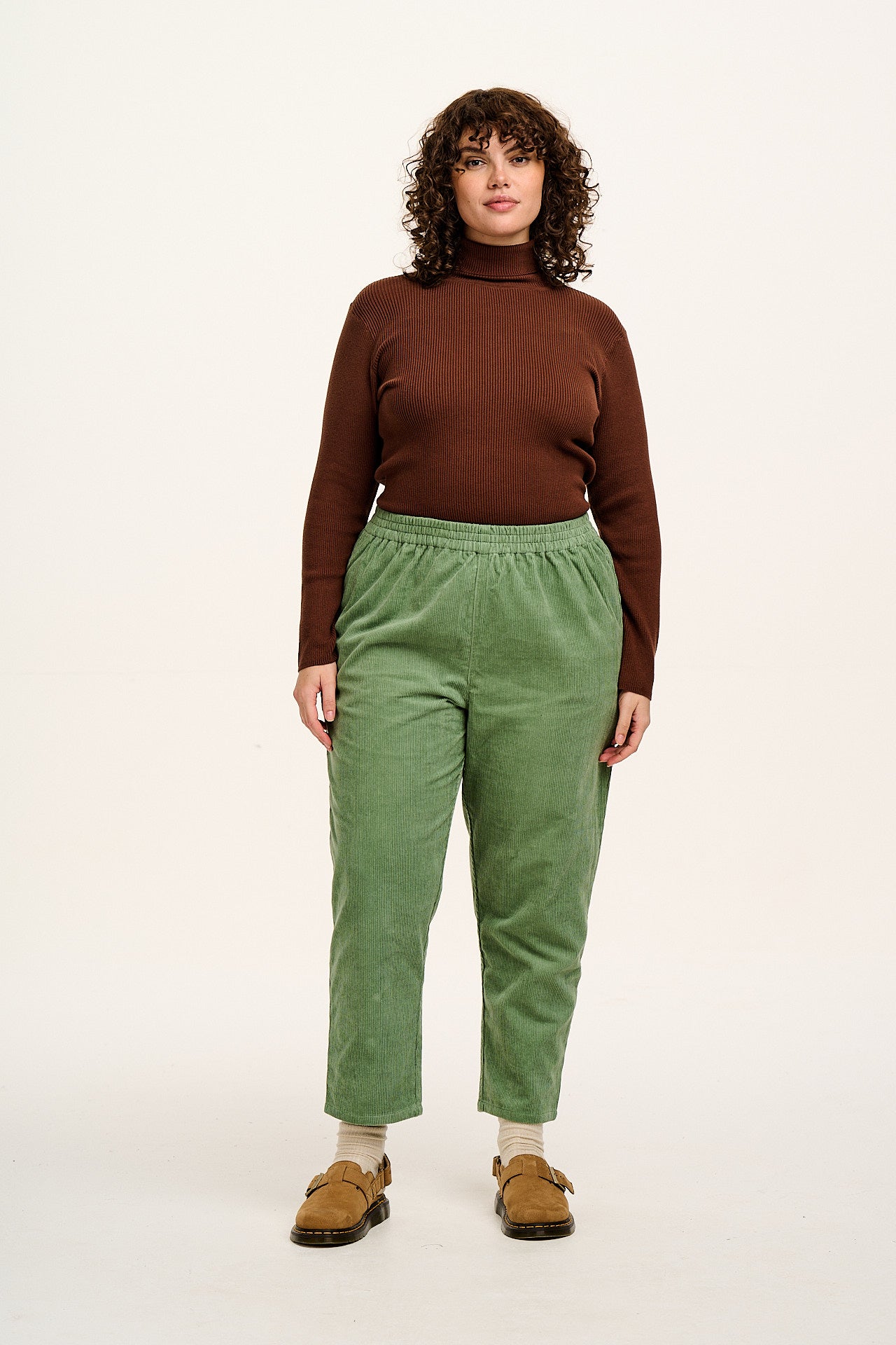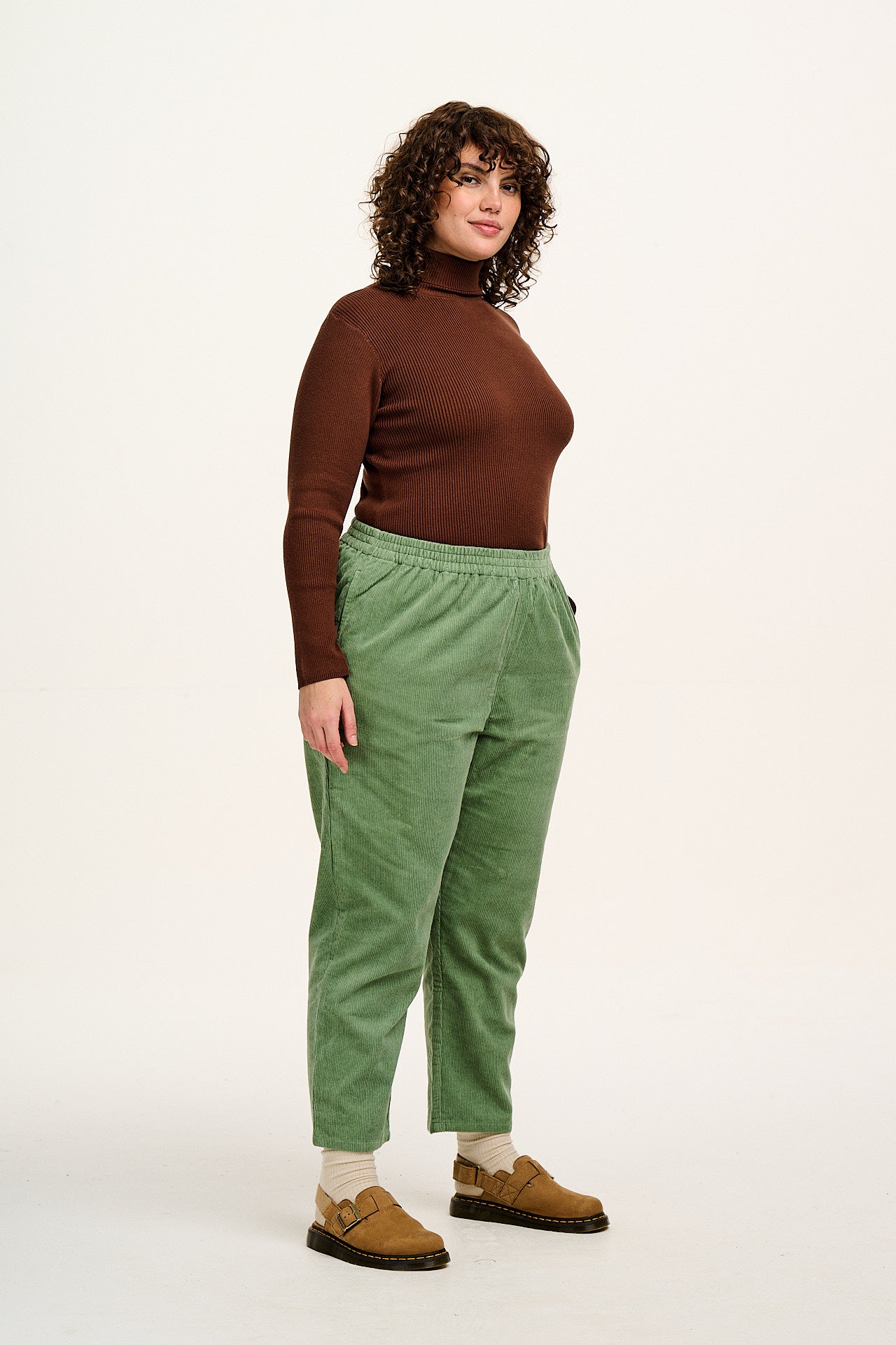 Billie - Corduroy Trousers in Posy Green
