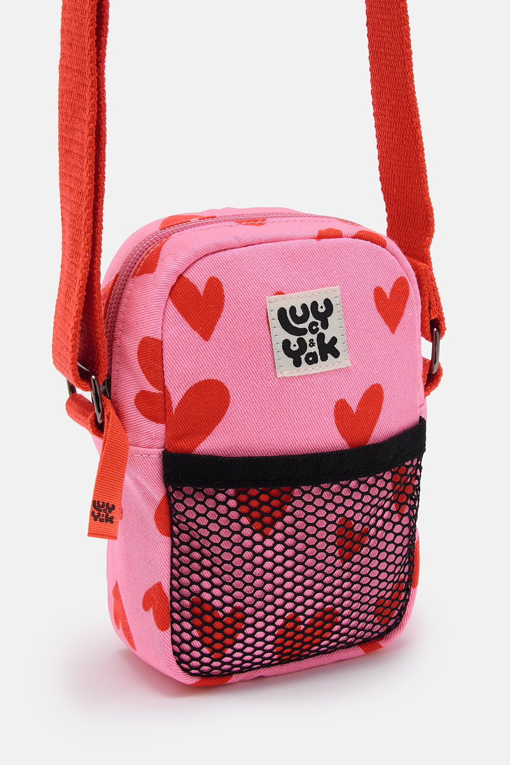 Brady - Cotton Crossbody Bag in Pink Heart Cupid Print