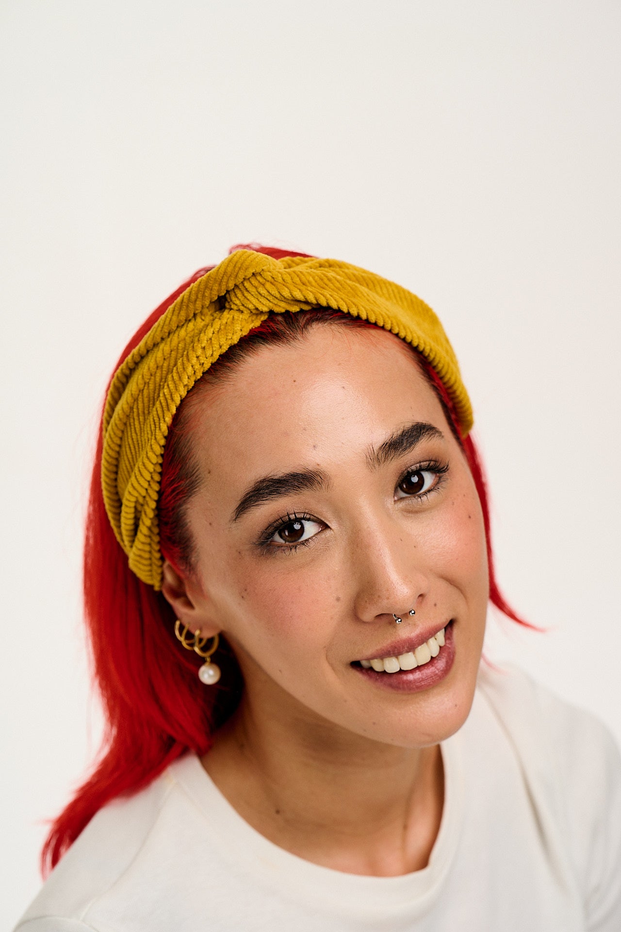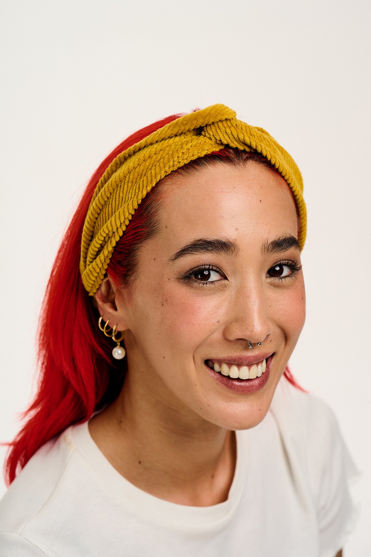 Hallie - Twist Top Cotton Headband in Mustard Corduroy