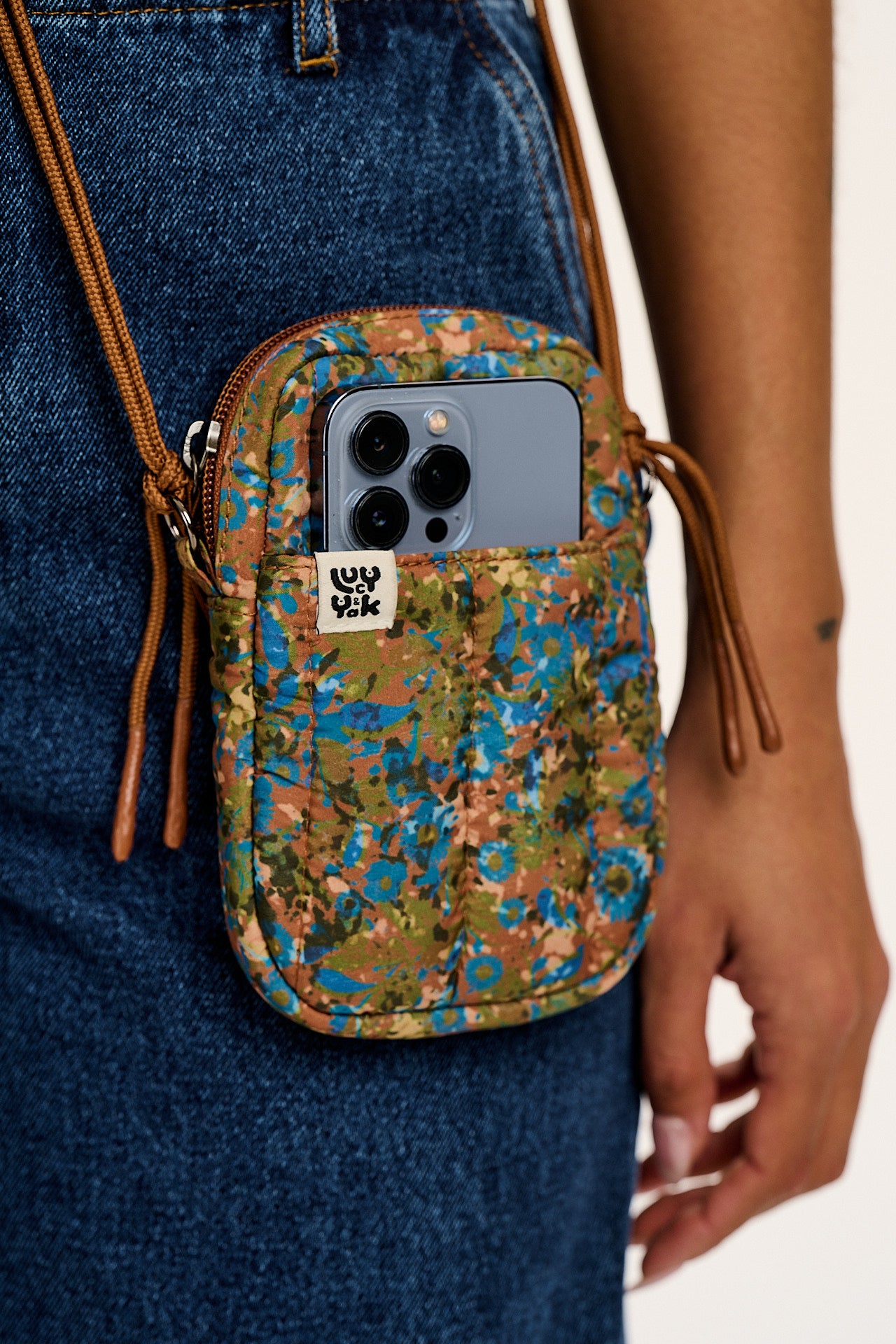 Brady - Cotton Crossbody Bag in Blue & Brown Mika Print