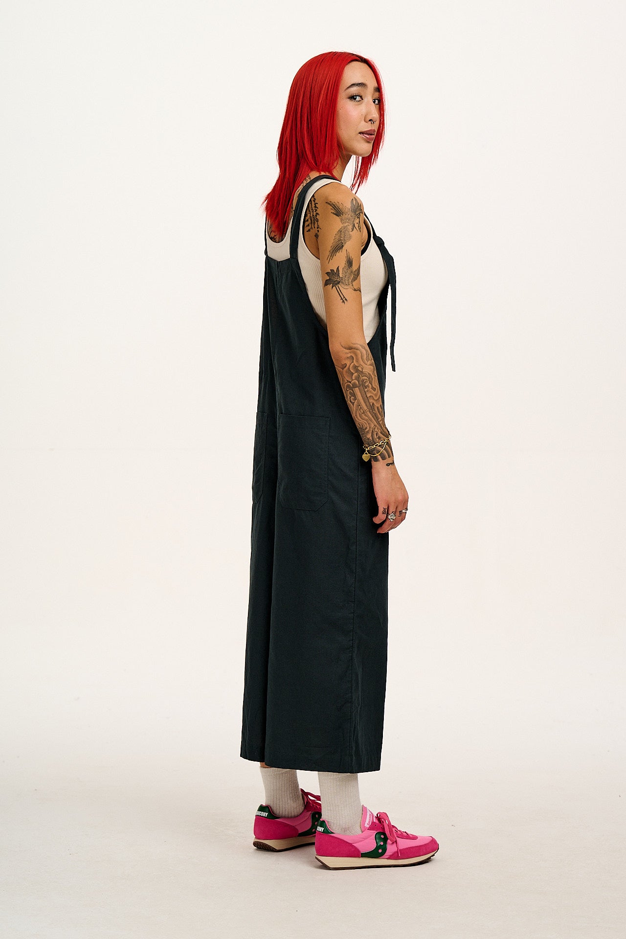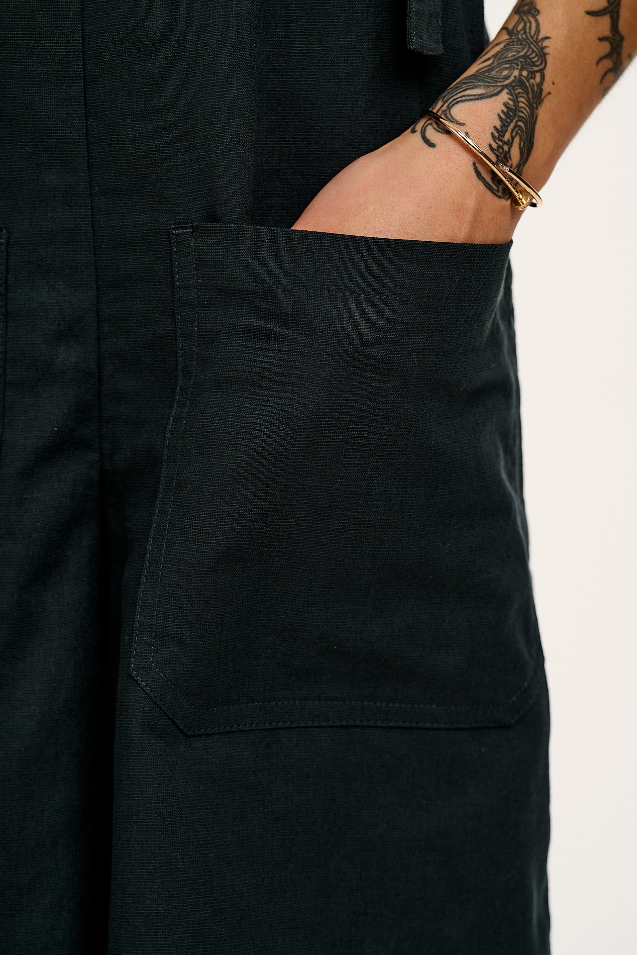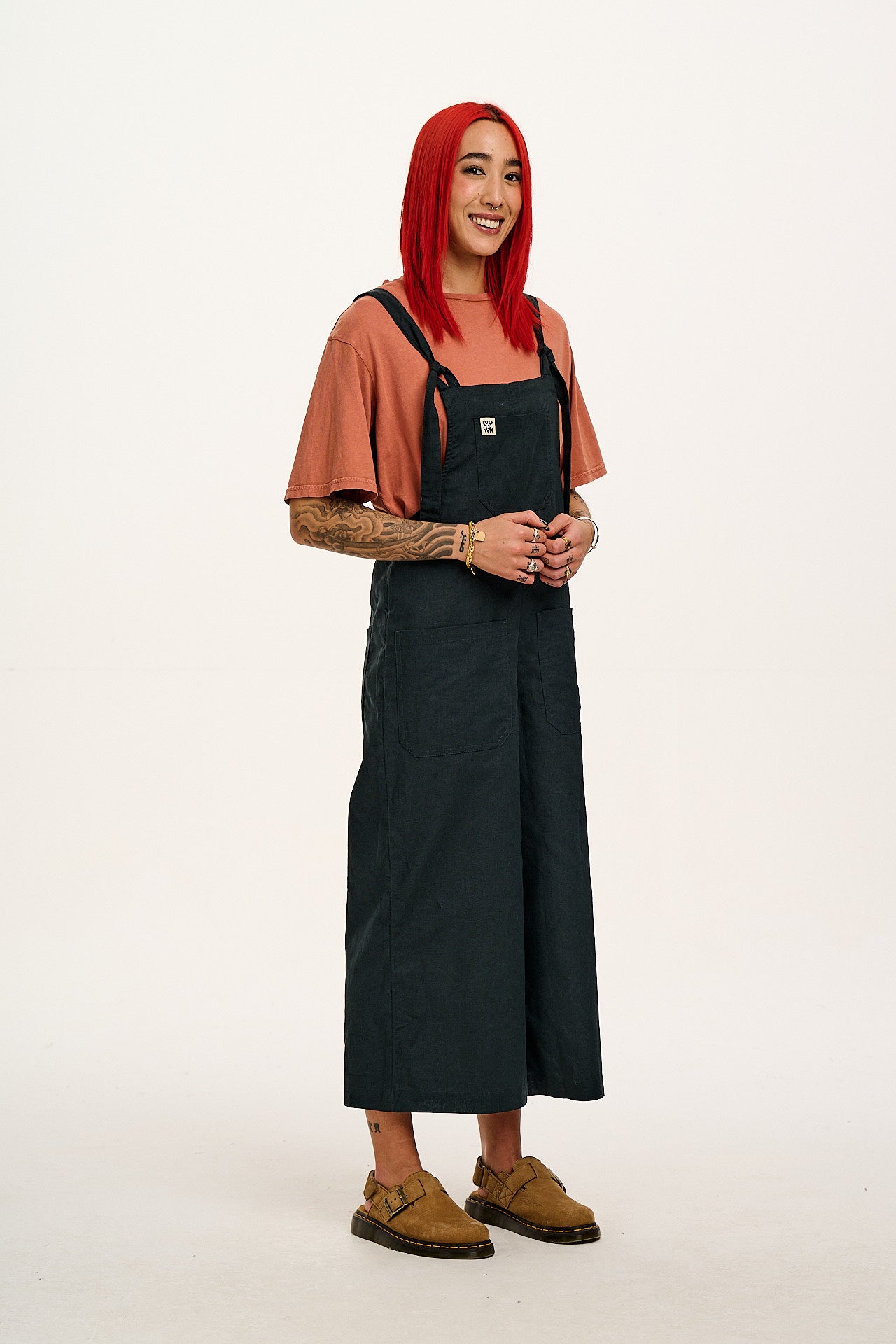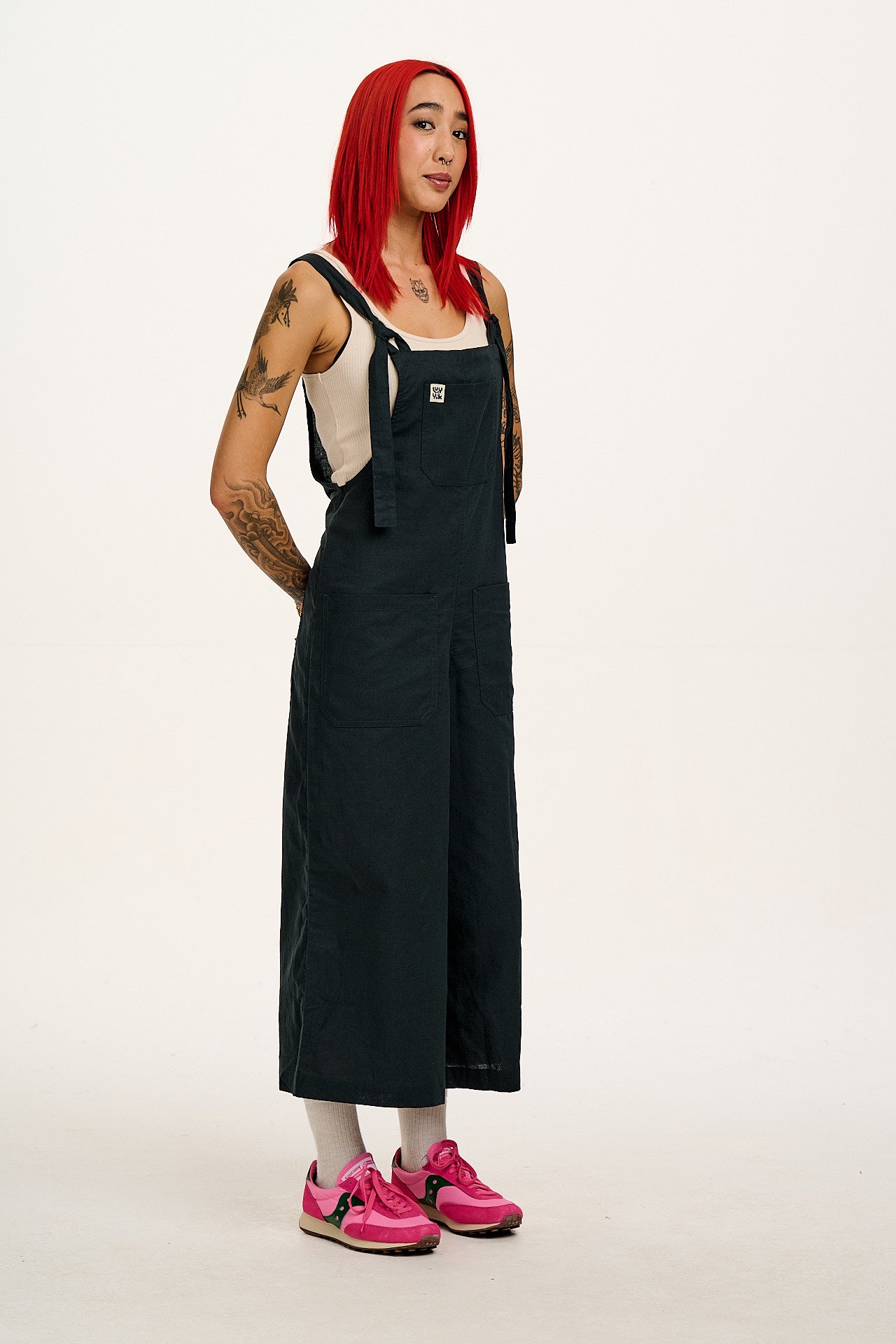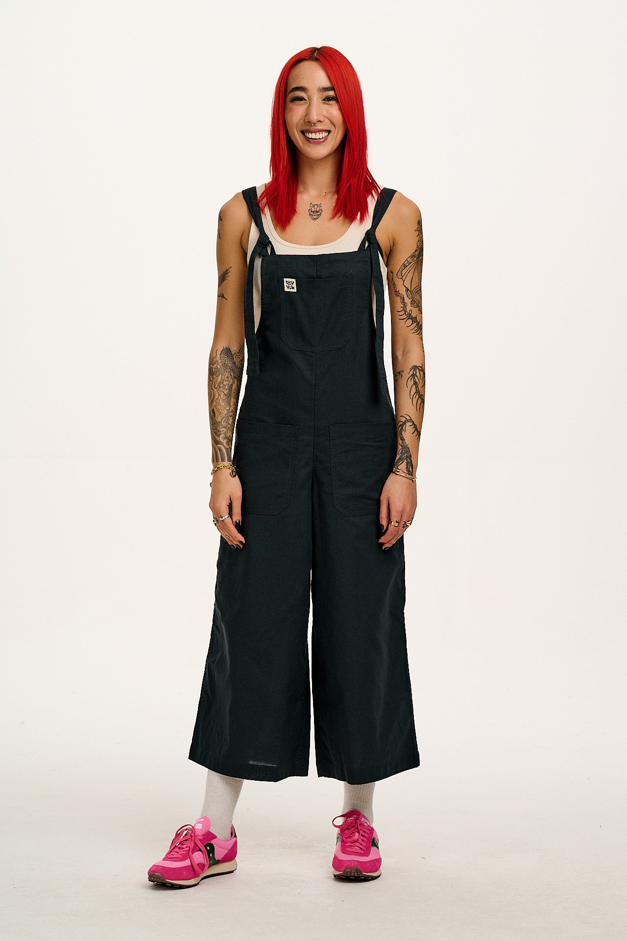 Jenny - Wide Leg Cotton & Linen Dungaree in Midnight Black