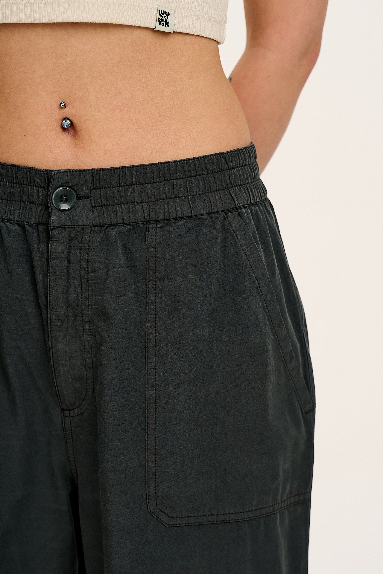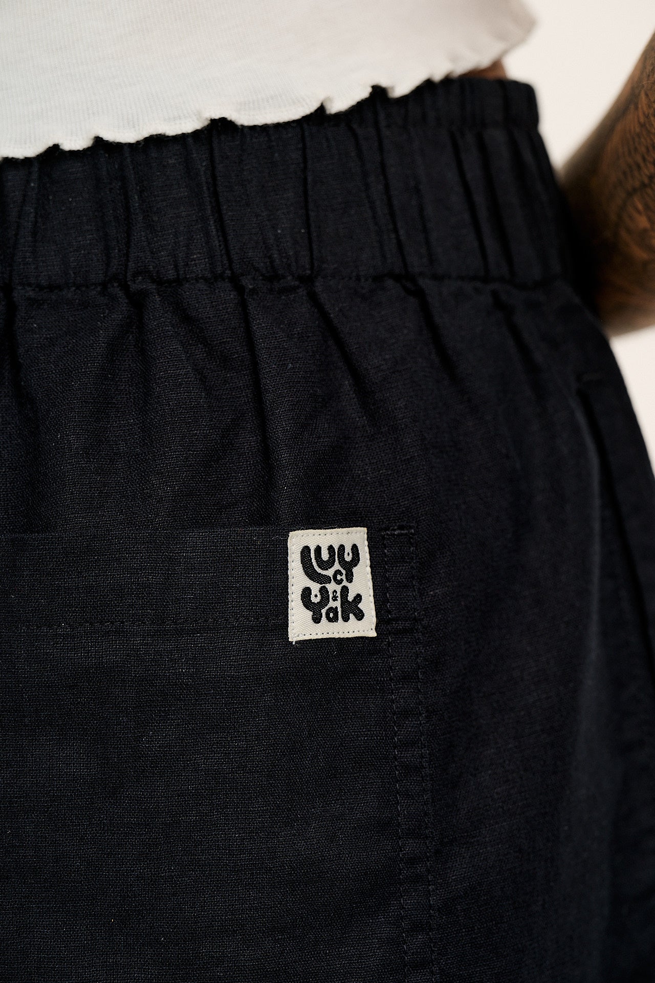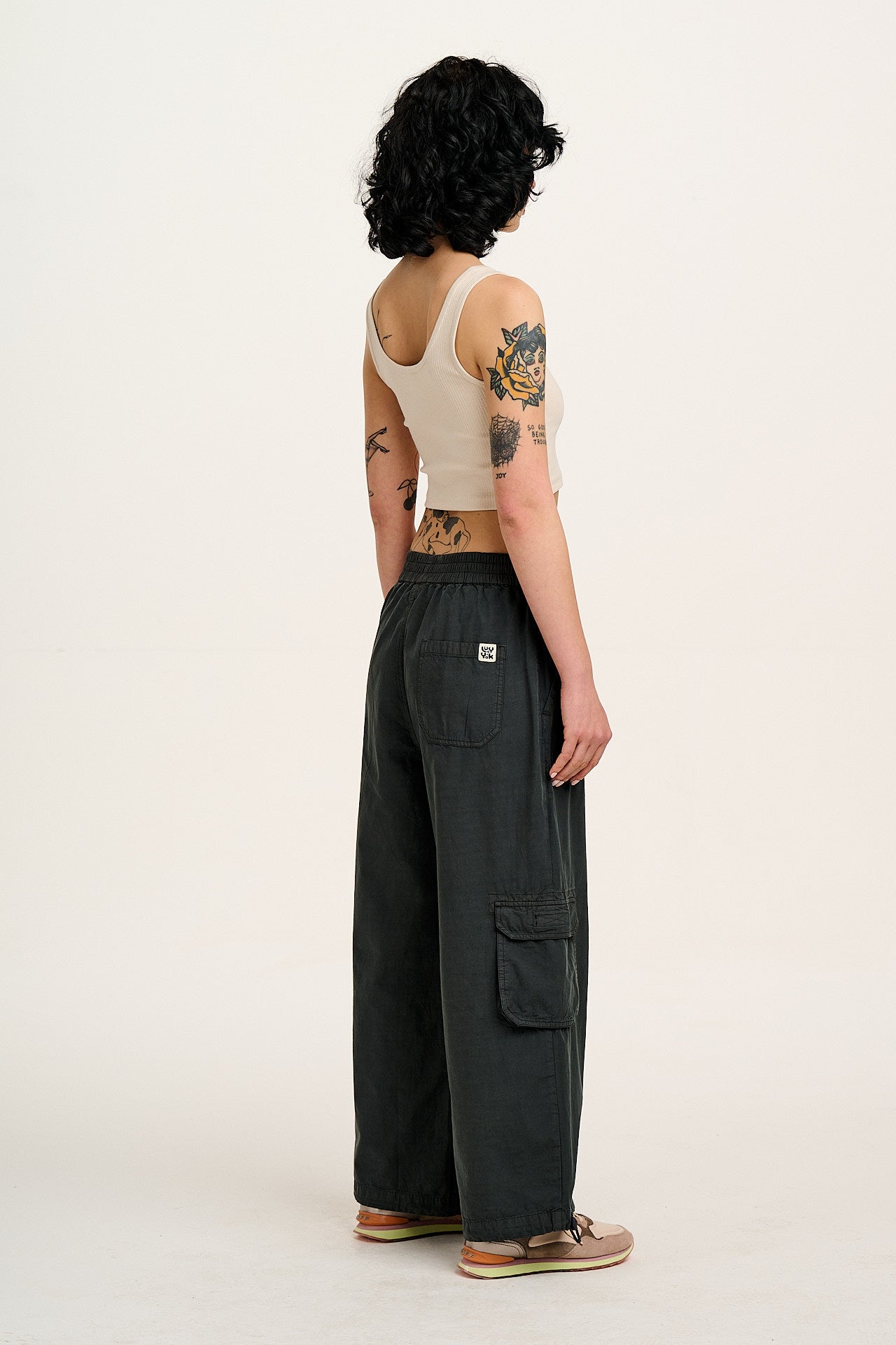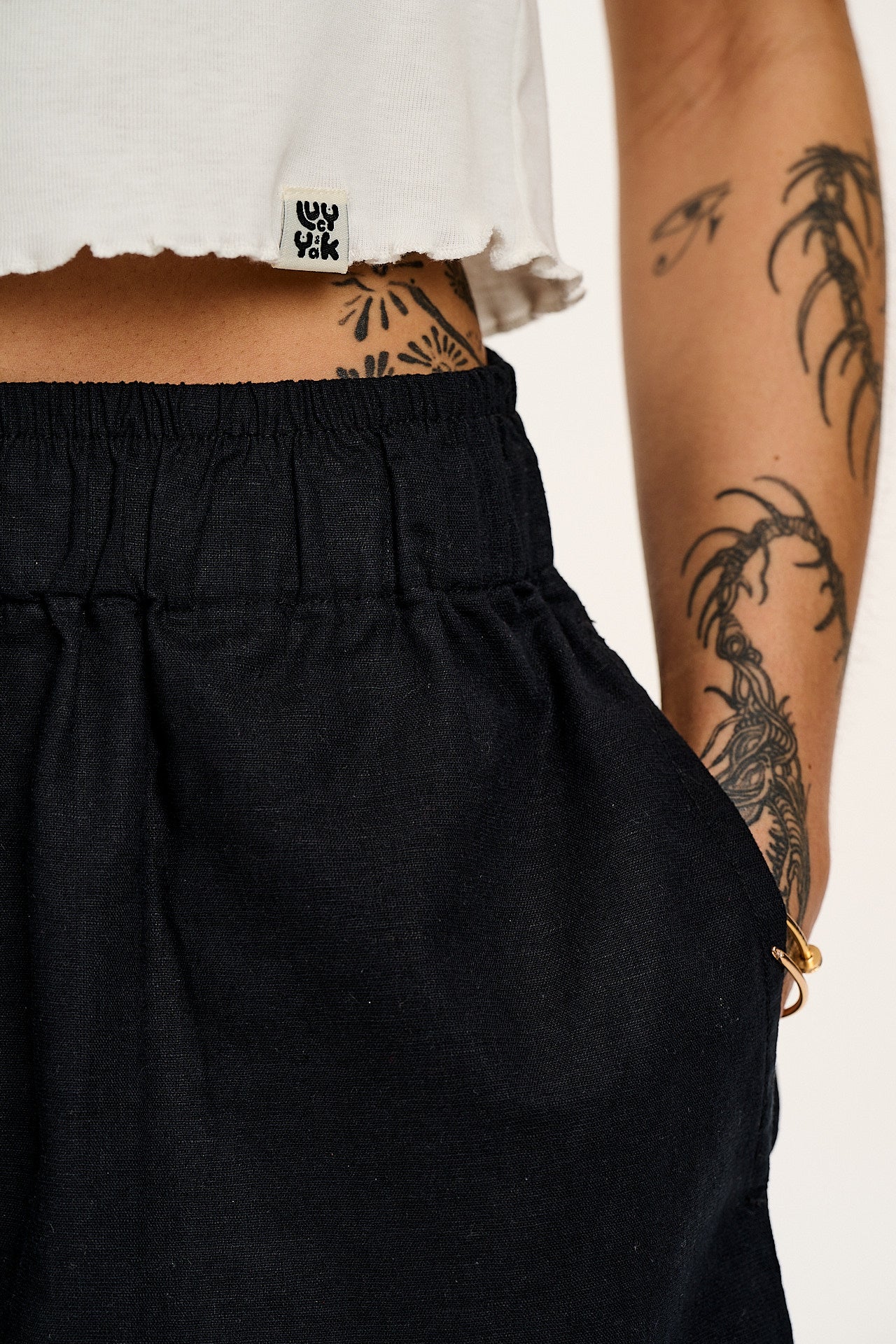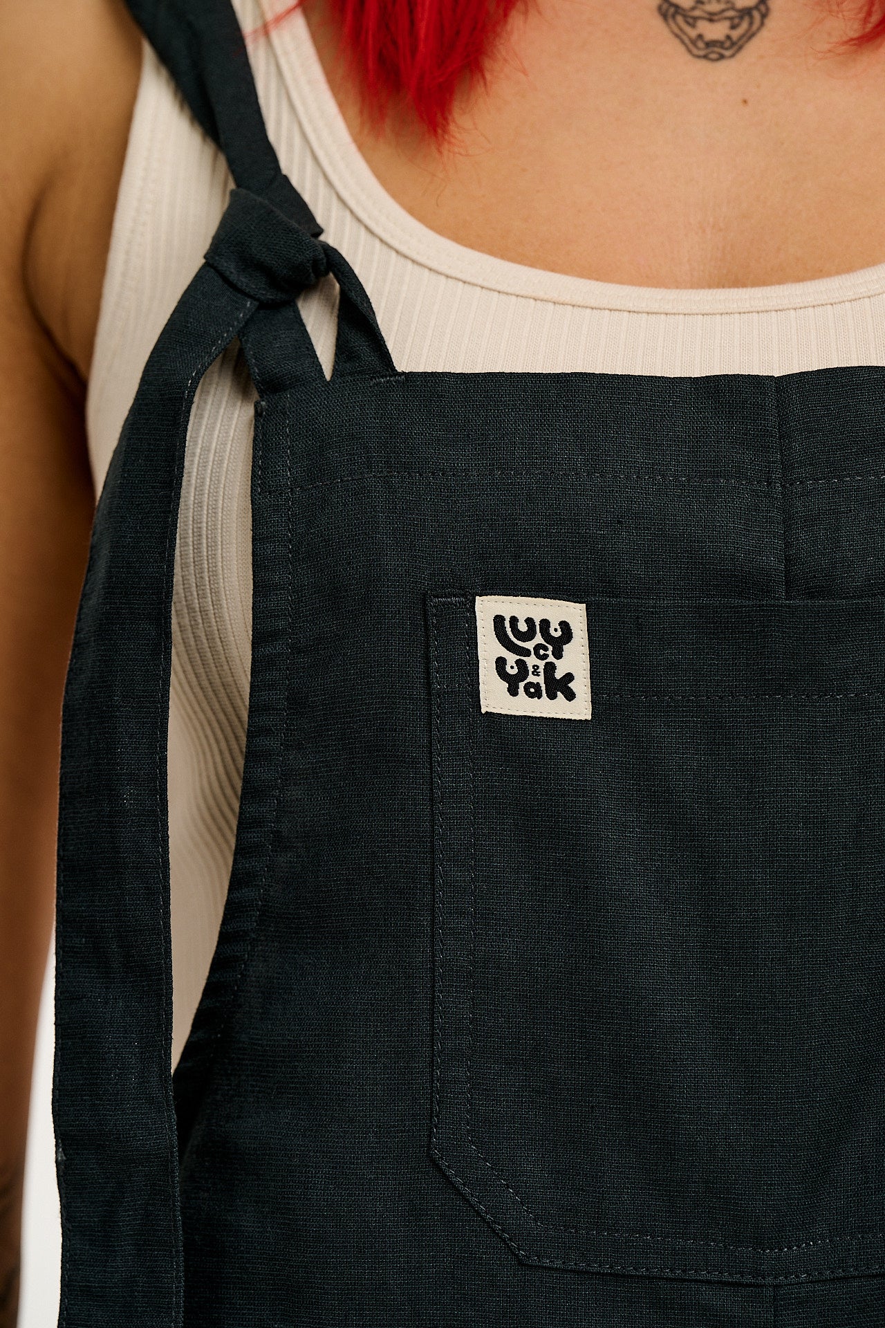 Jenny - Wide Leg Cotton & Linen Dungaree in Midnight Black