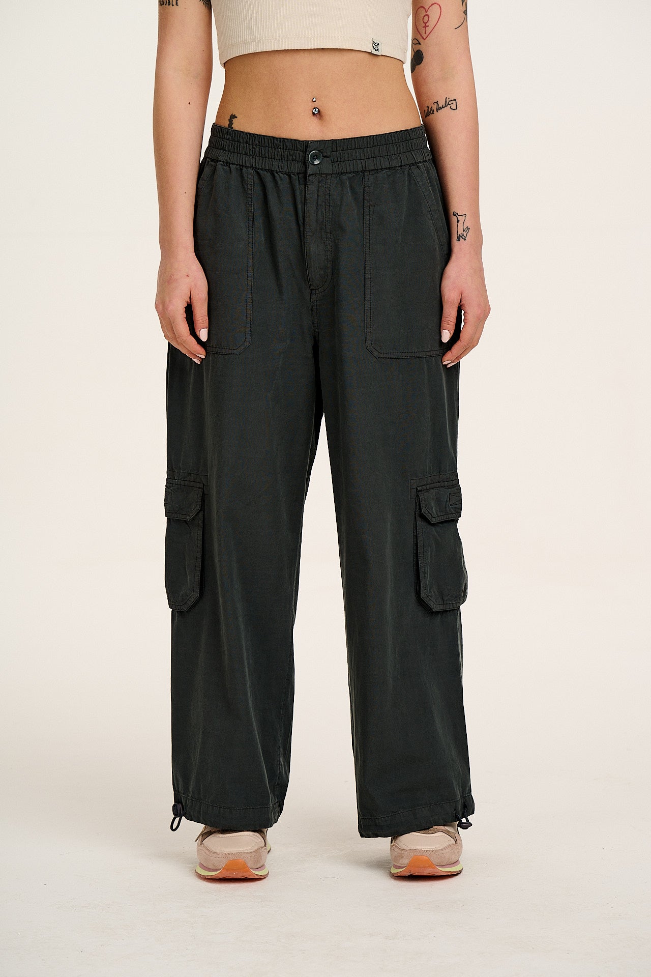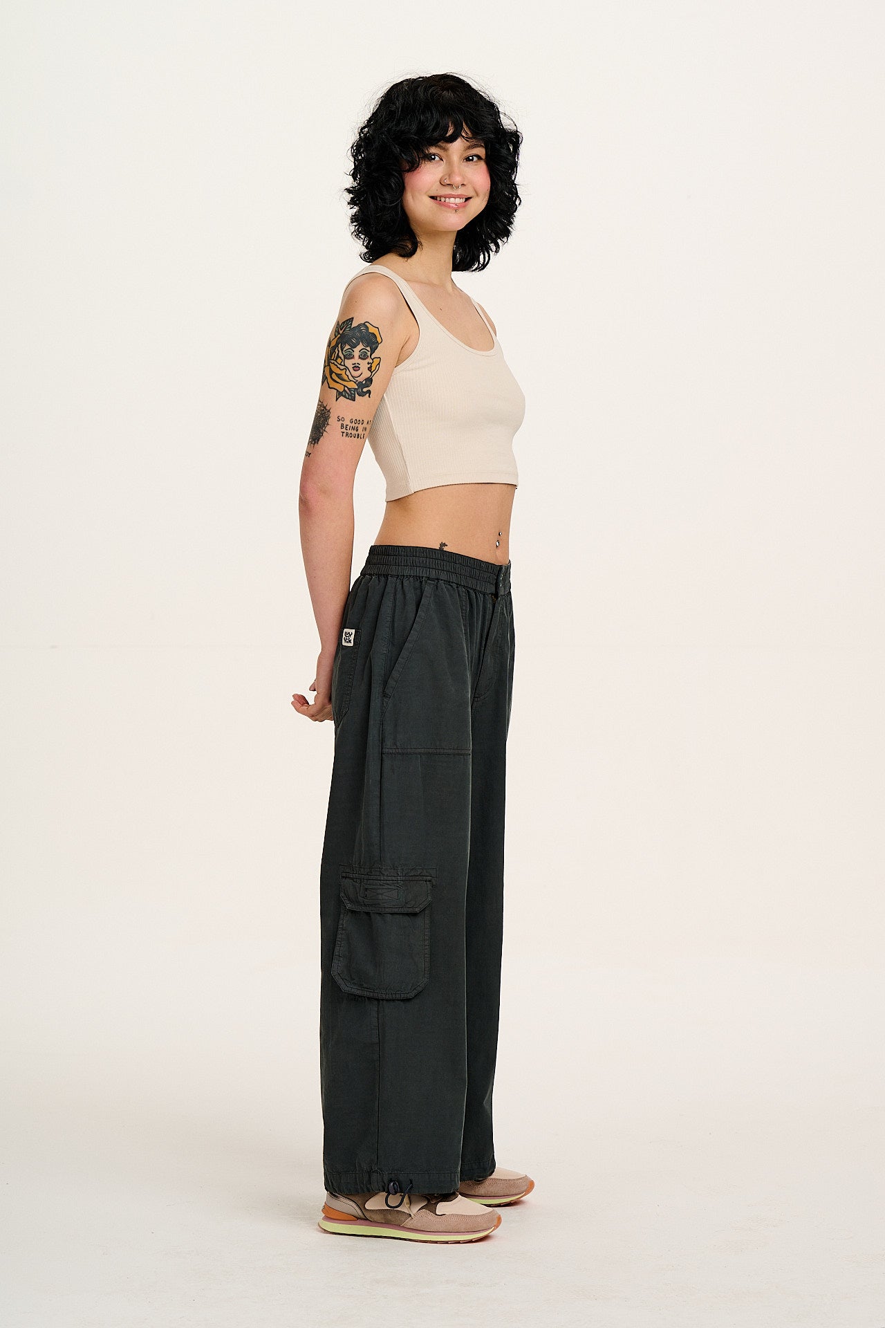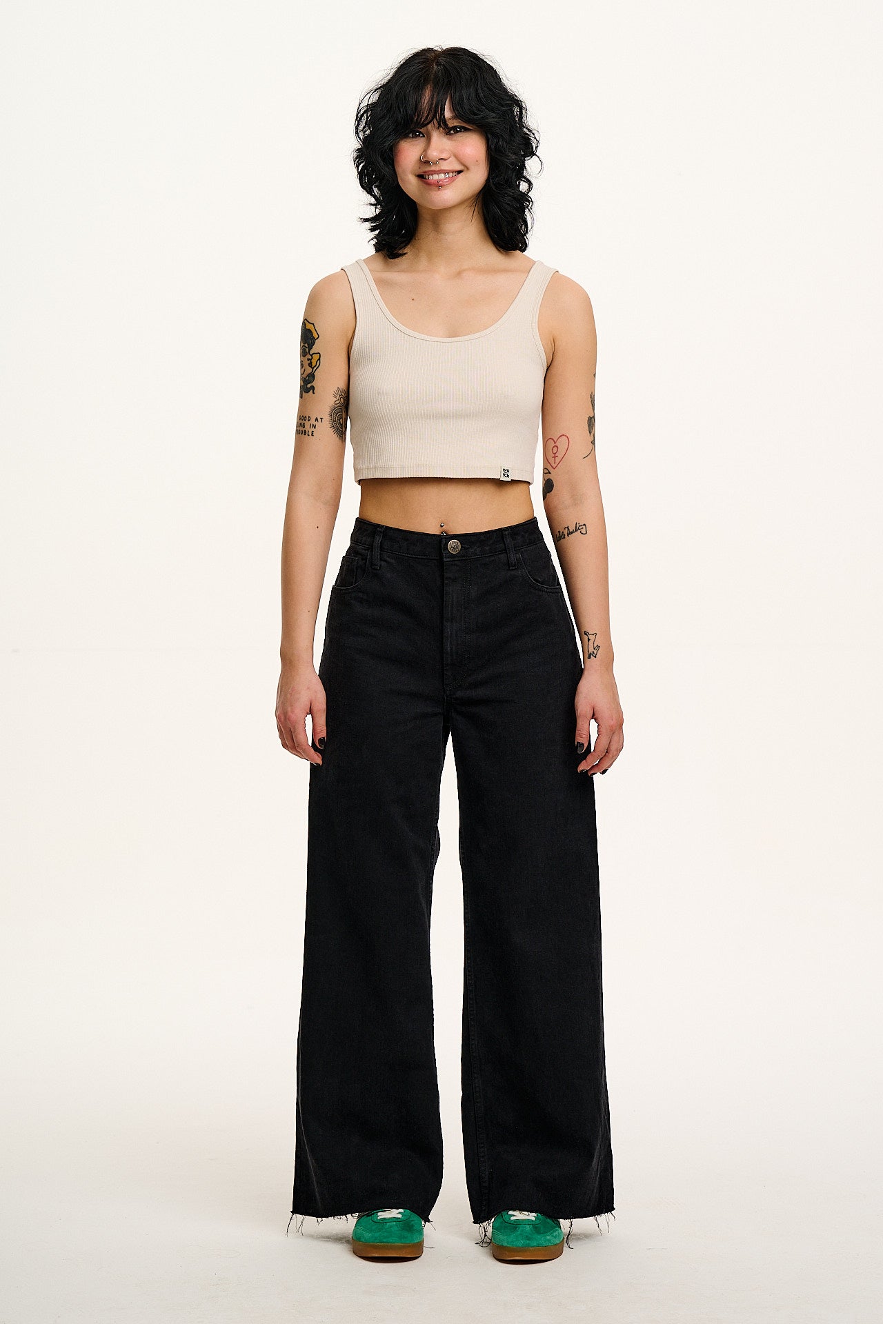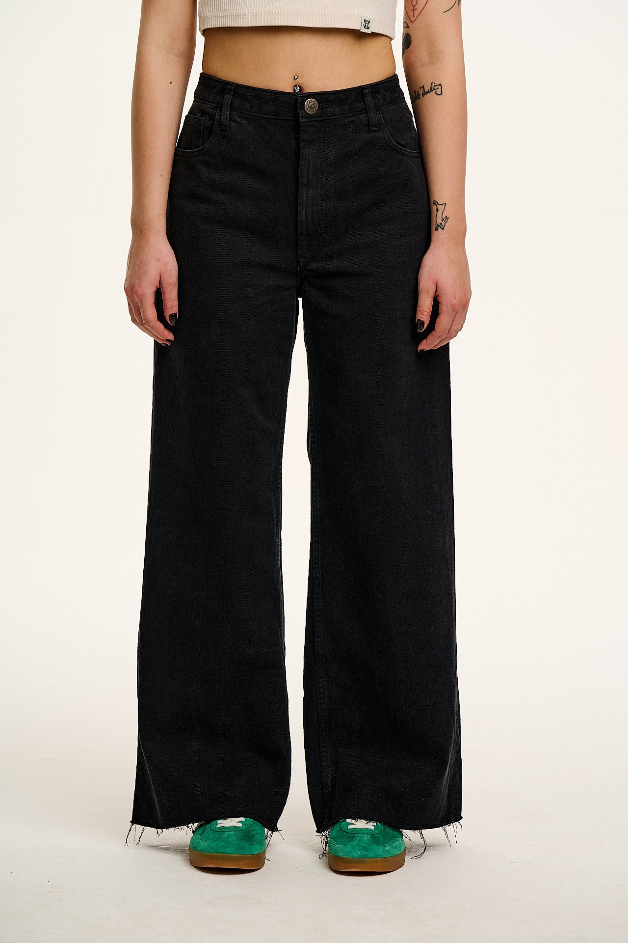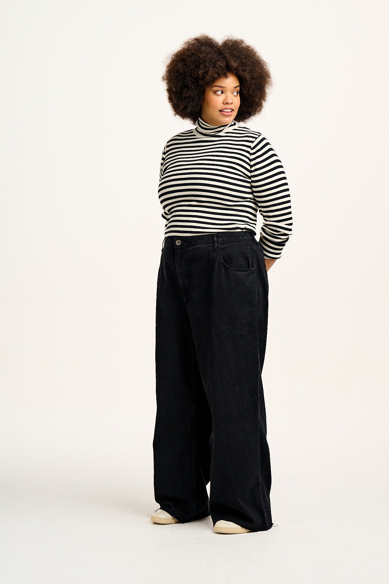 Jenny - Wide Leg Cotton & Linen Dungaree in Midnight Black