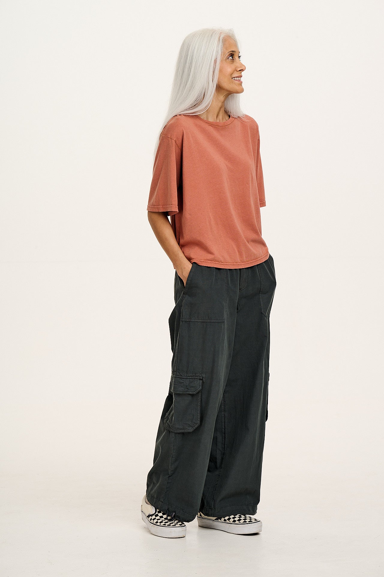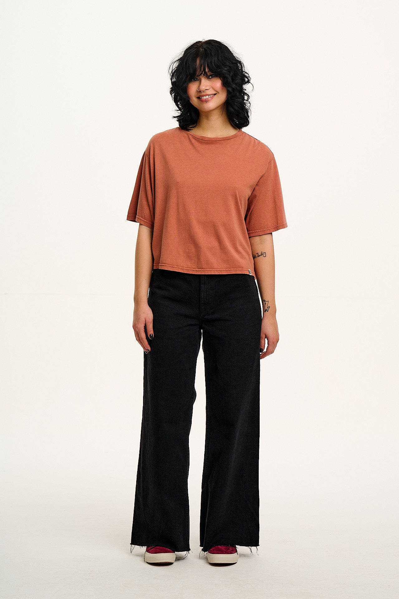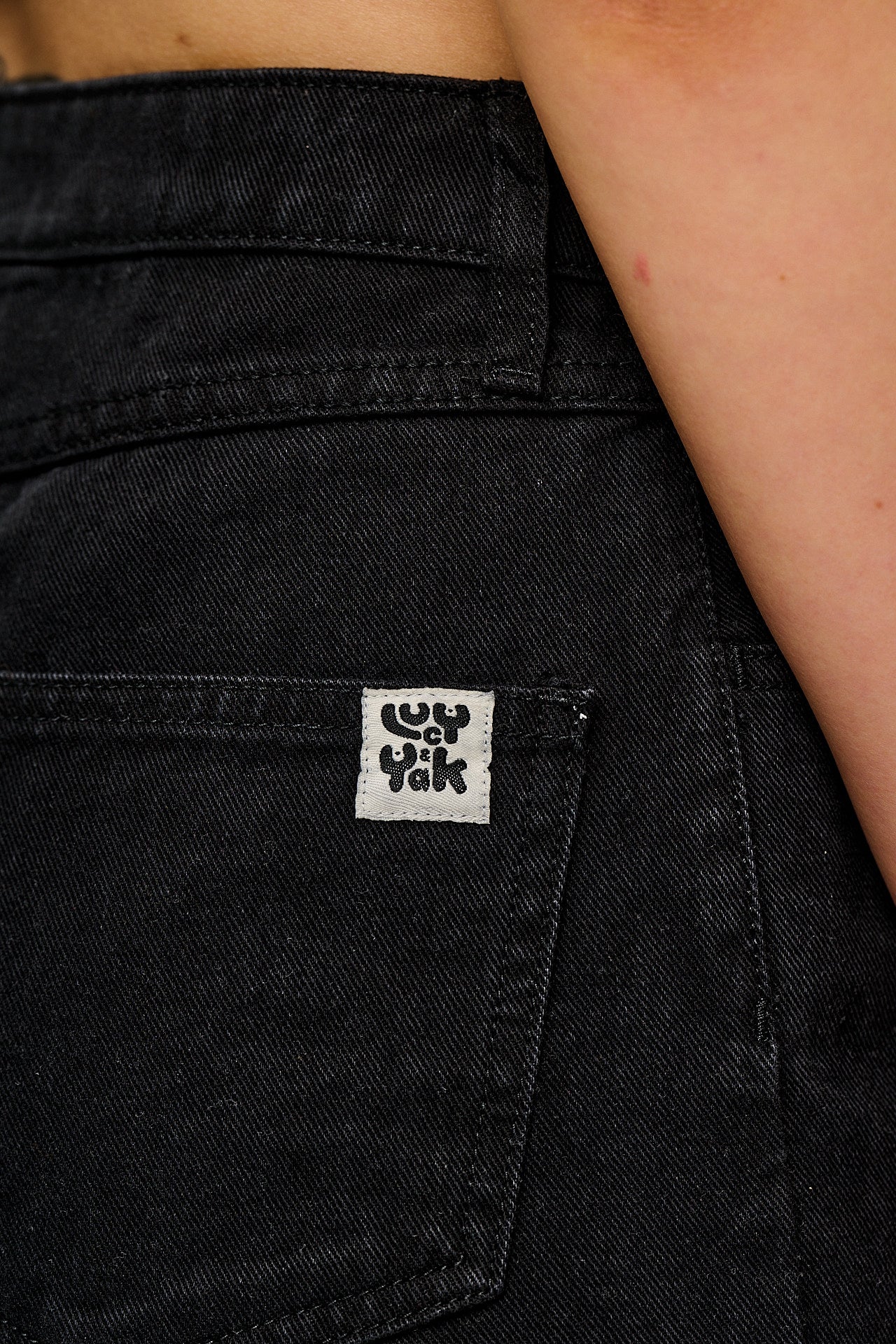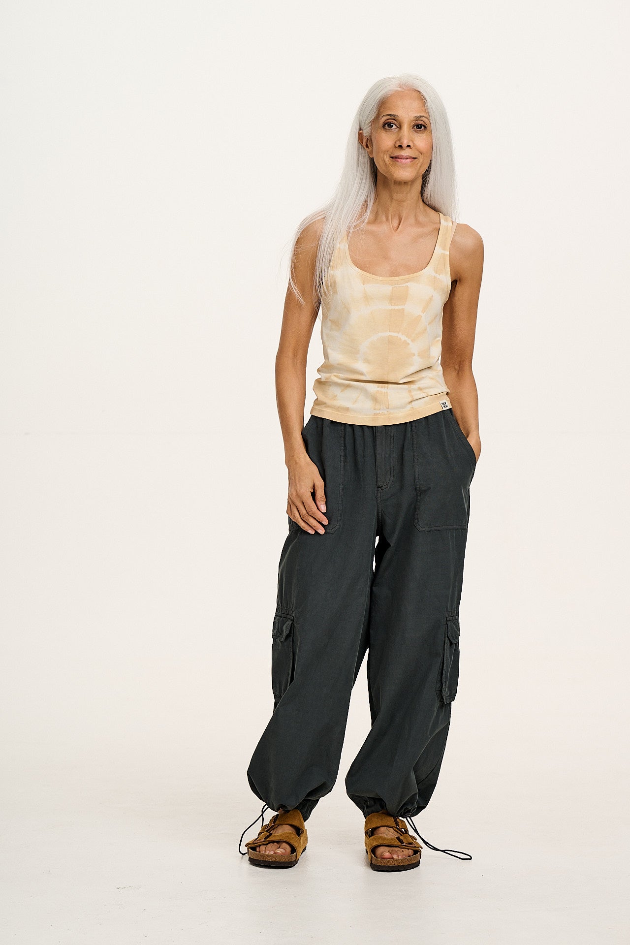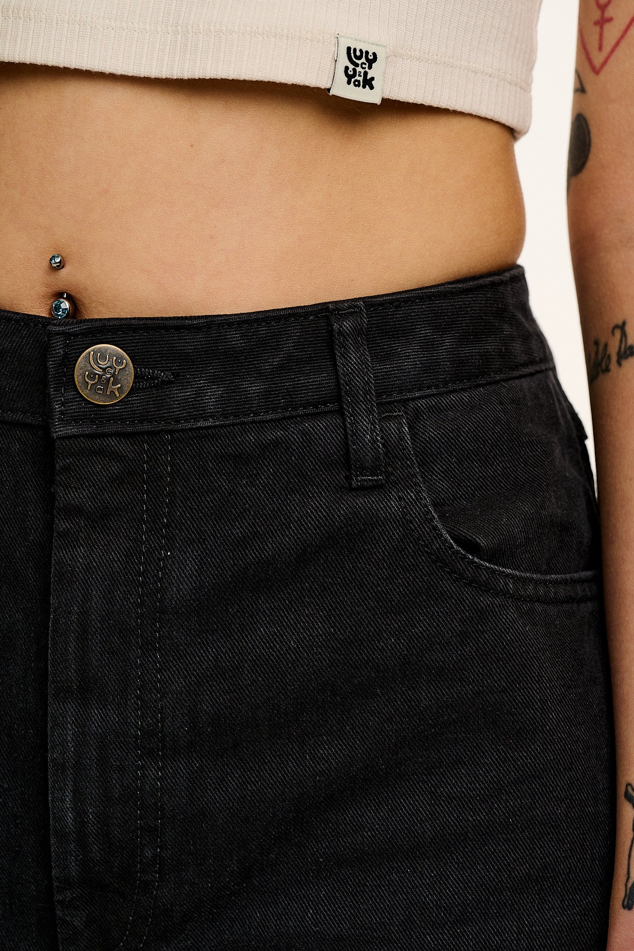 Jenny - Wide Leg Cotton & Linen Dungaree in Midnight Black