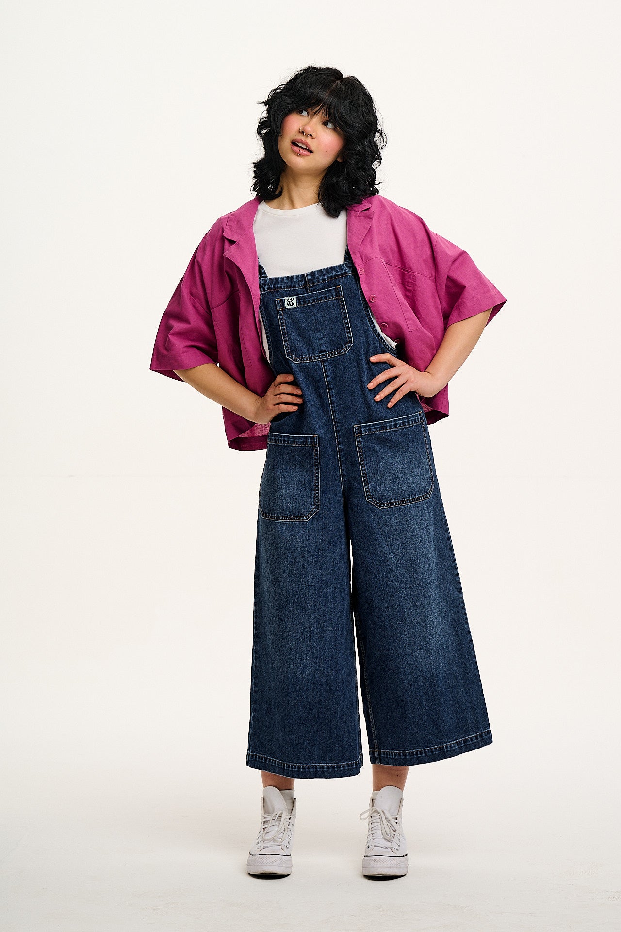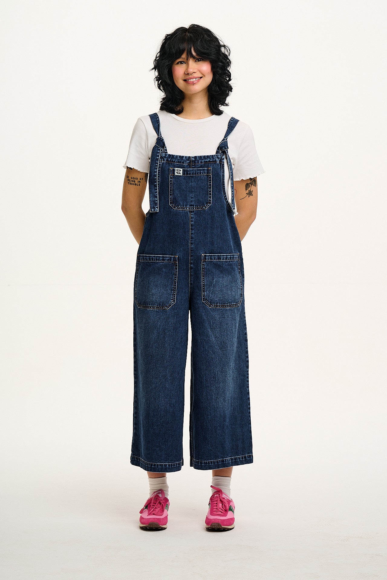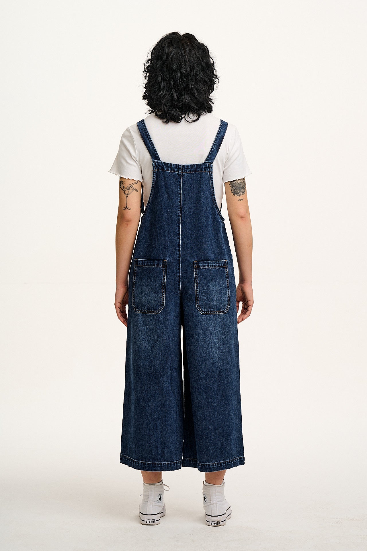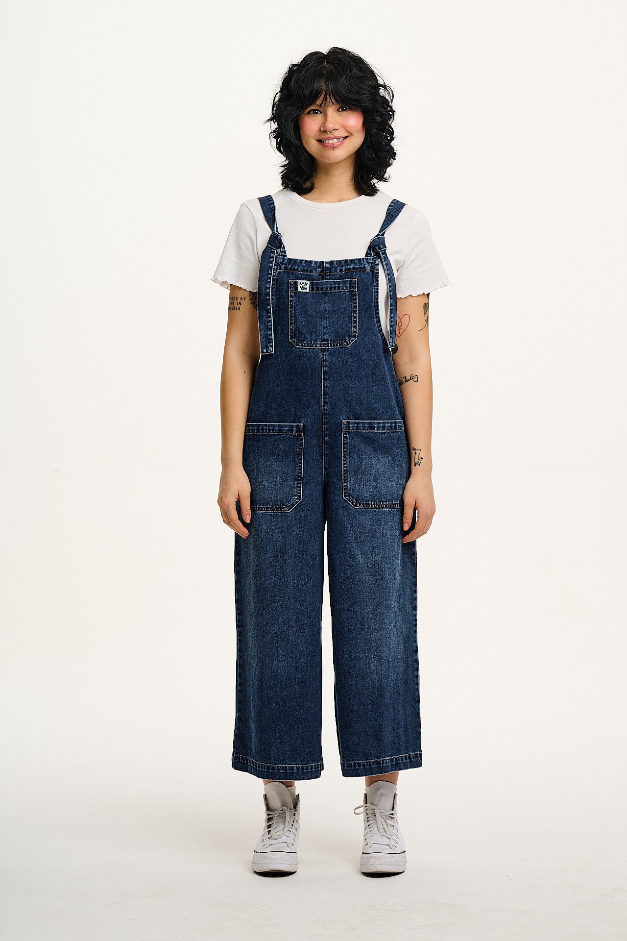 Jenny - Wide Leg Denim Dungarees in Vintage Wash Blue