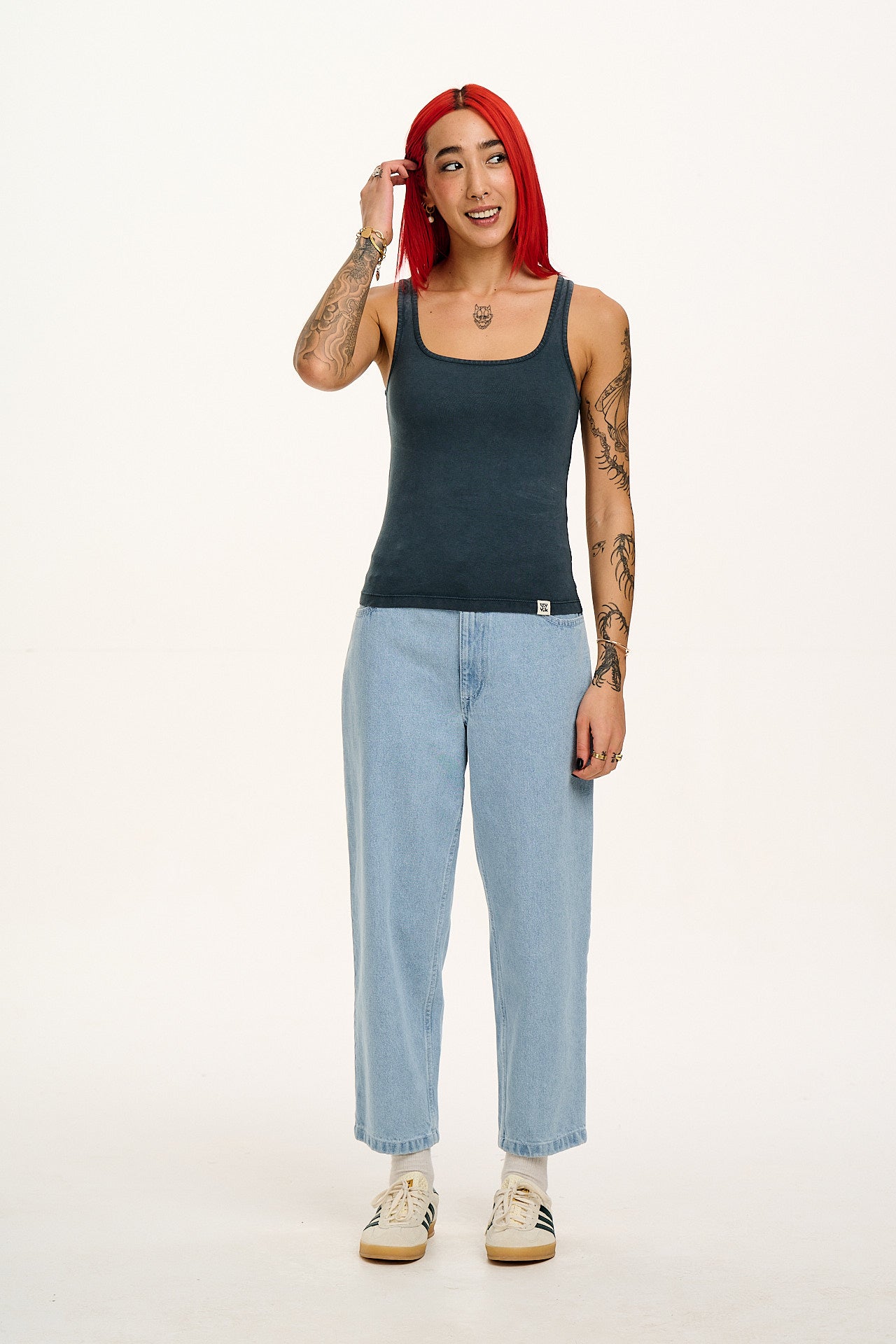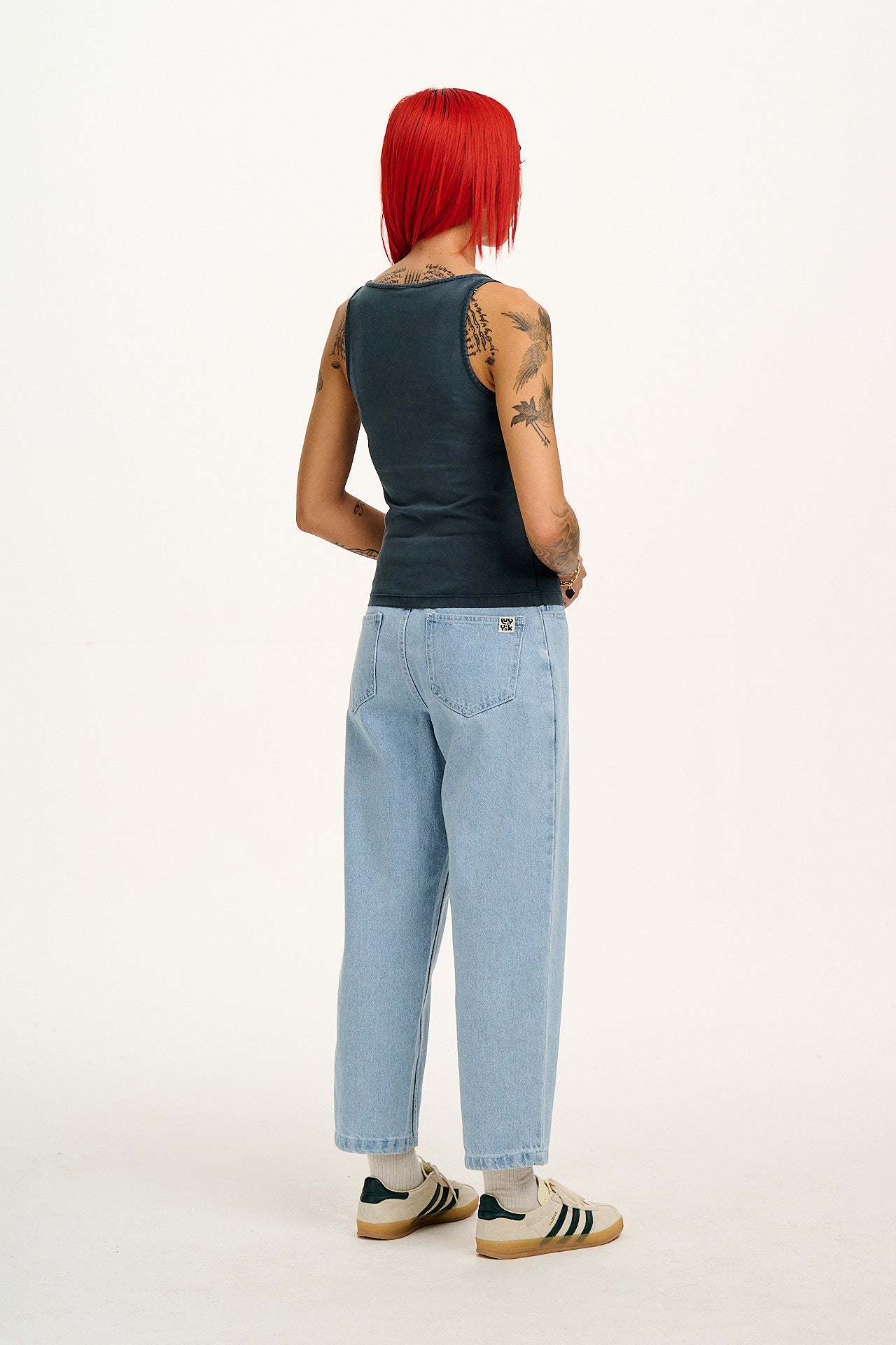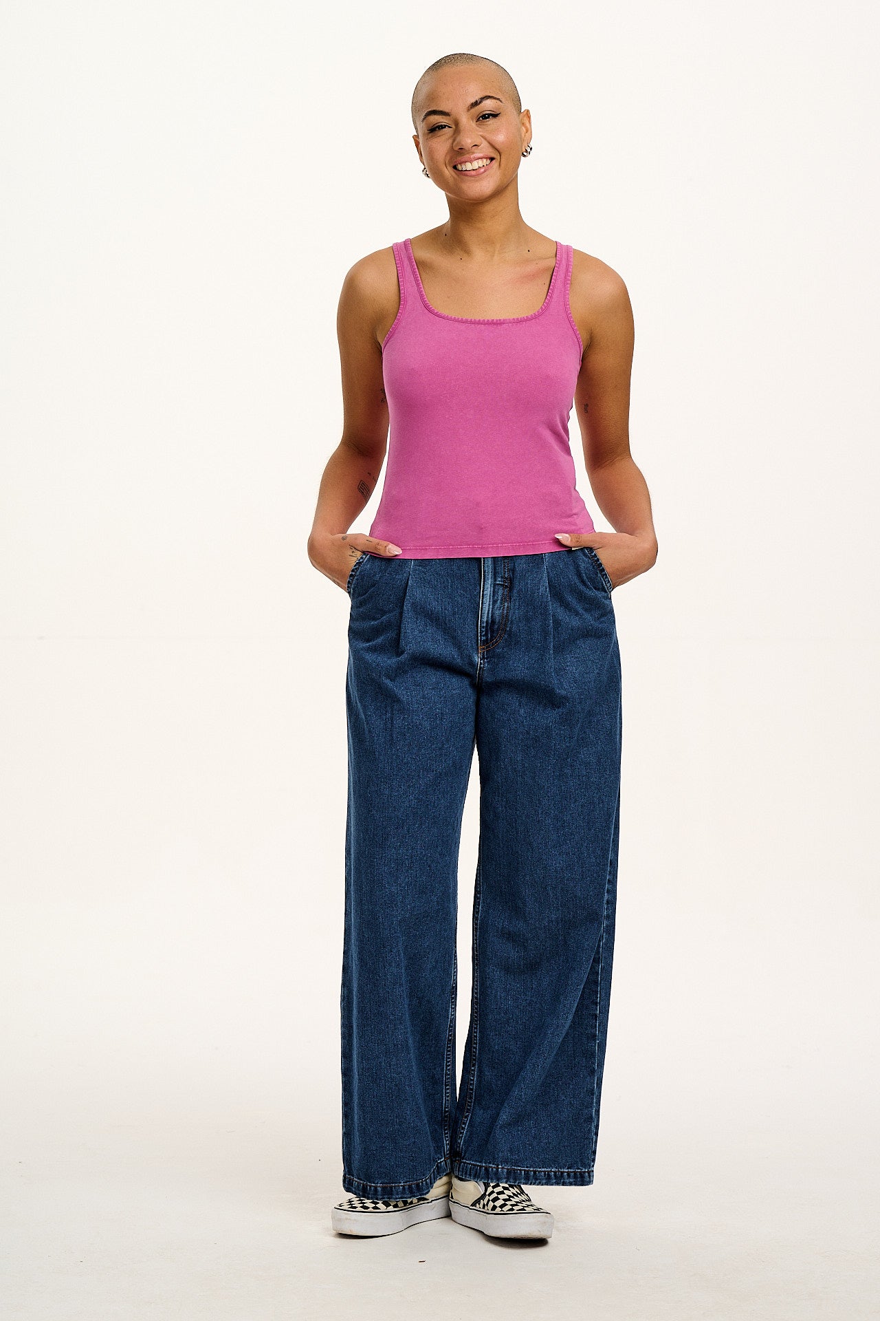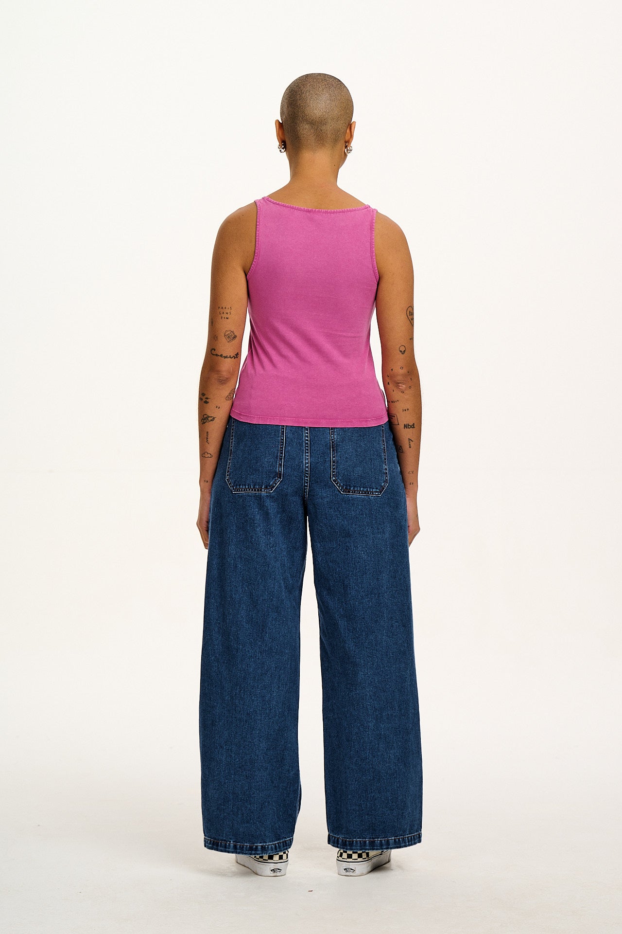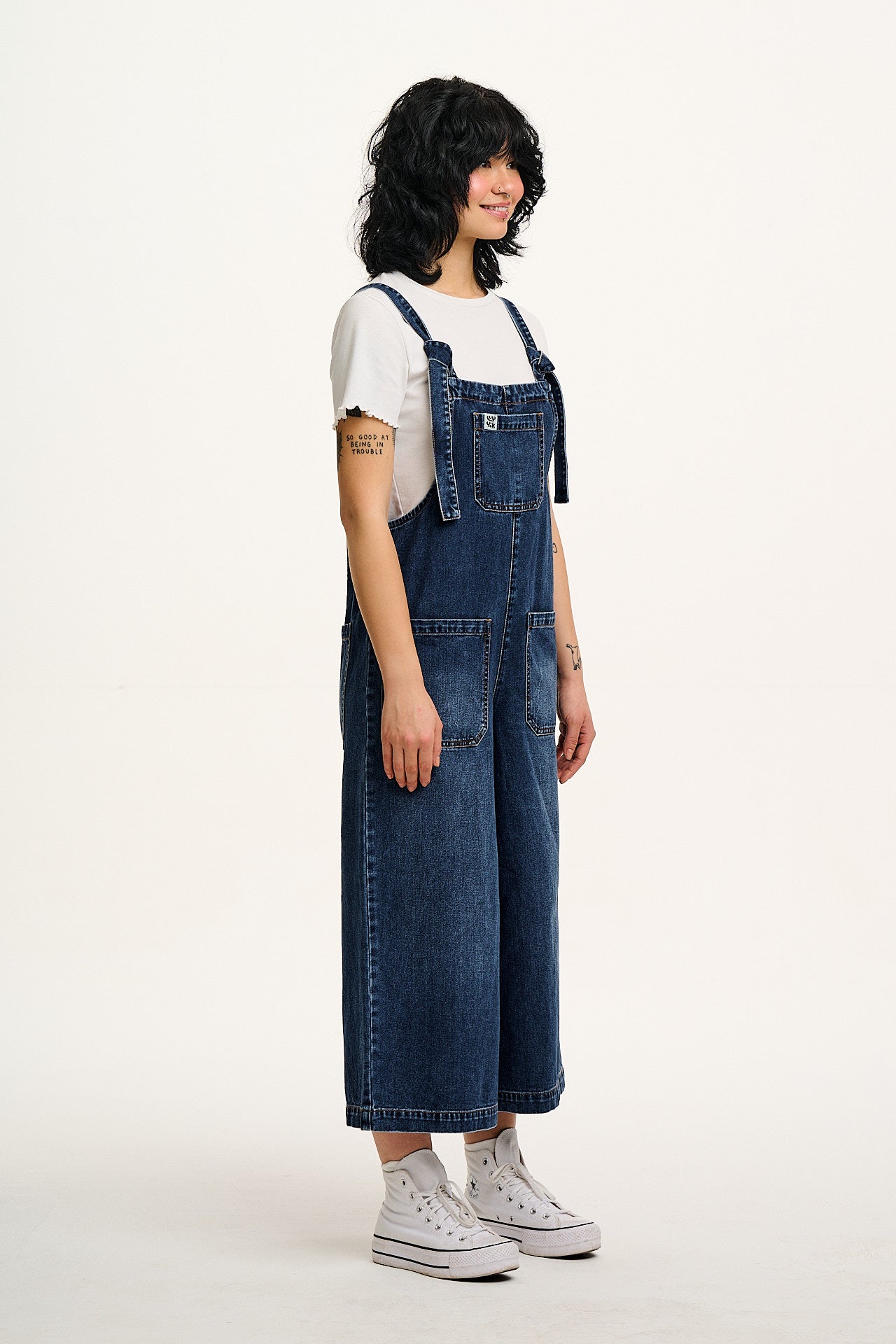 Jenny - Wide Leg Denim Dungarees in Vintage Wash Blue