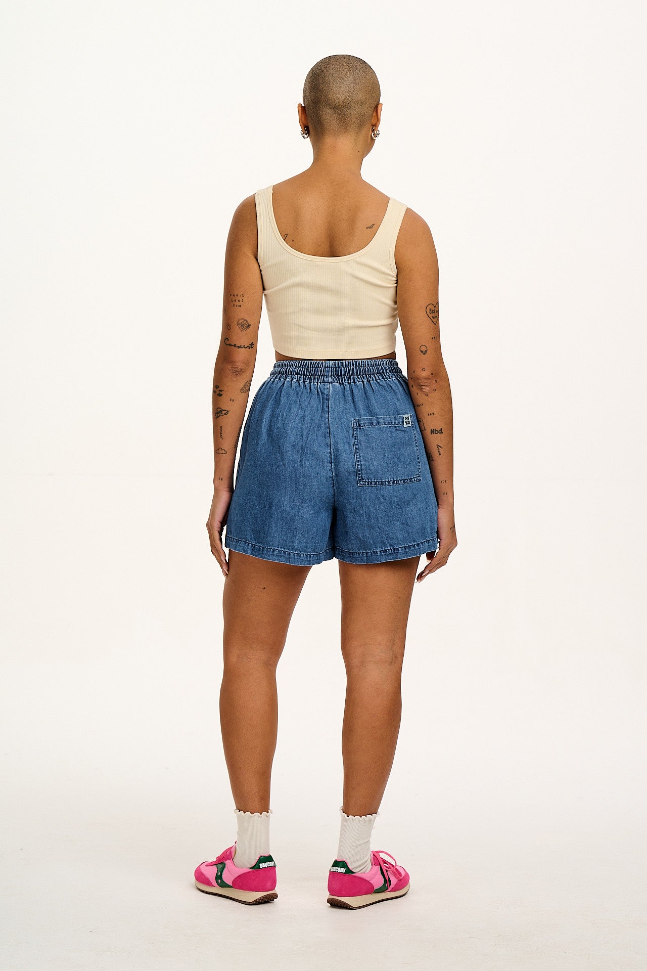 Charlie - Cotton & Hemp Shorts in Mid Wash Blue