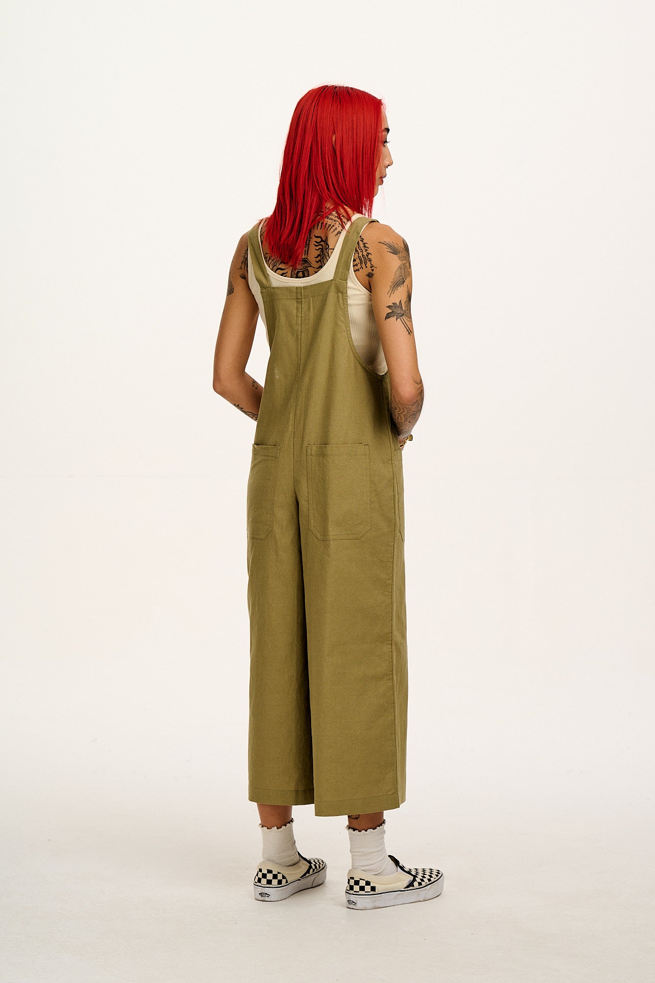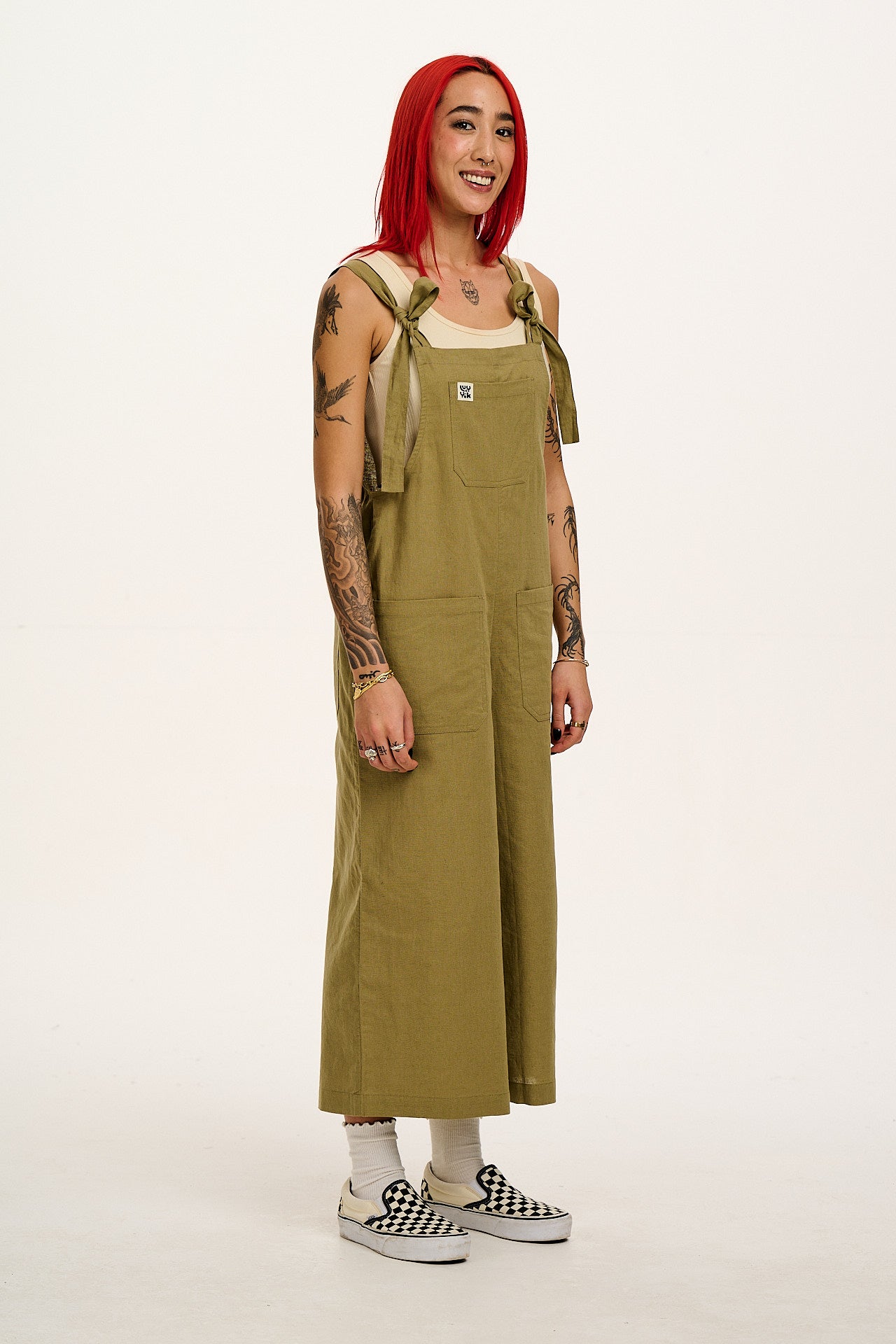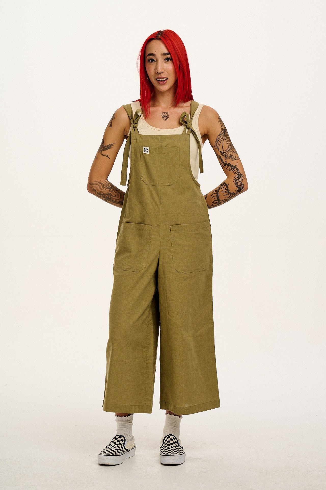 Jenny - Wide Leg Cotton & Linen Dungaree in Herb Garden Green