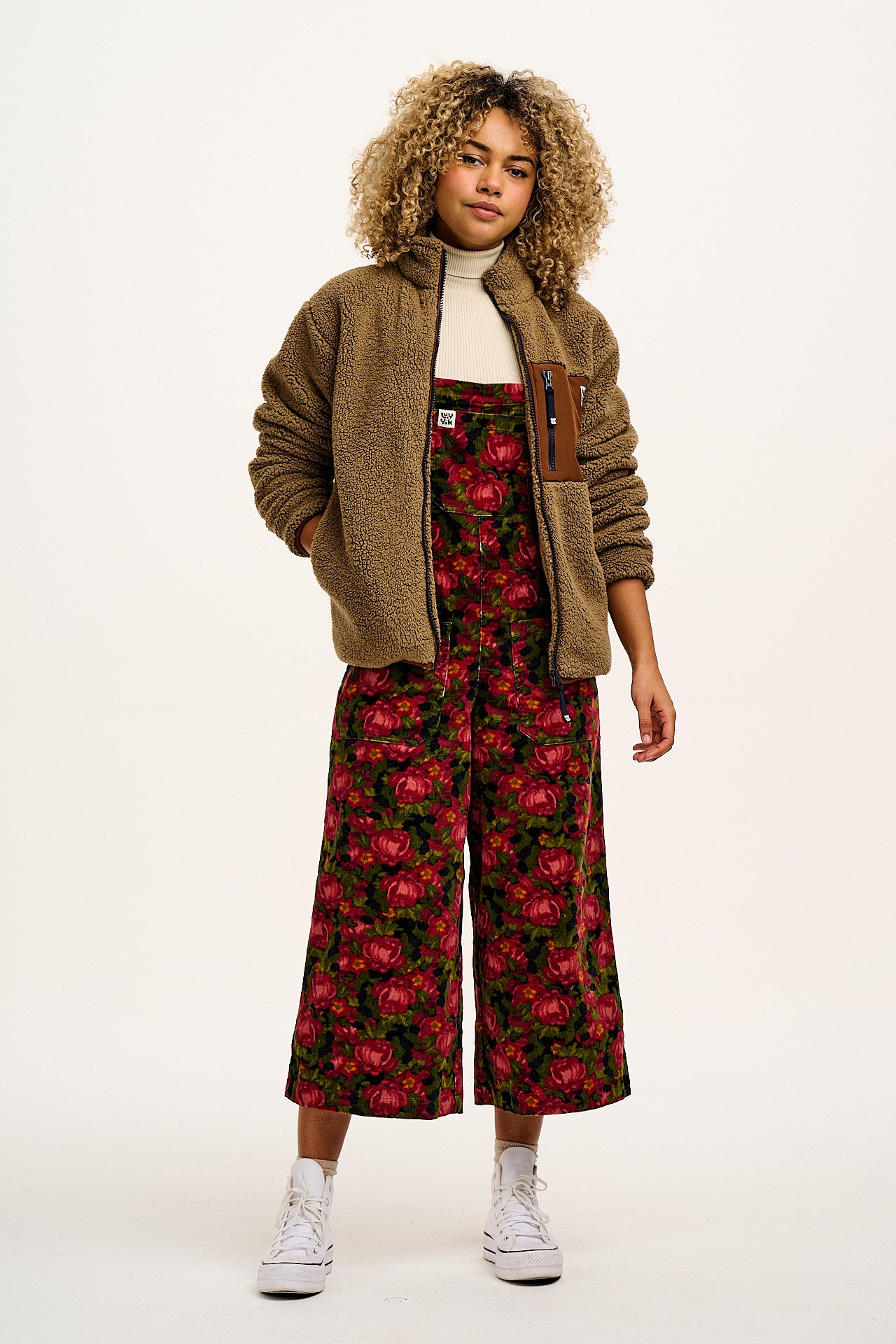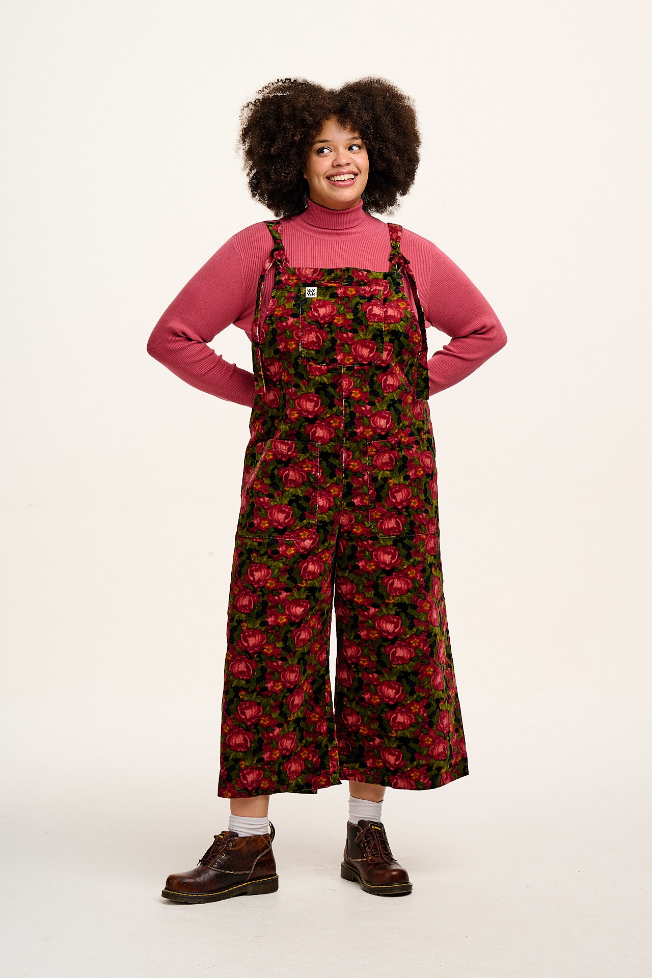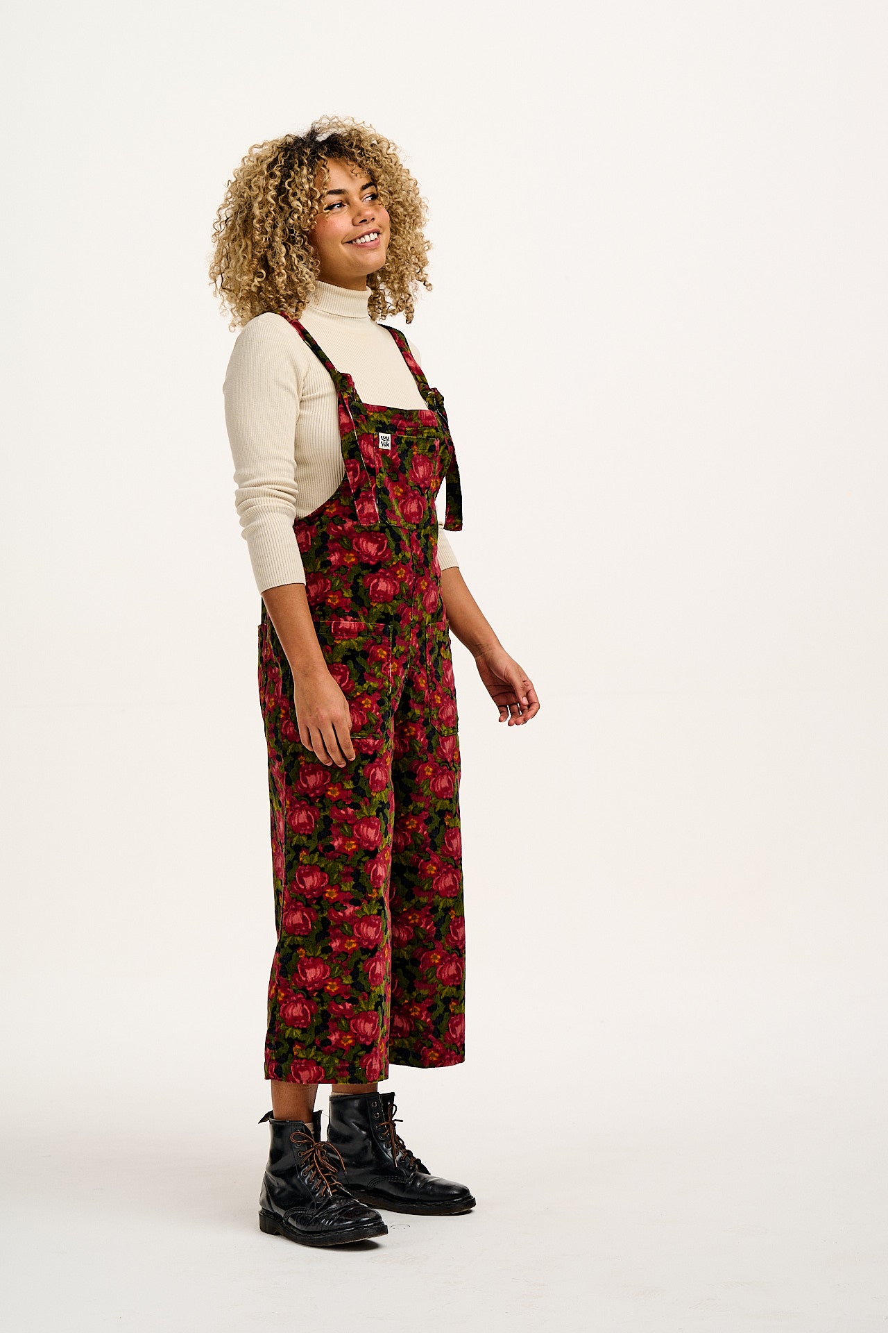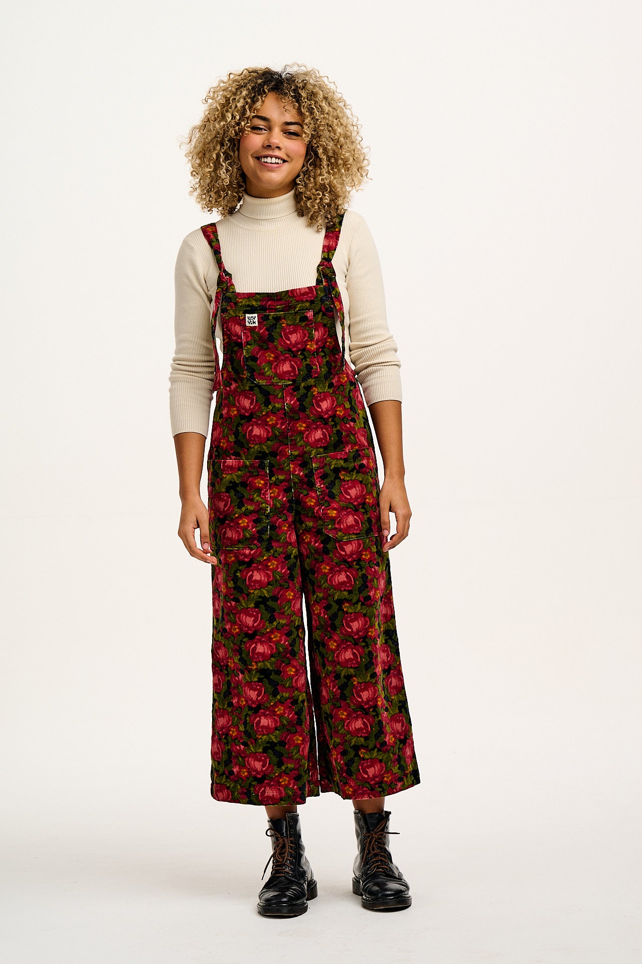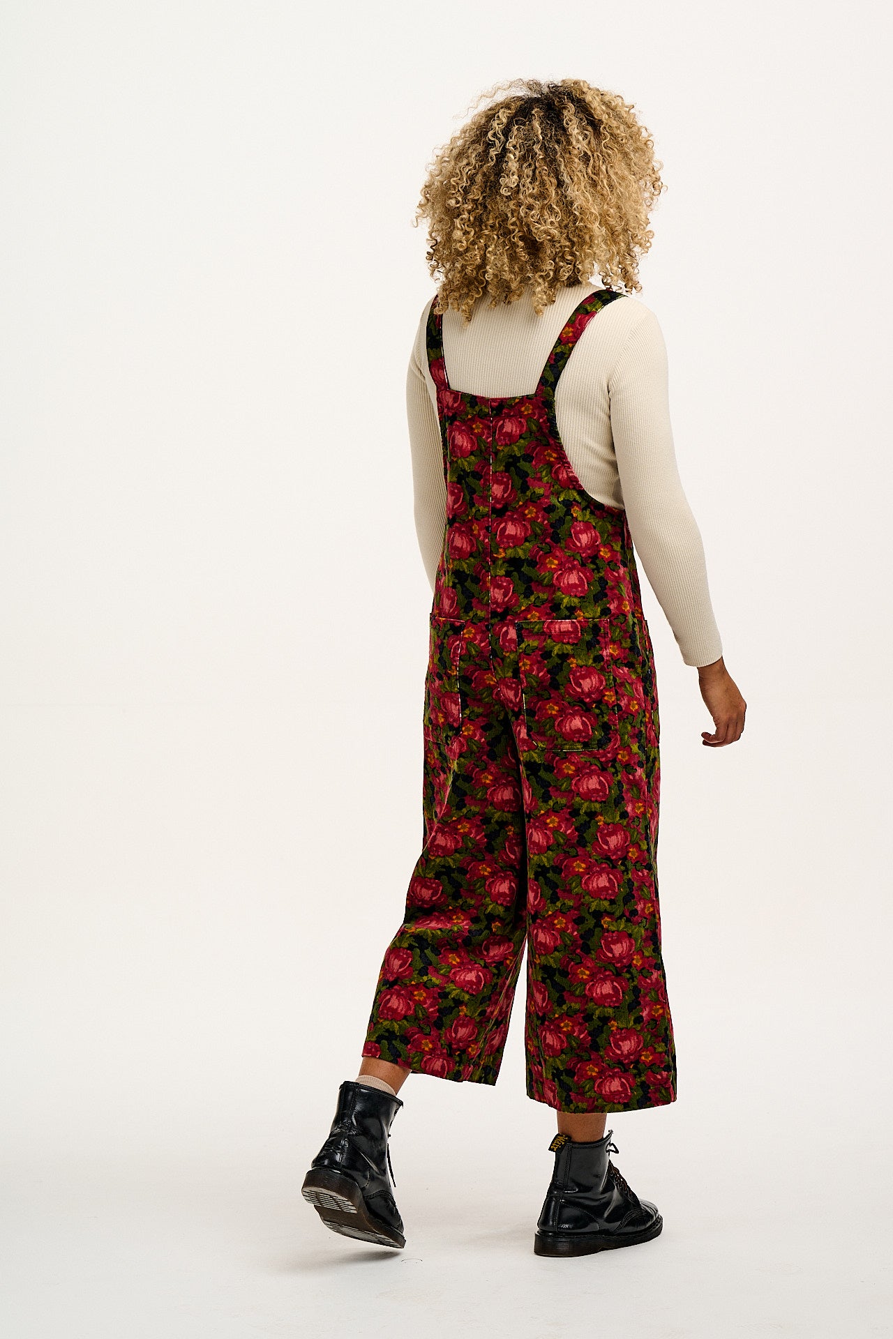 Jenny - Wide Leg Corduroy Dungarees in Rosetta Print