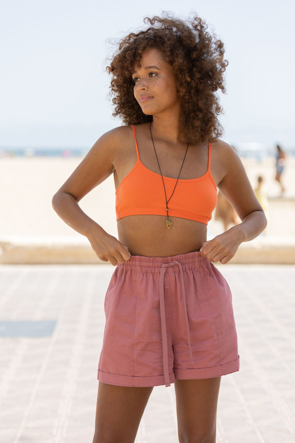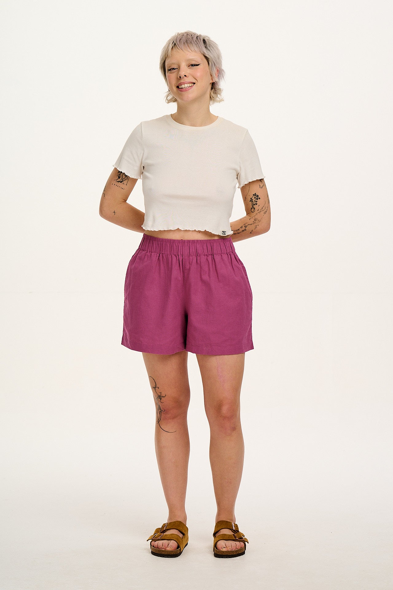 Jessie - Cotton & Linen Shorts in Dahlia Pink