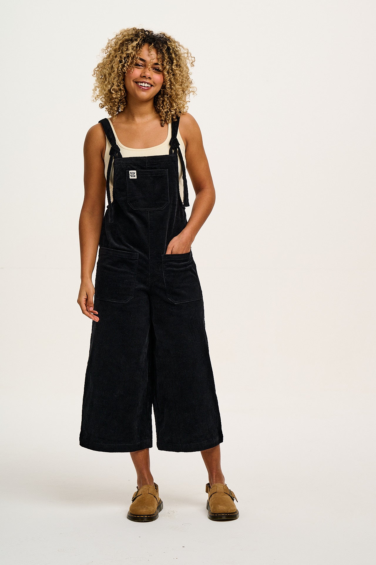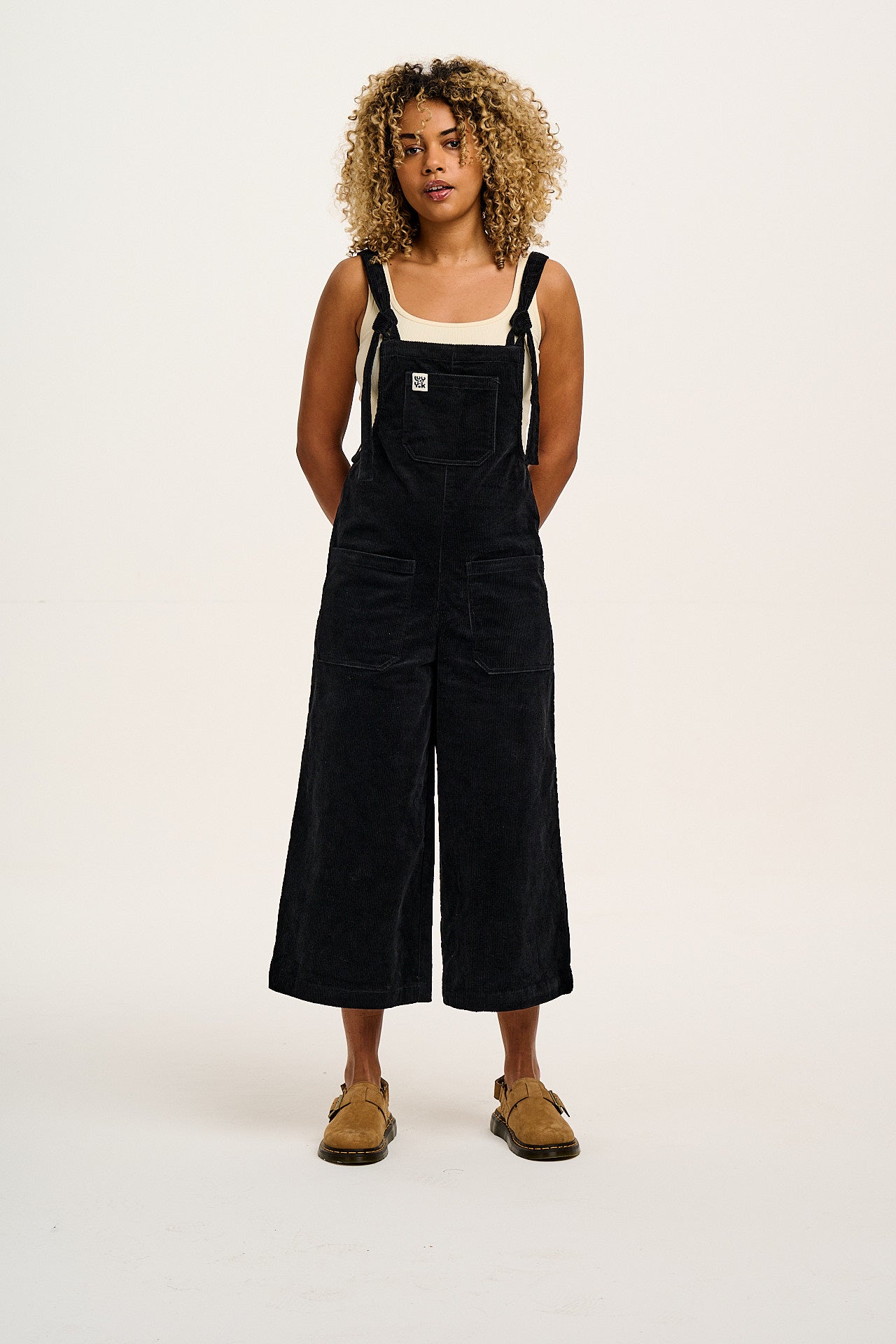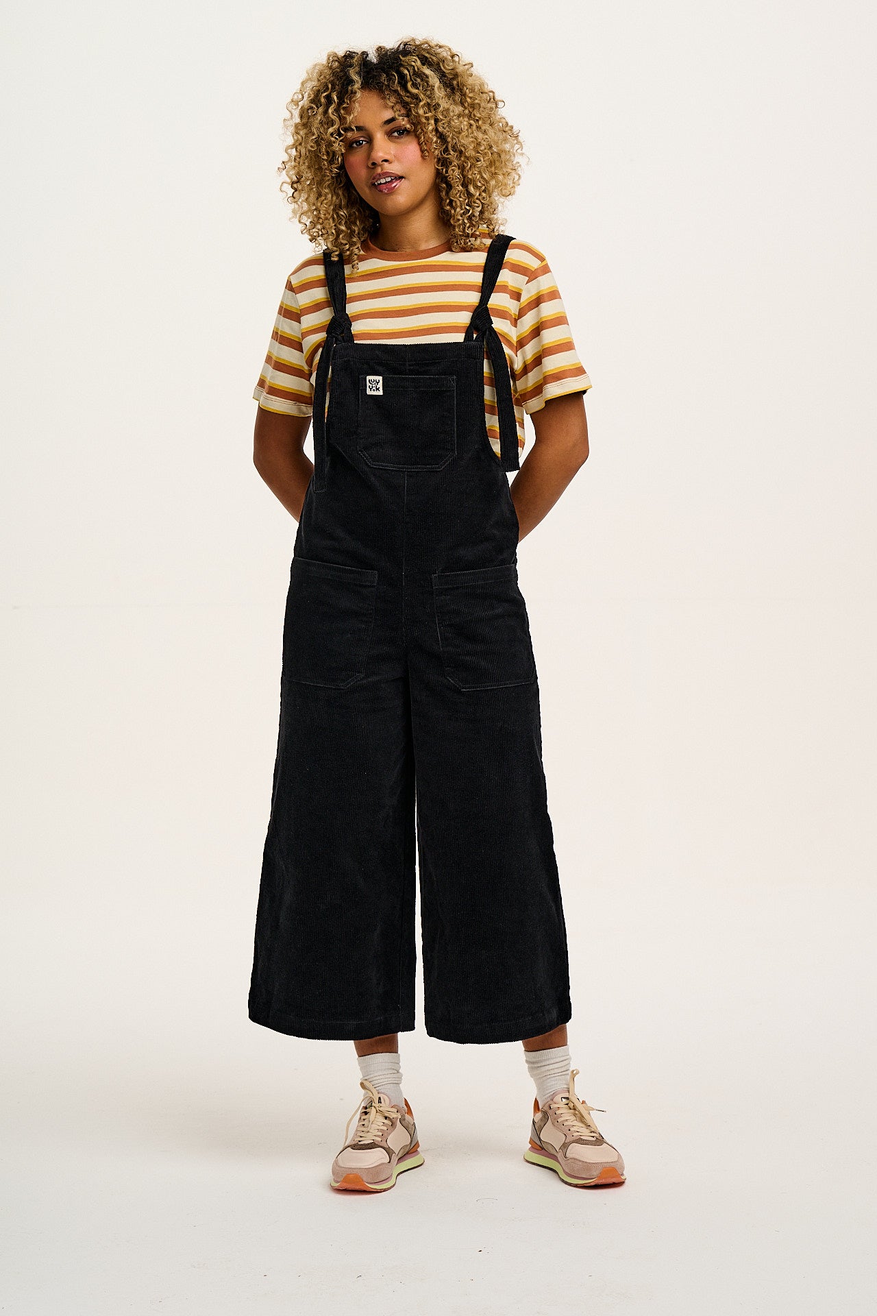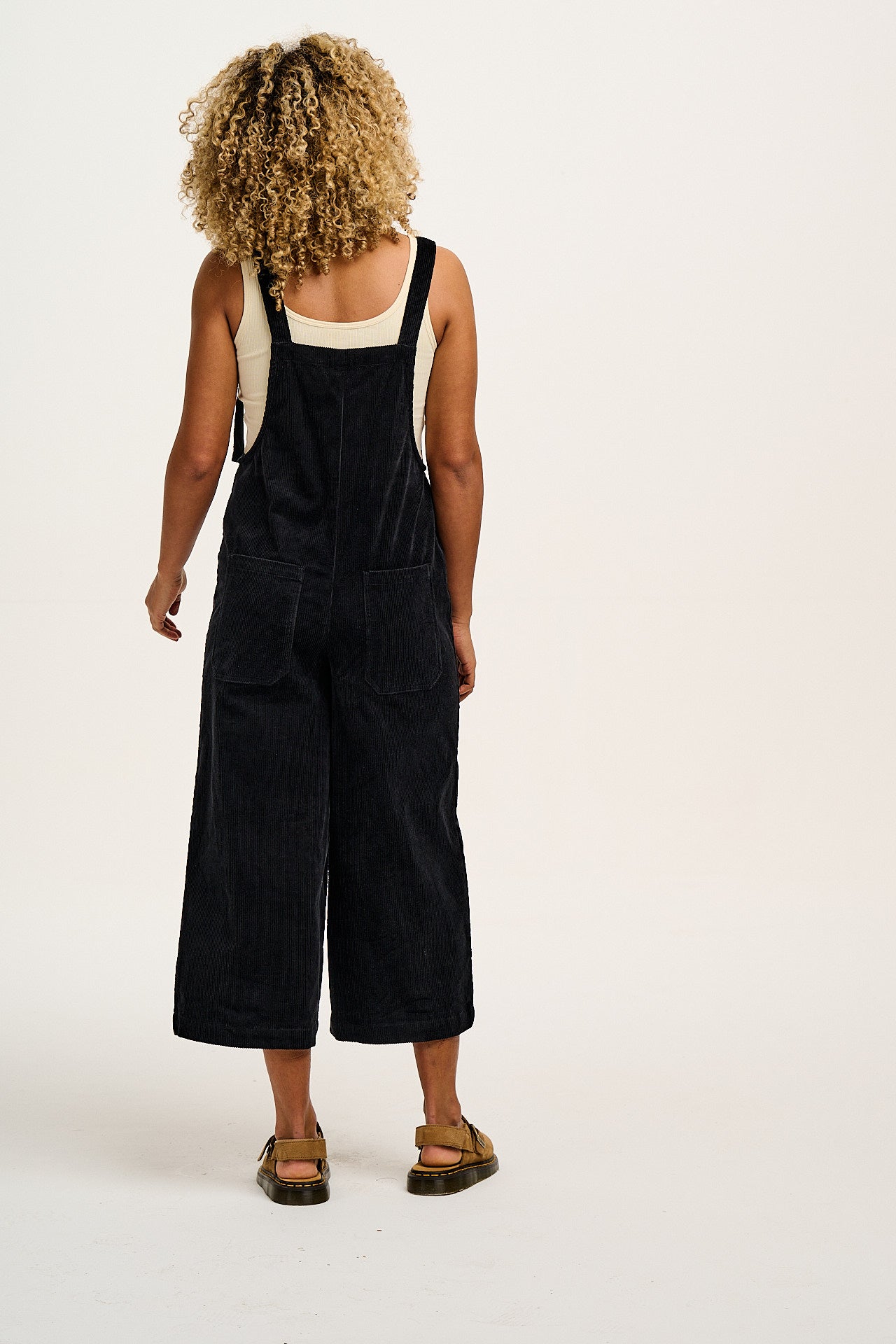 Jenny - Wide Leg Corduroy Dungarees in Black