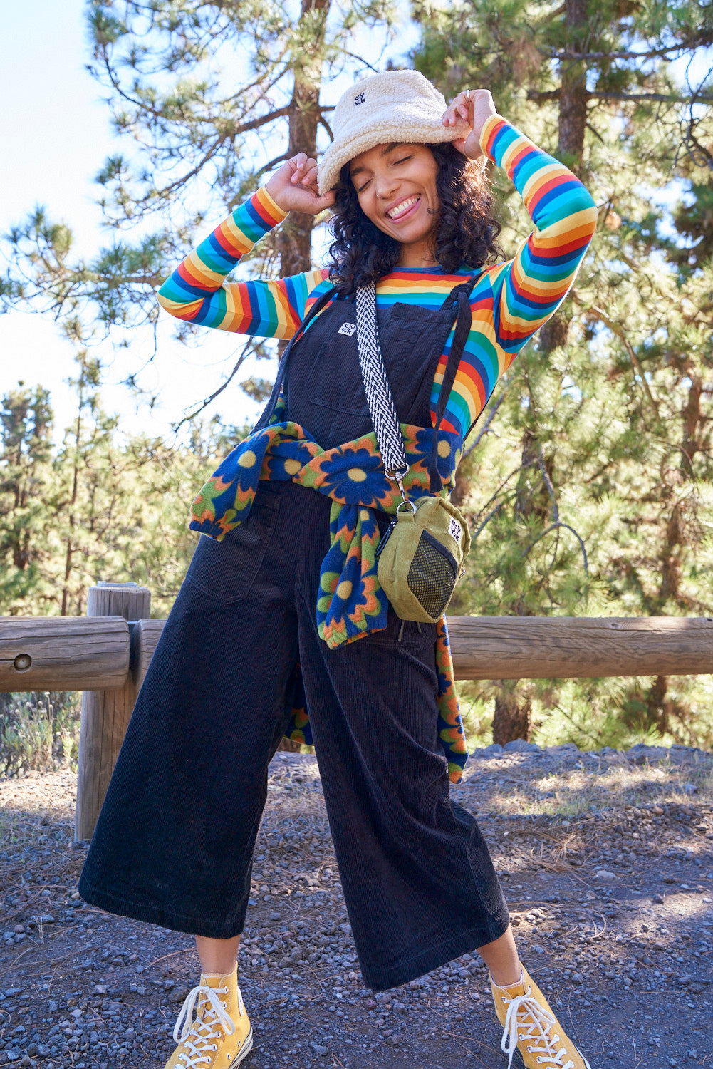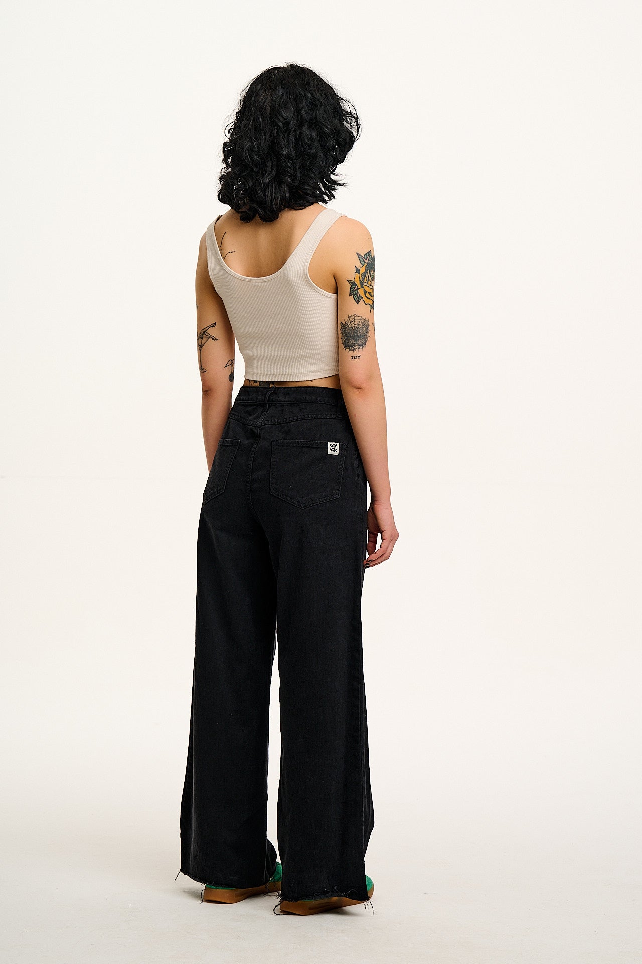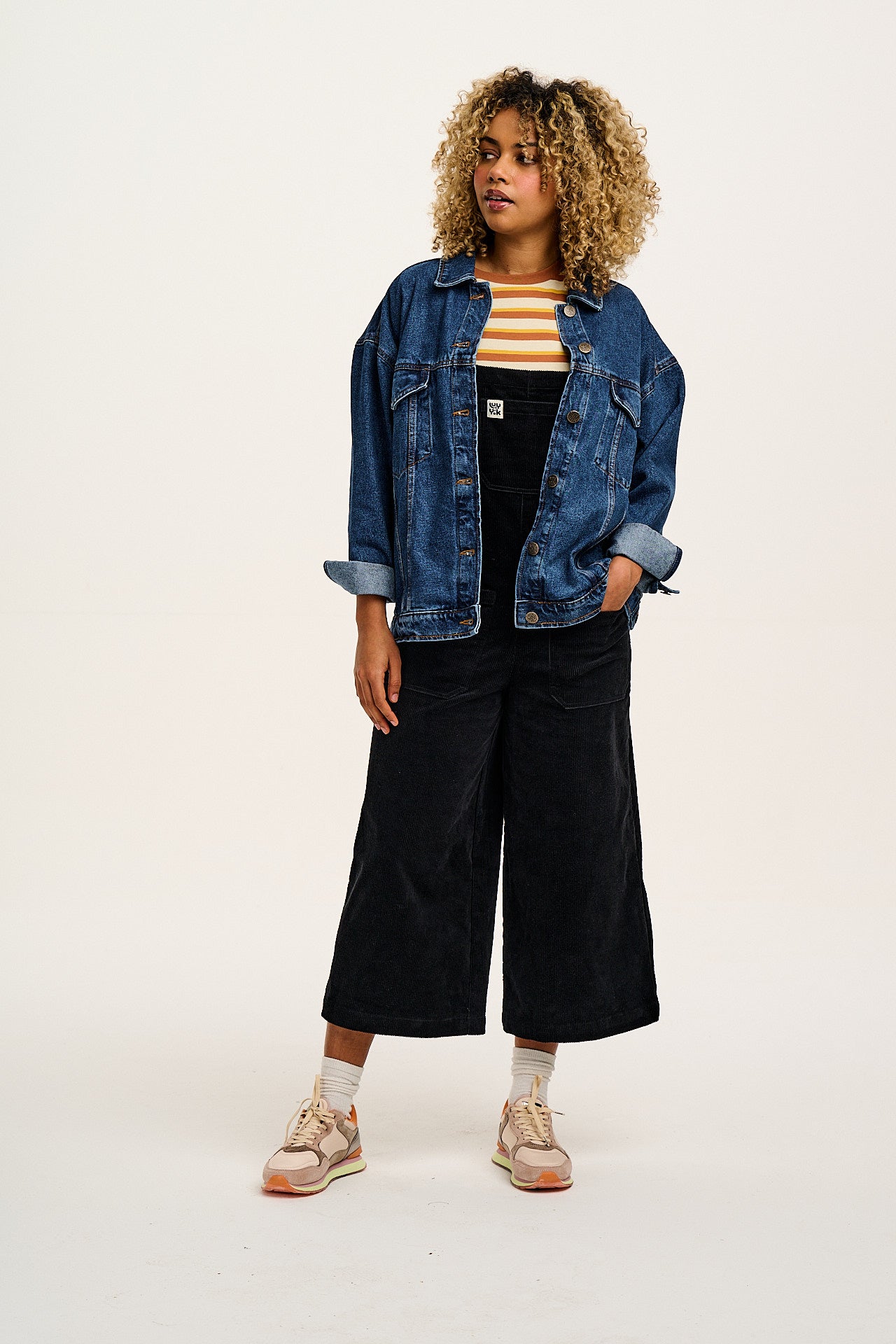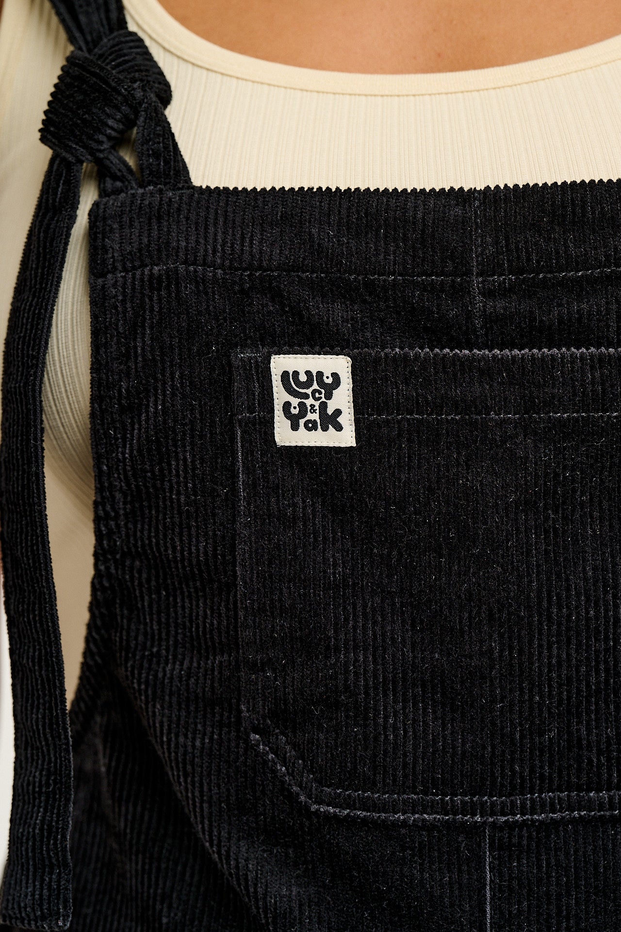 Jenny - Wide Leg Corduroy Dungarees in Black