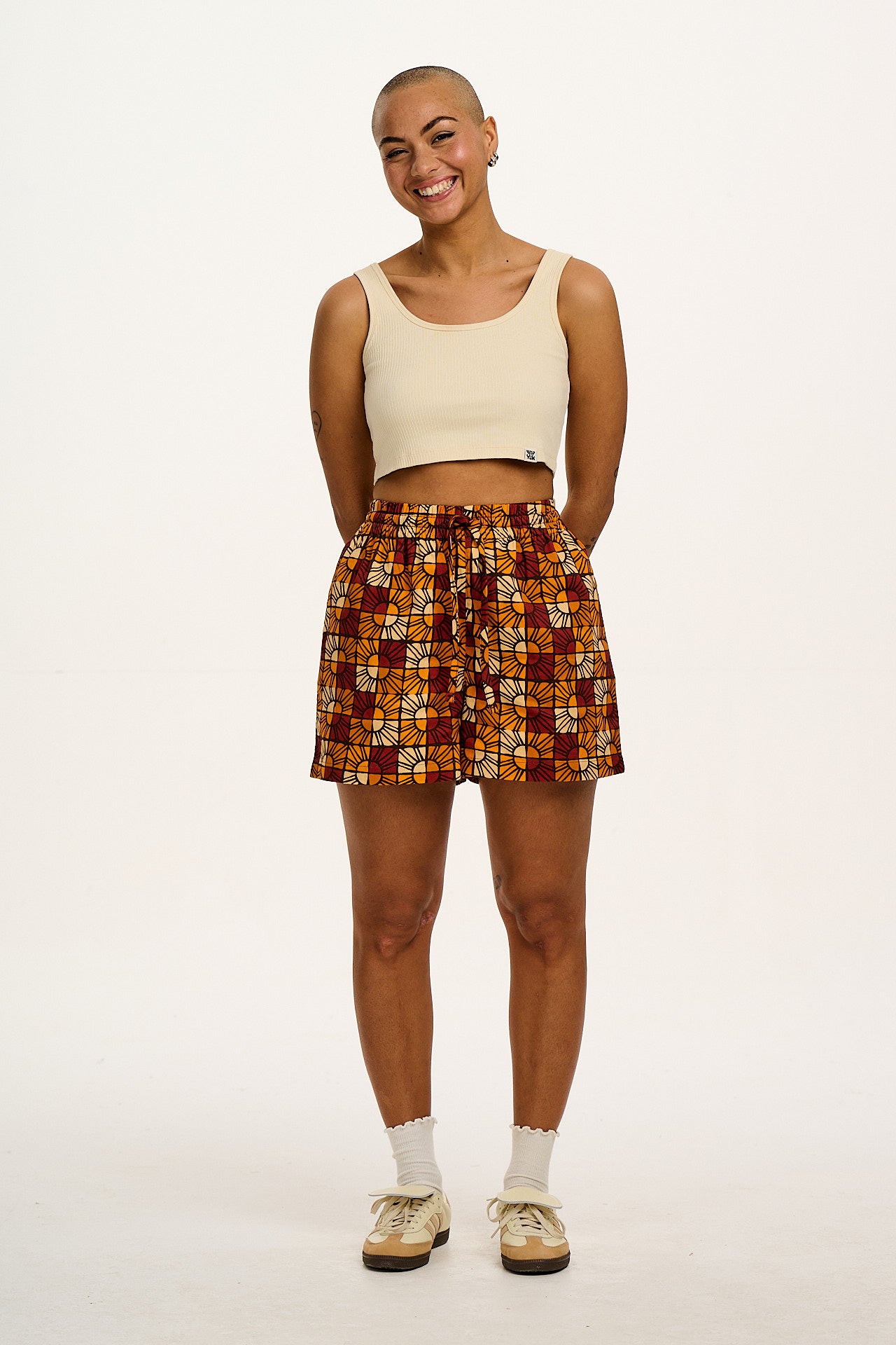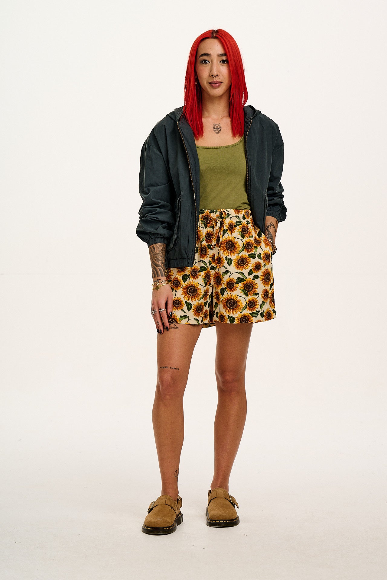 Charlie - Cotton Shorts in Cream Sunflower Print