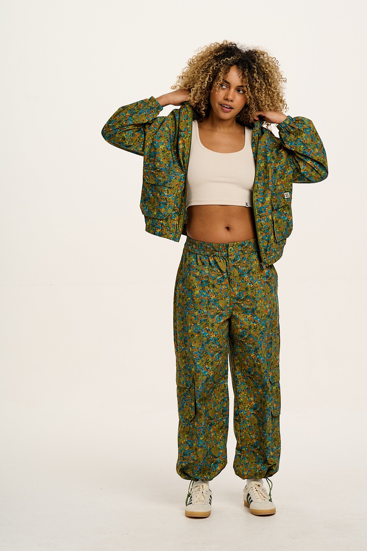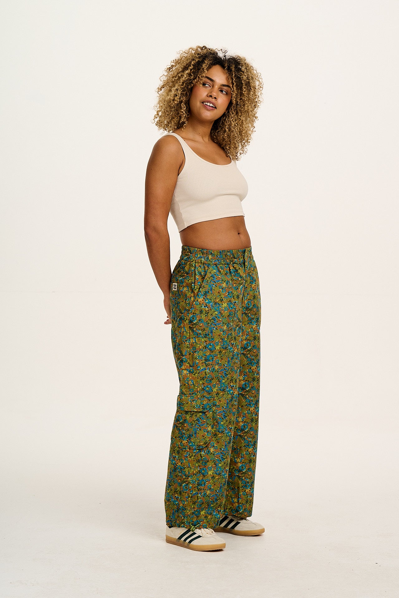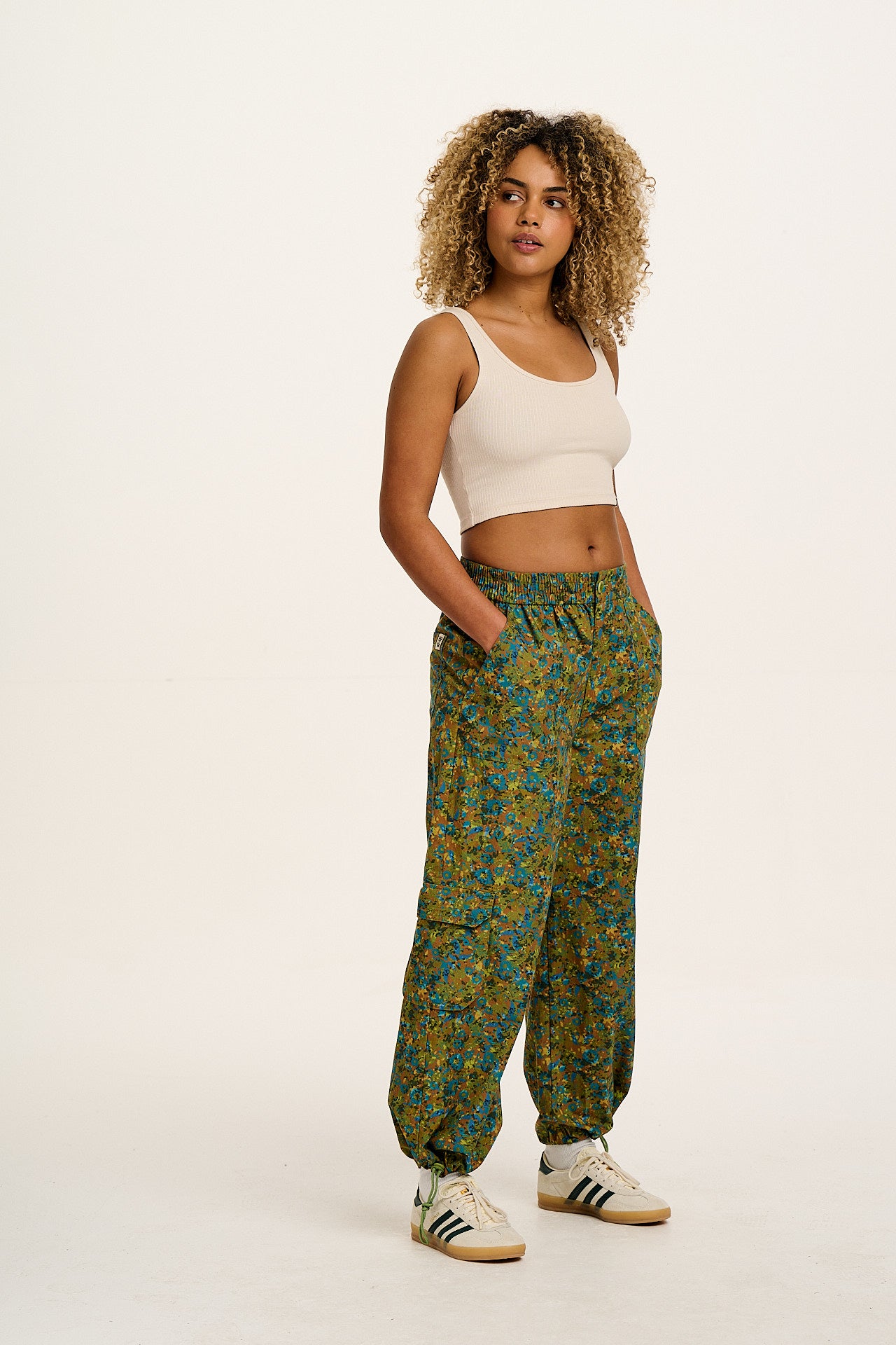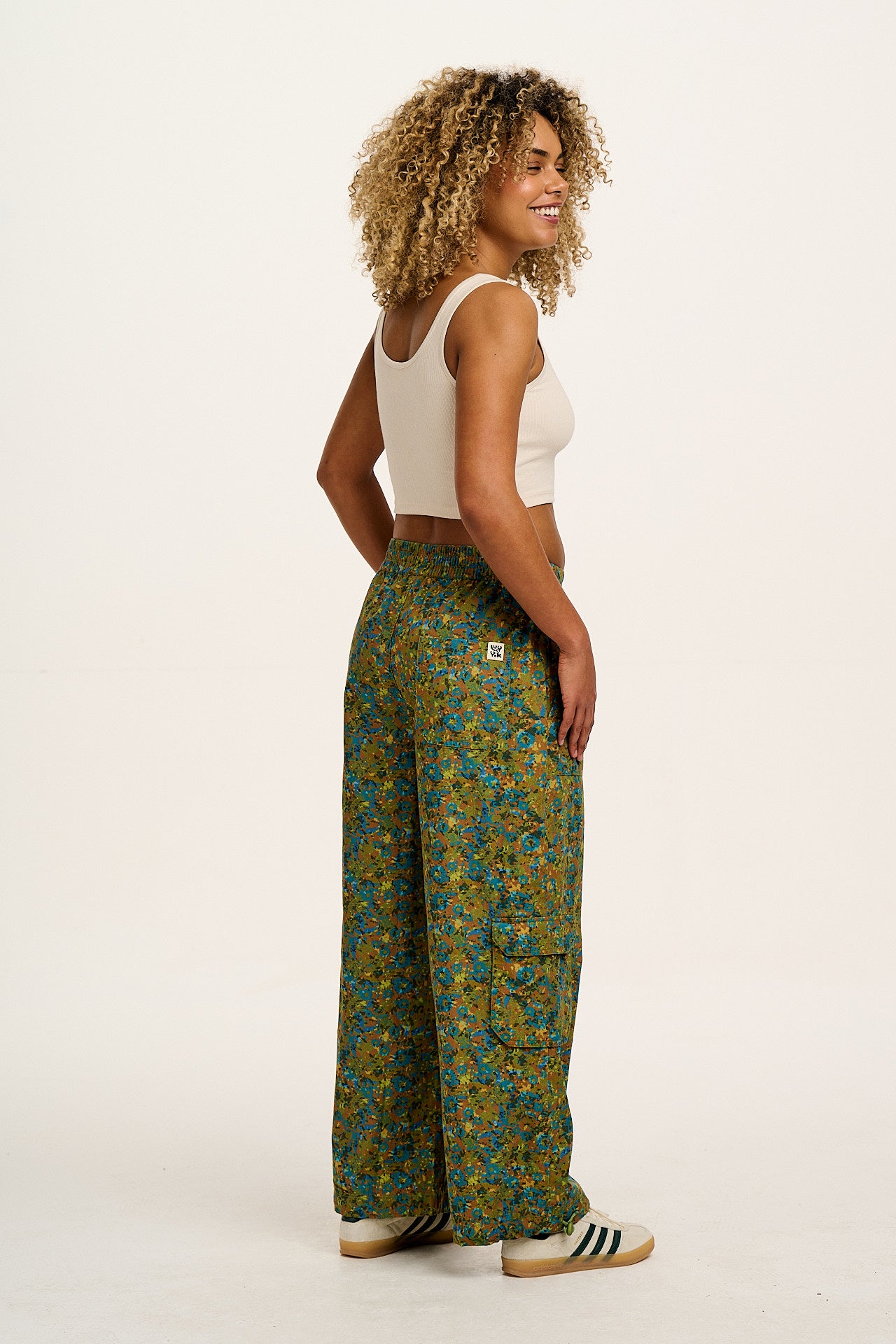 Caton - Cotton Cargos Trousers in Green Trix Floral Print