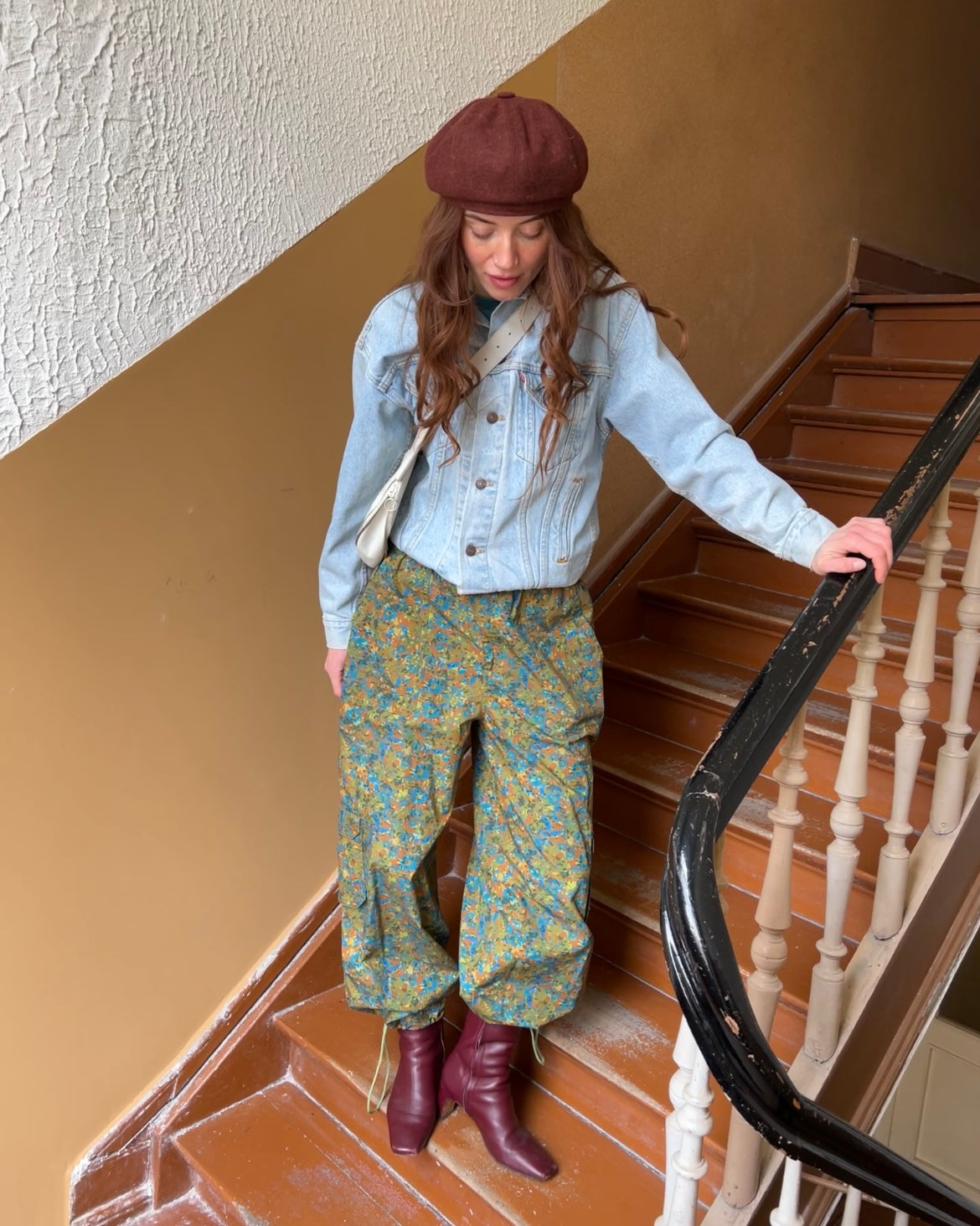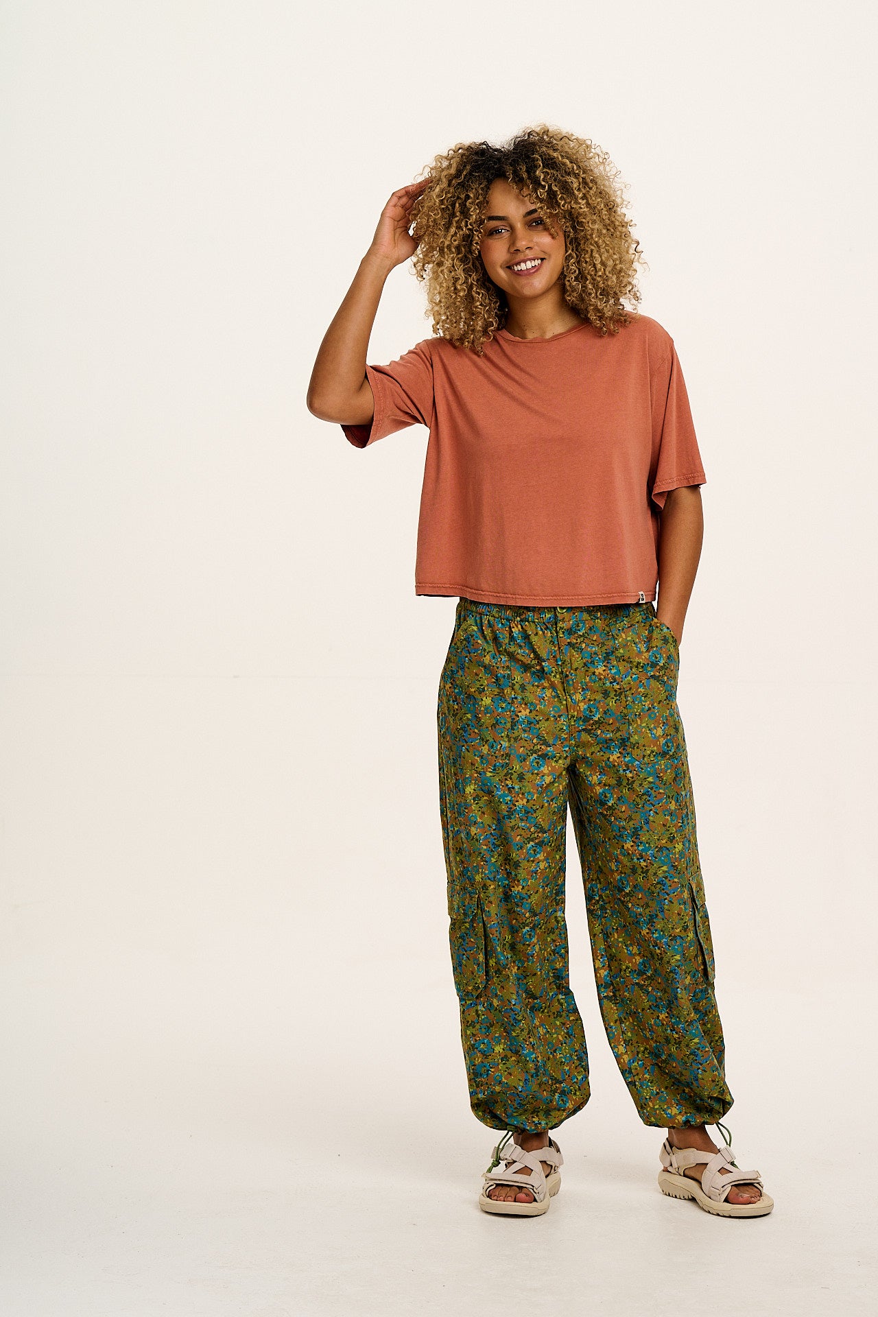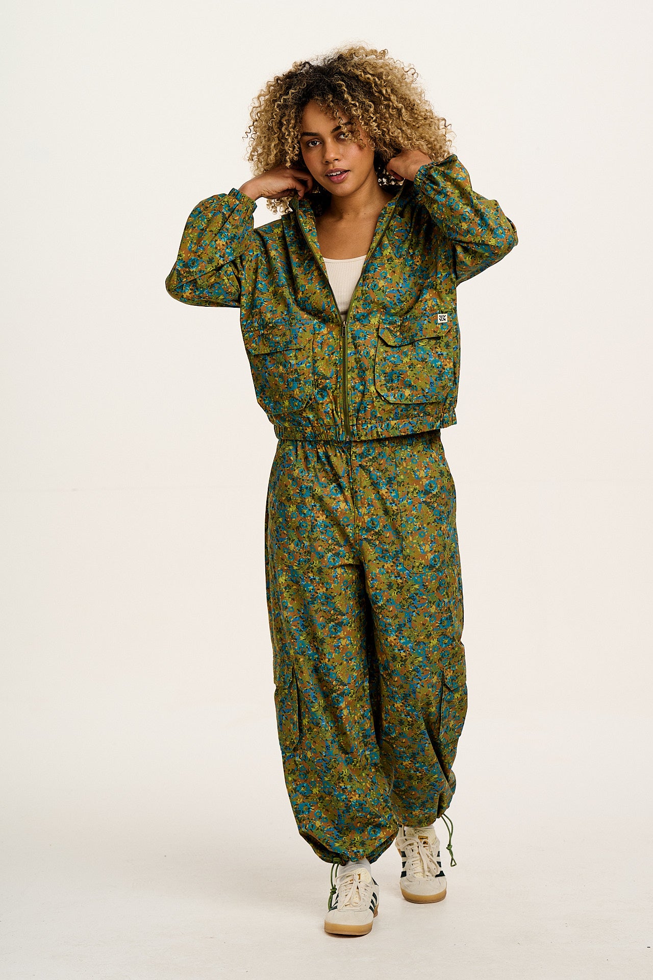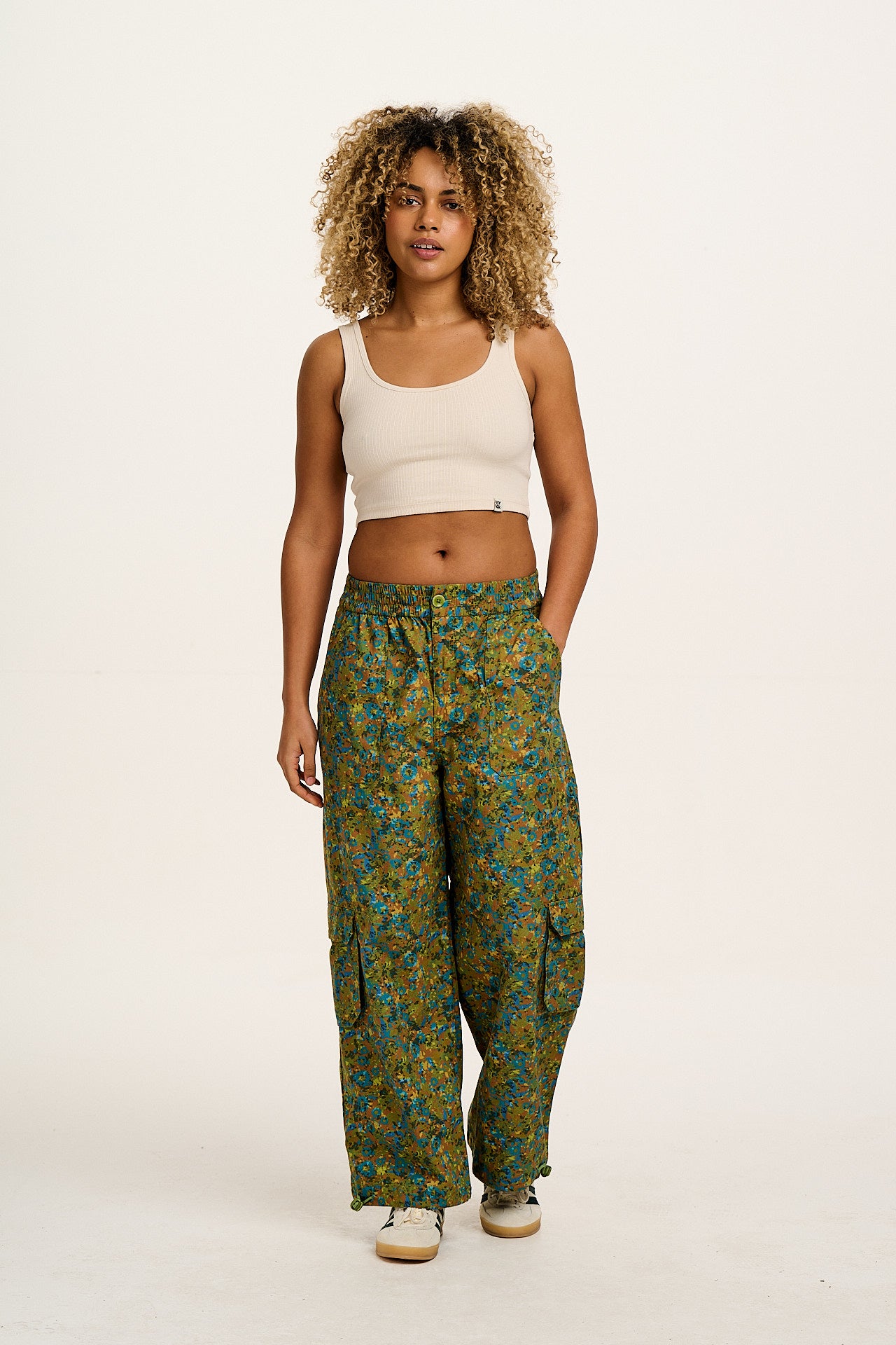 Caton - Cotton Cargos Trousers in Green Trix Floral Print