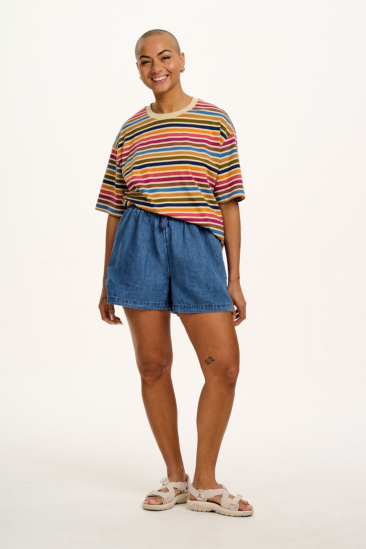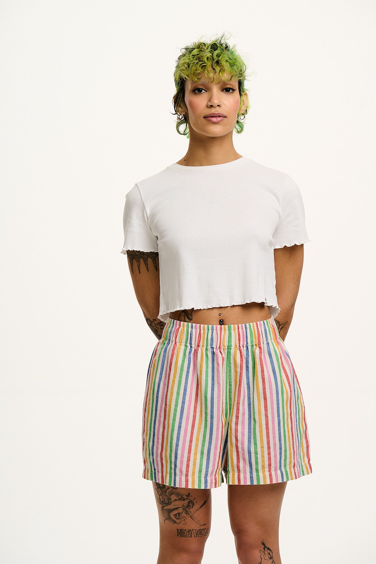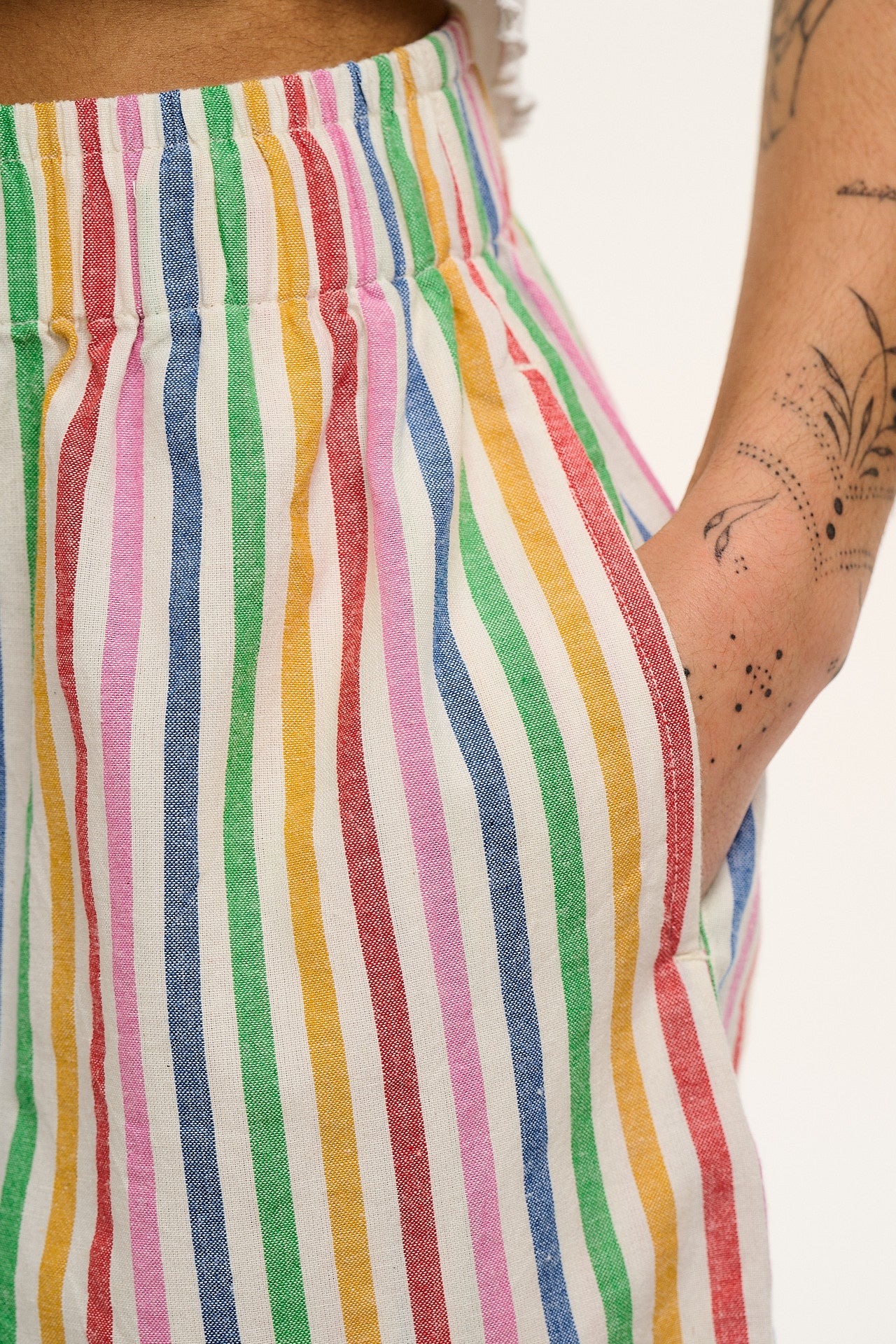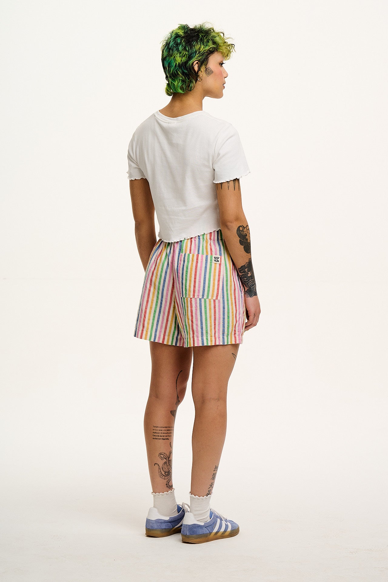 Jessie - Cotton & Linen Shorts in Rainbow Stripe