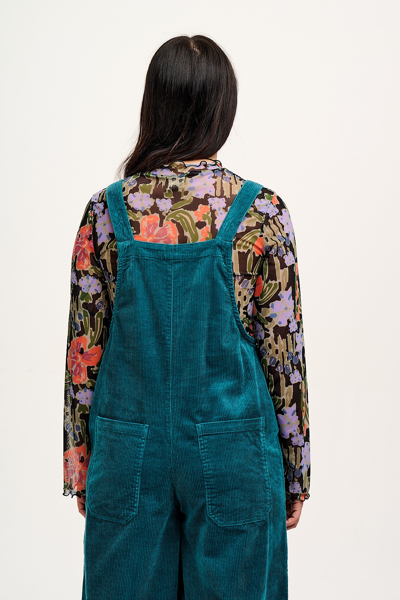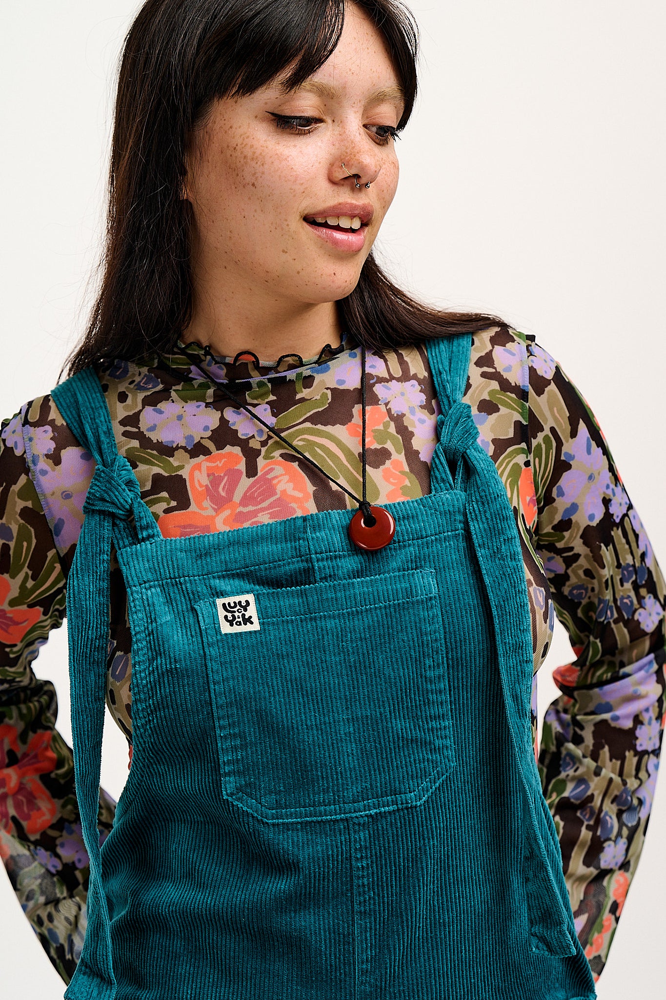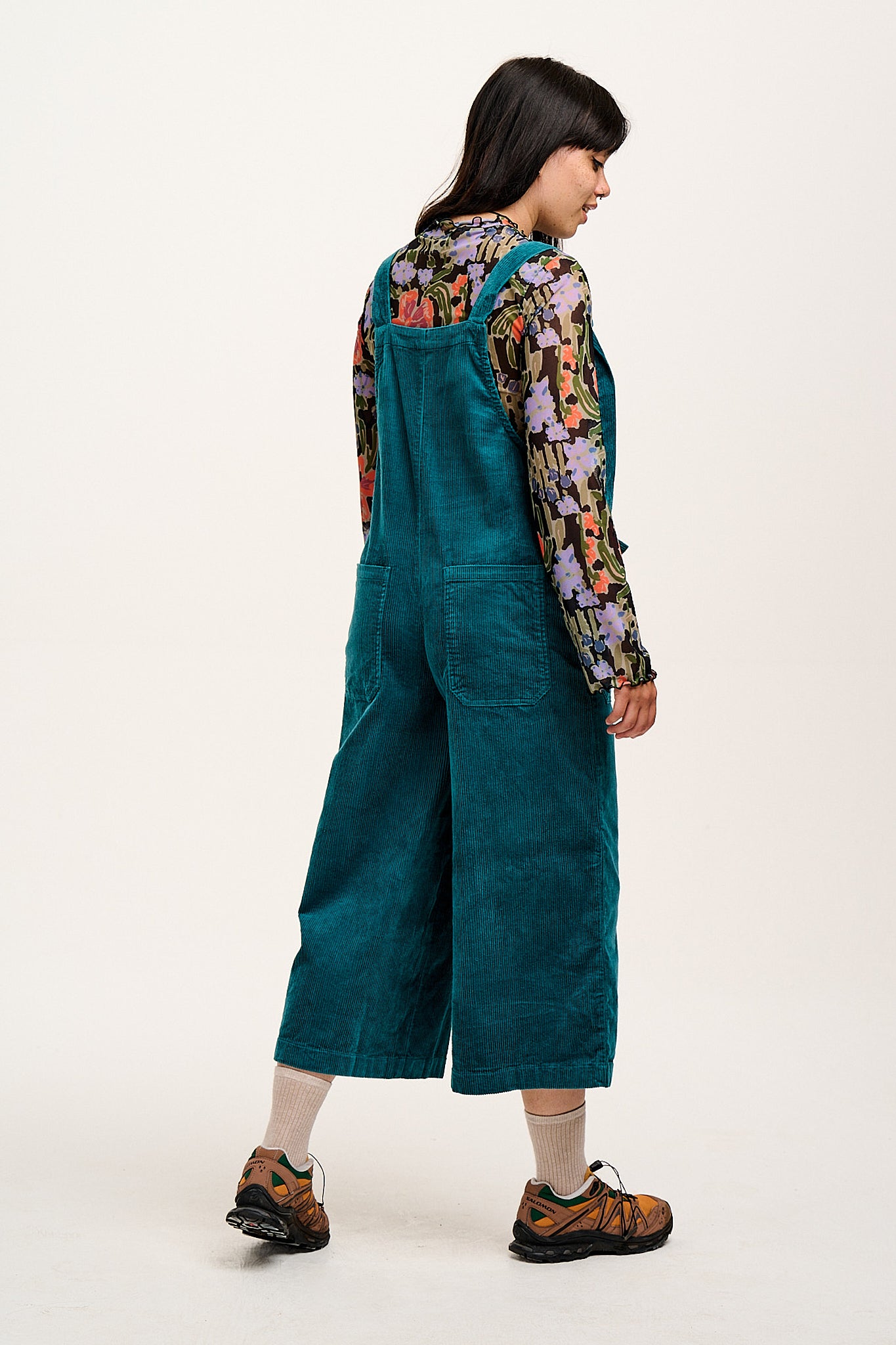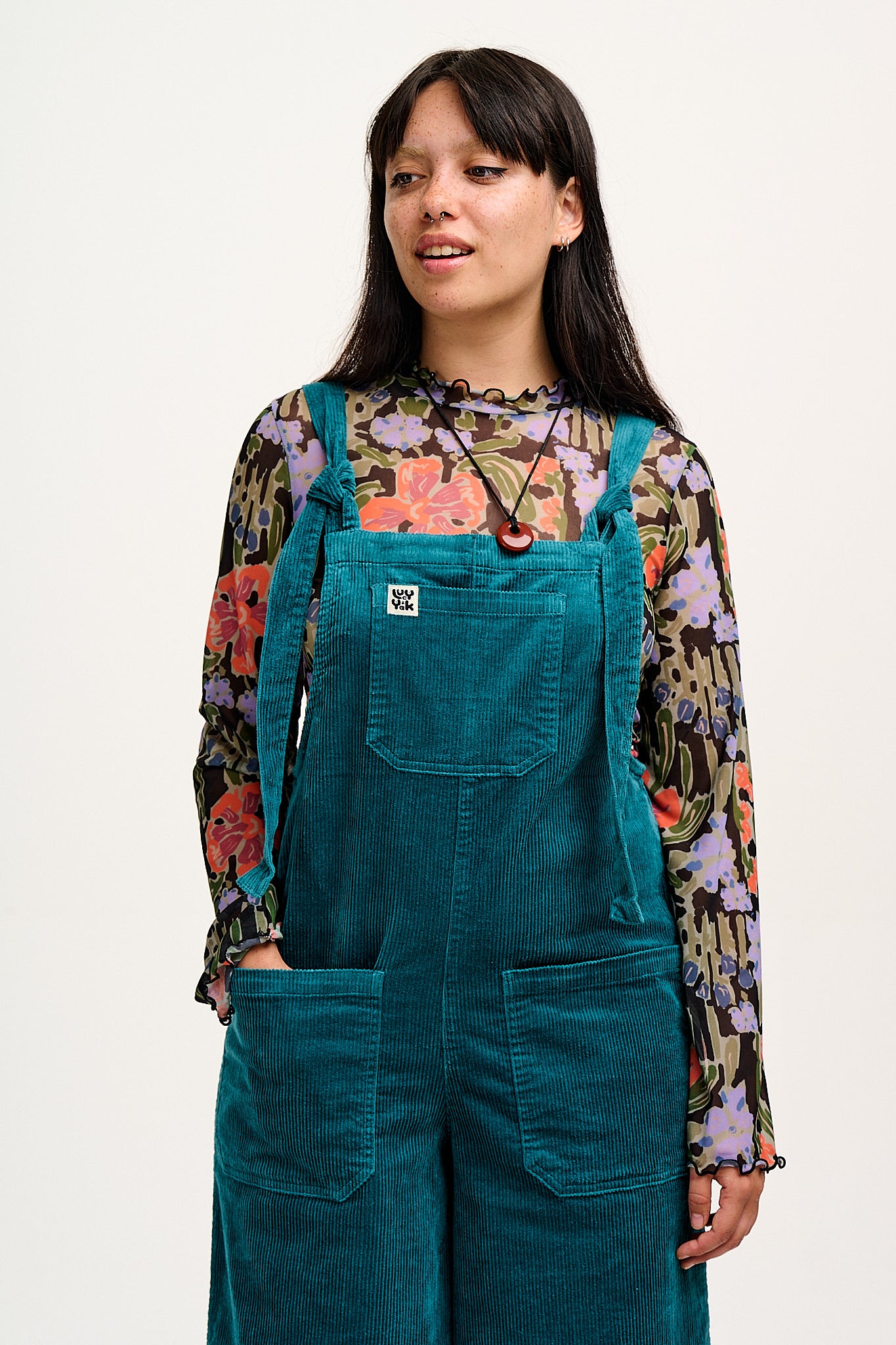 Jenny - Wide Leg Corduroy Dungarees in Teal