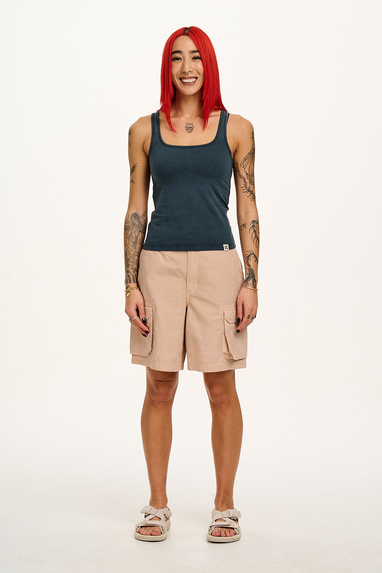 Jessie - Cotton & Linen Shorts in Vintage Indigo