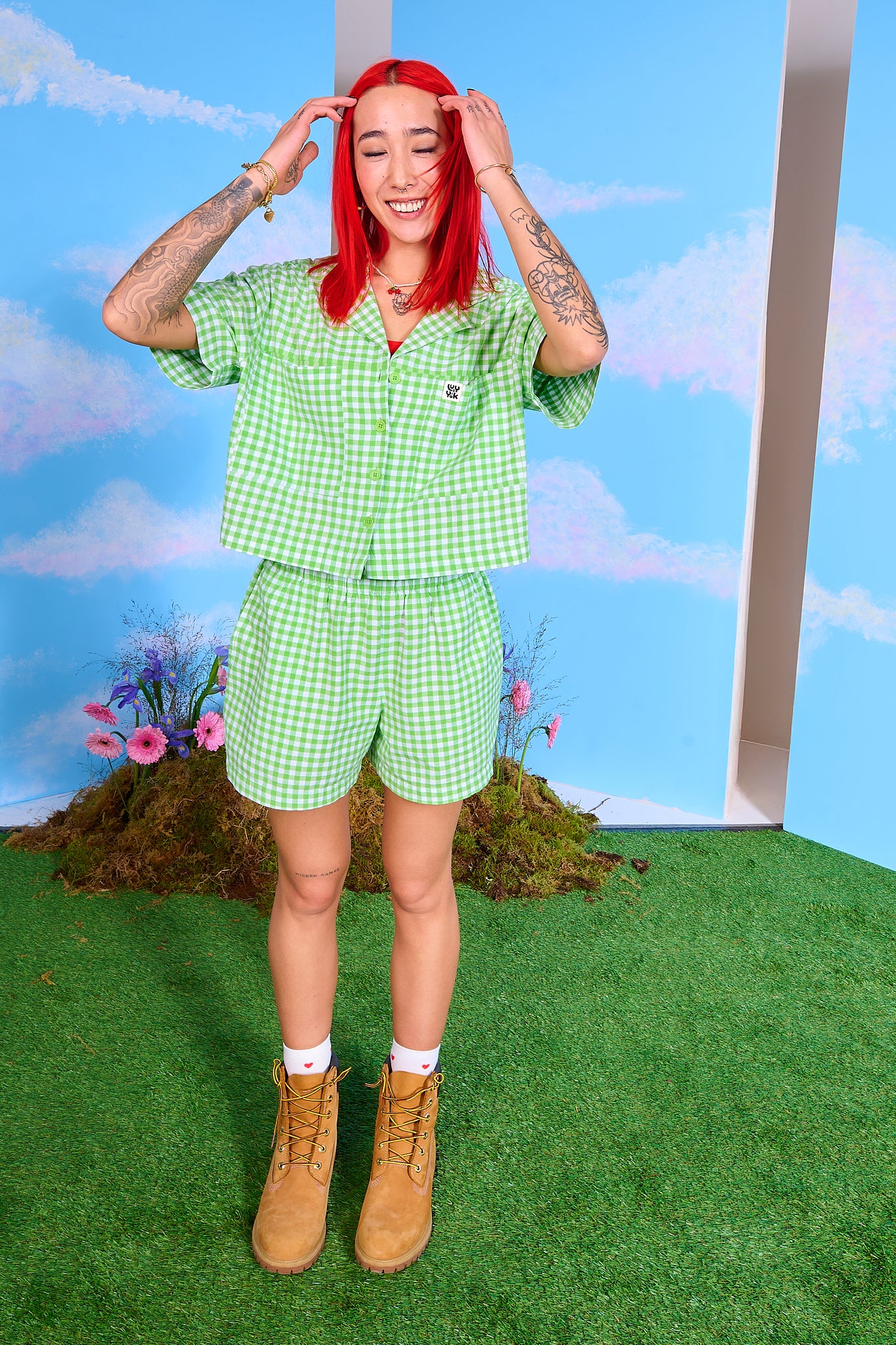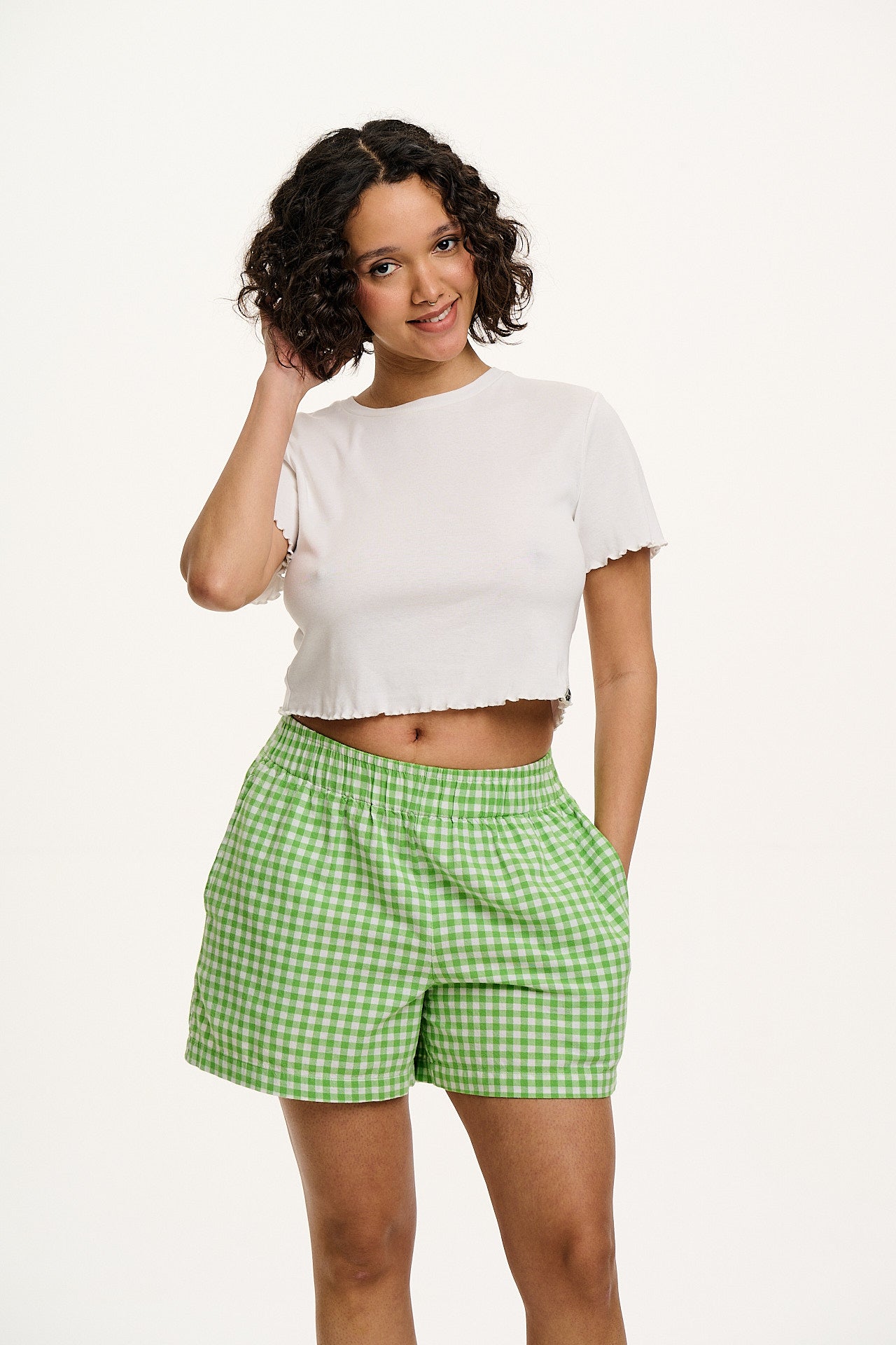 Jessie - Cotton Shorts in Green Bonitto Gingham