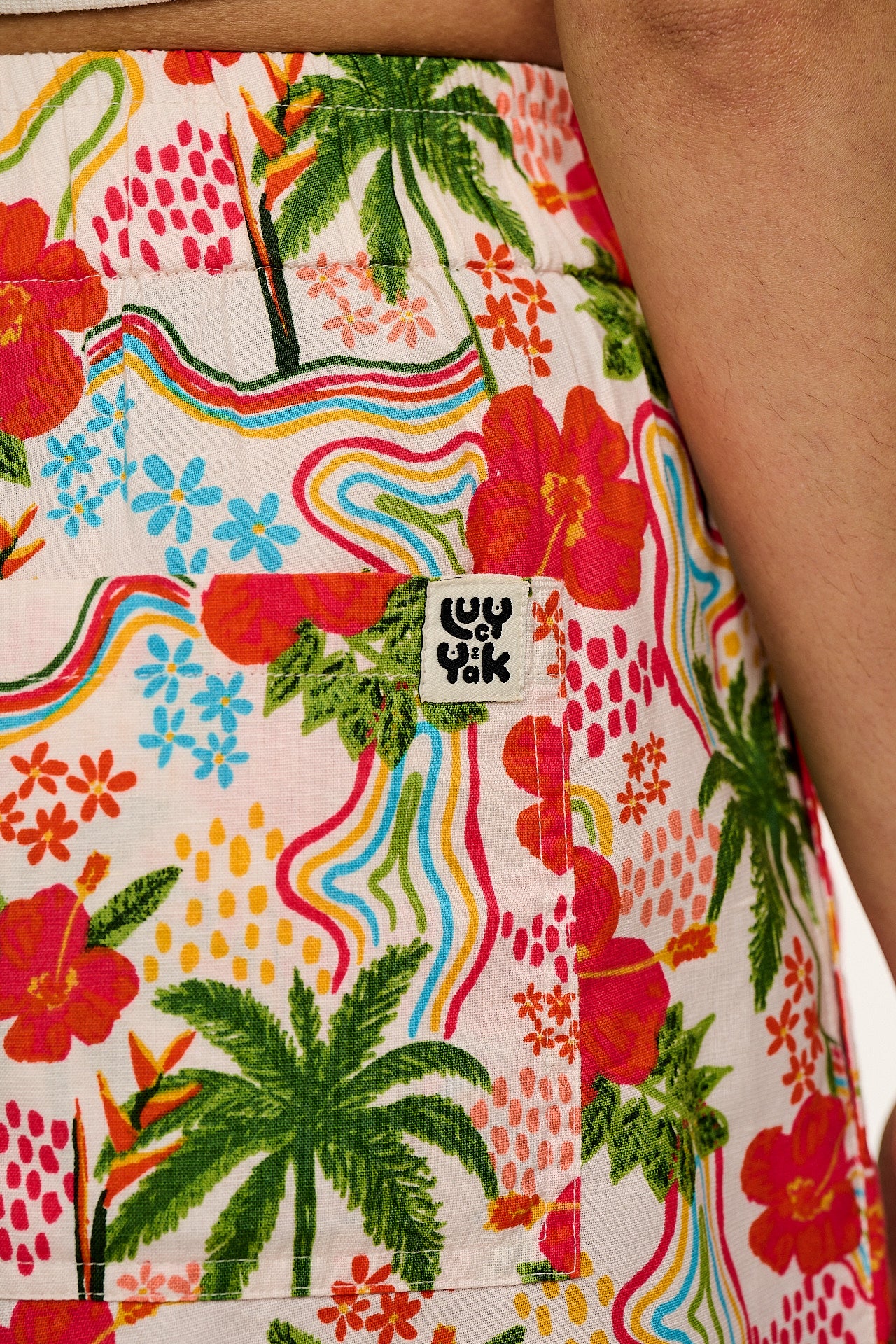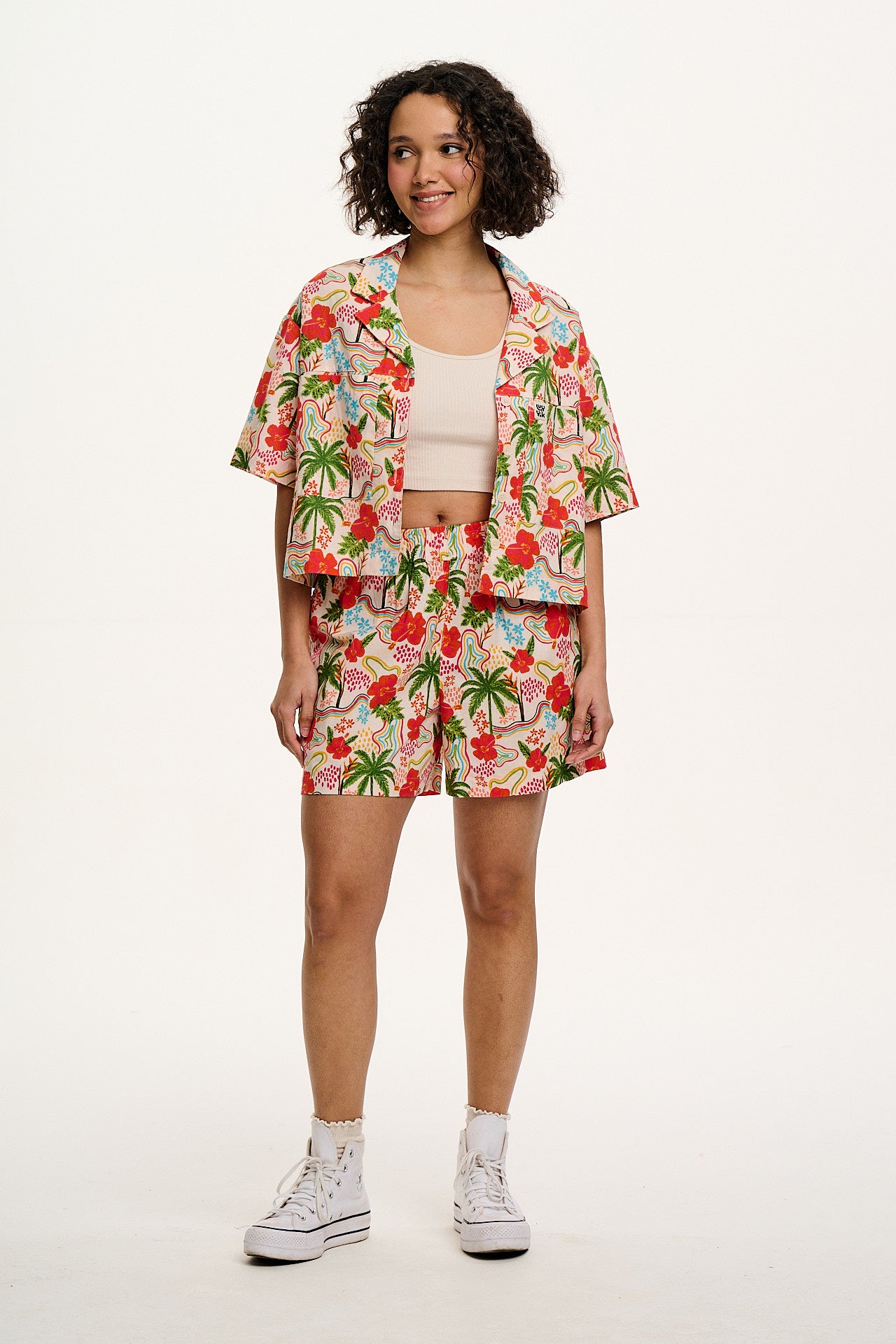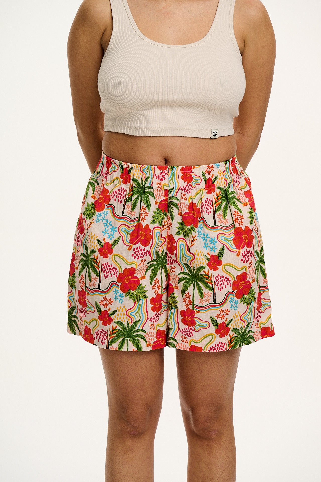 Jessie - Cotton & Linen Shorts in Totally Tropical Print