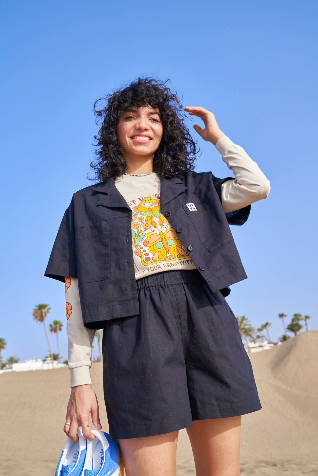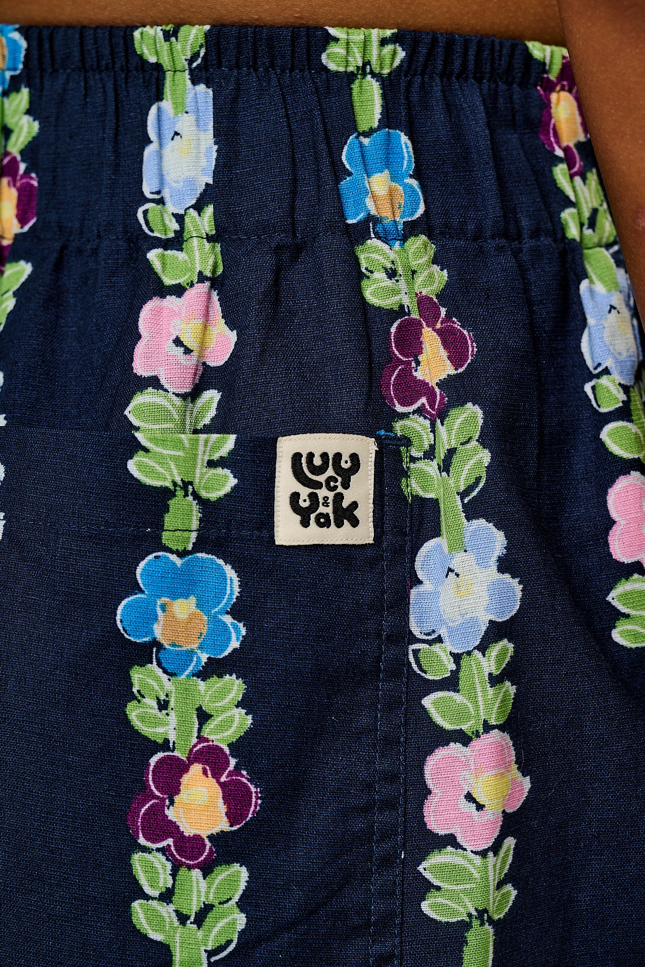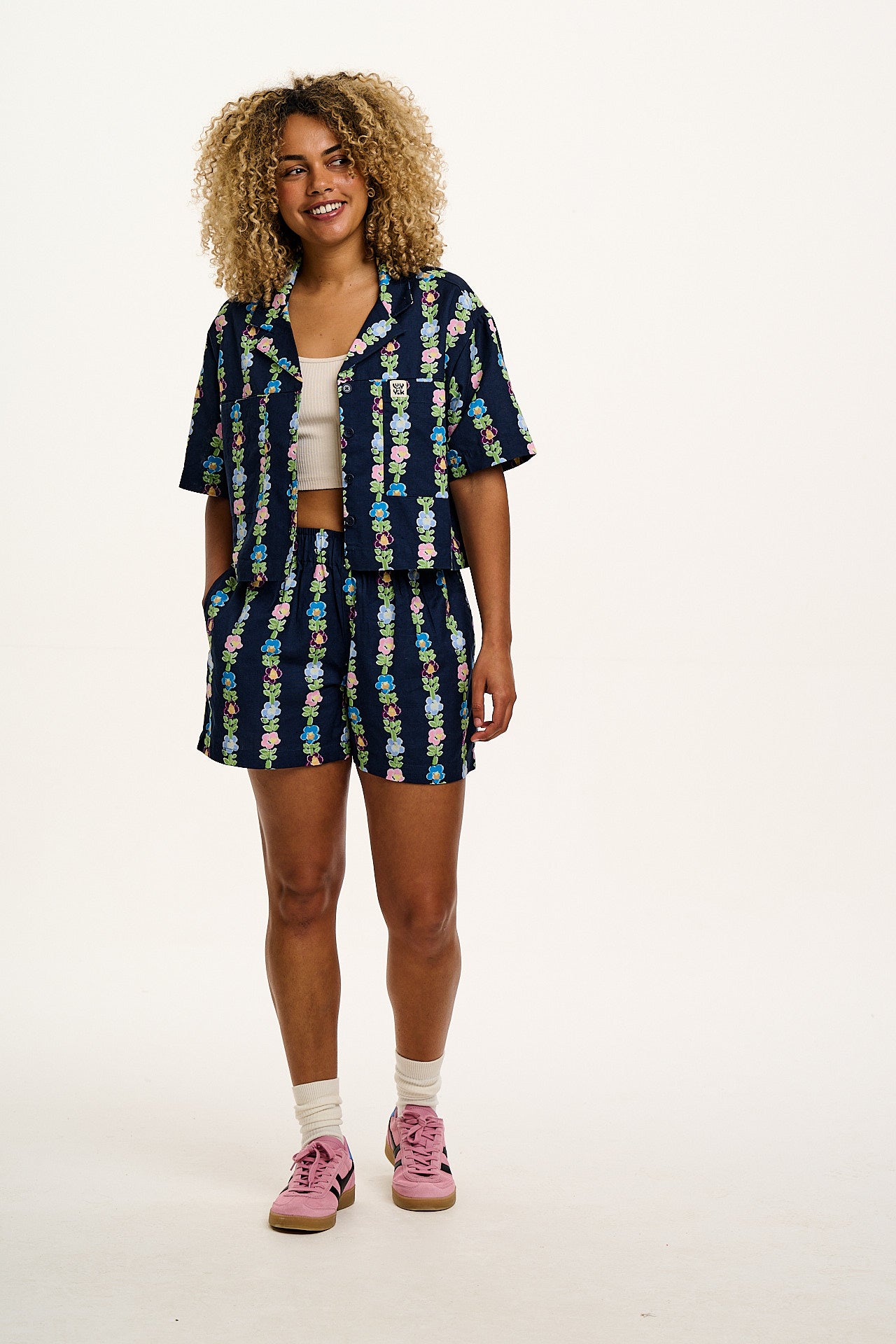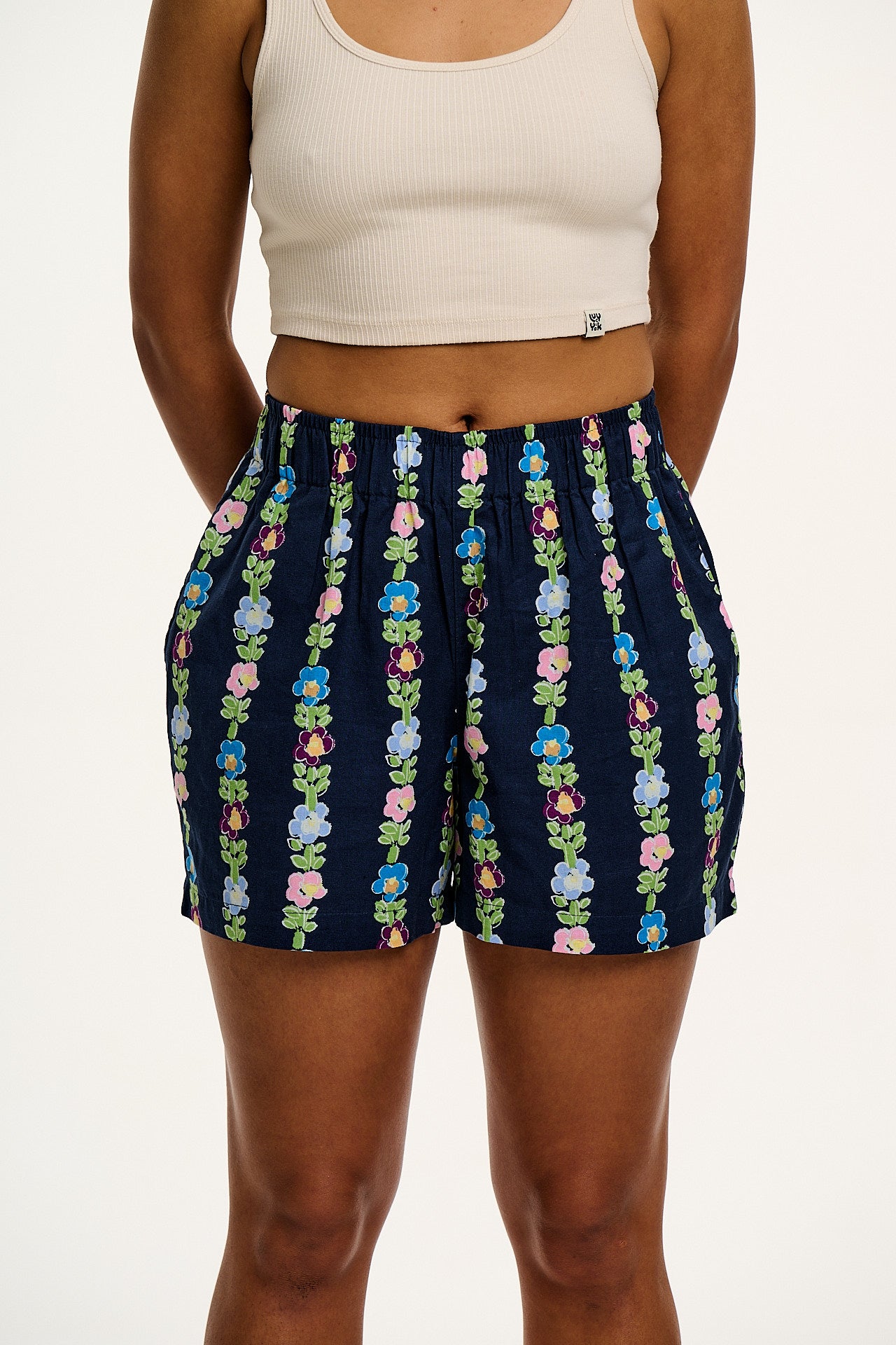 Jessie - Cotton & Linen Shorts in Navy Island Bloom Floral Print