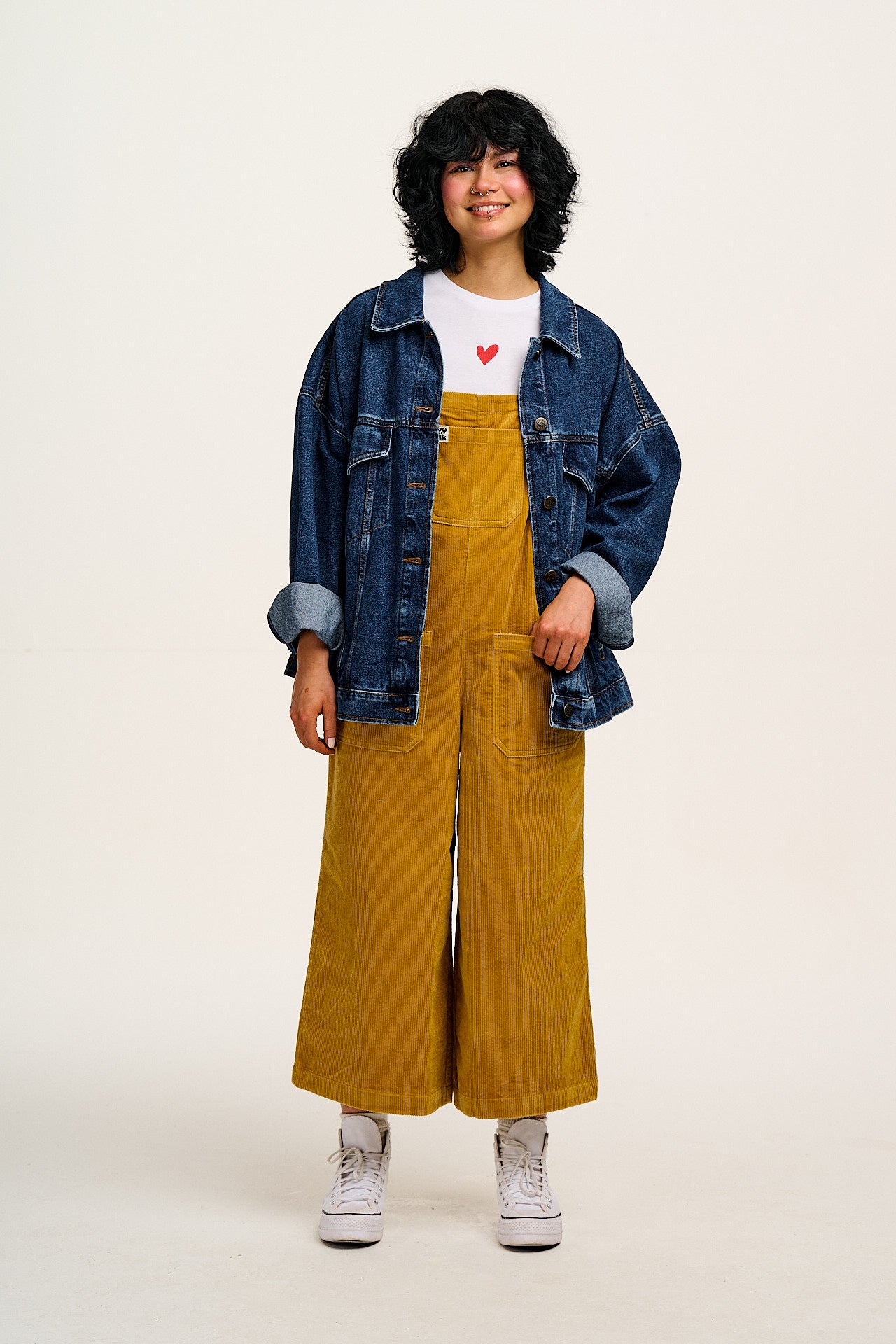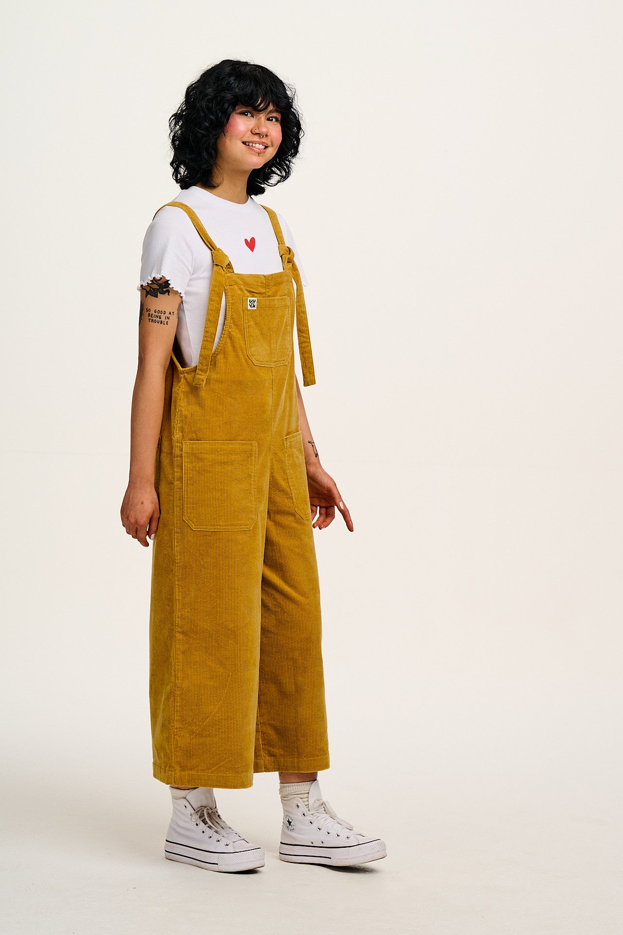 Jenny - Wide Leg Corduroy Dungarees in Mustard